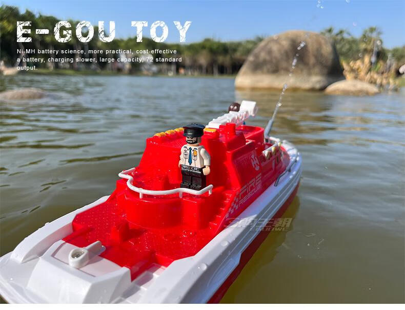 遥控消防船喷水充电高速快艇儿童男孩无线电动水上玩具轮船模型 红星喷水消防船 单电版约行驶15分钟
