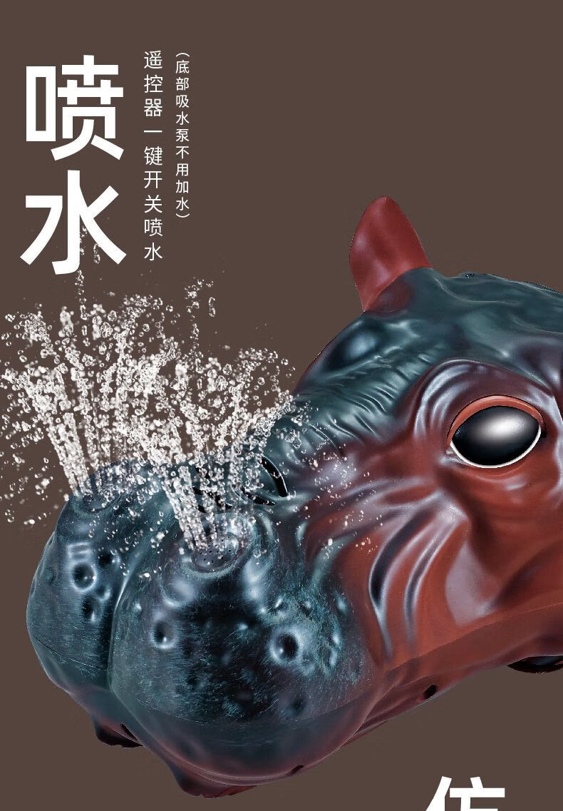 Dilani télécommande hippopotame simulation dynamique rechargeable nouvelle technologie noire de pulvérisation d'eau vibrato étanche bateau rapide populaire jouet pour enfants hippopotame télécommandé (le modèle à batterie unique dure 30 minutes)