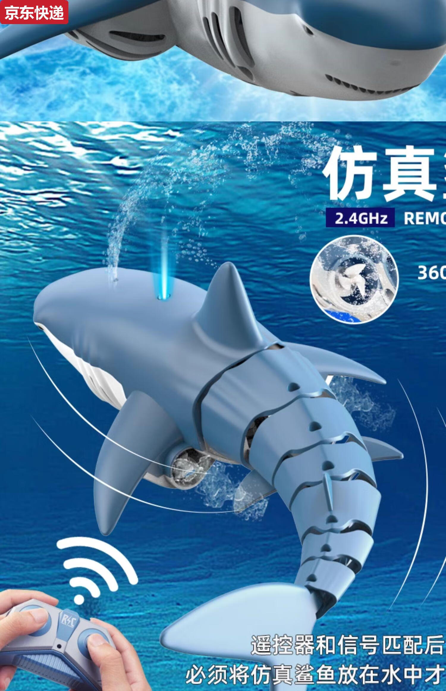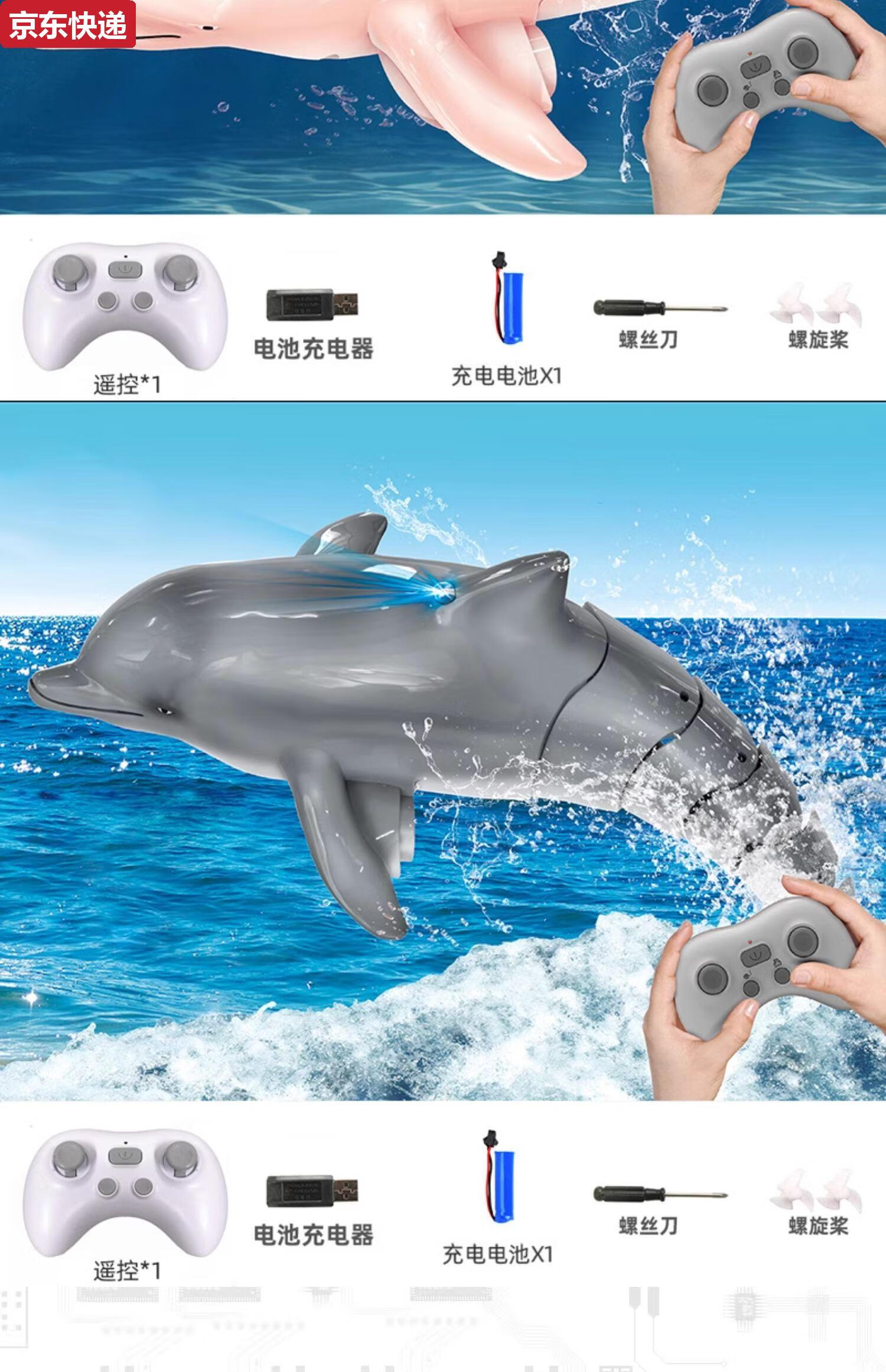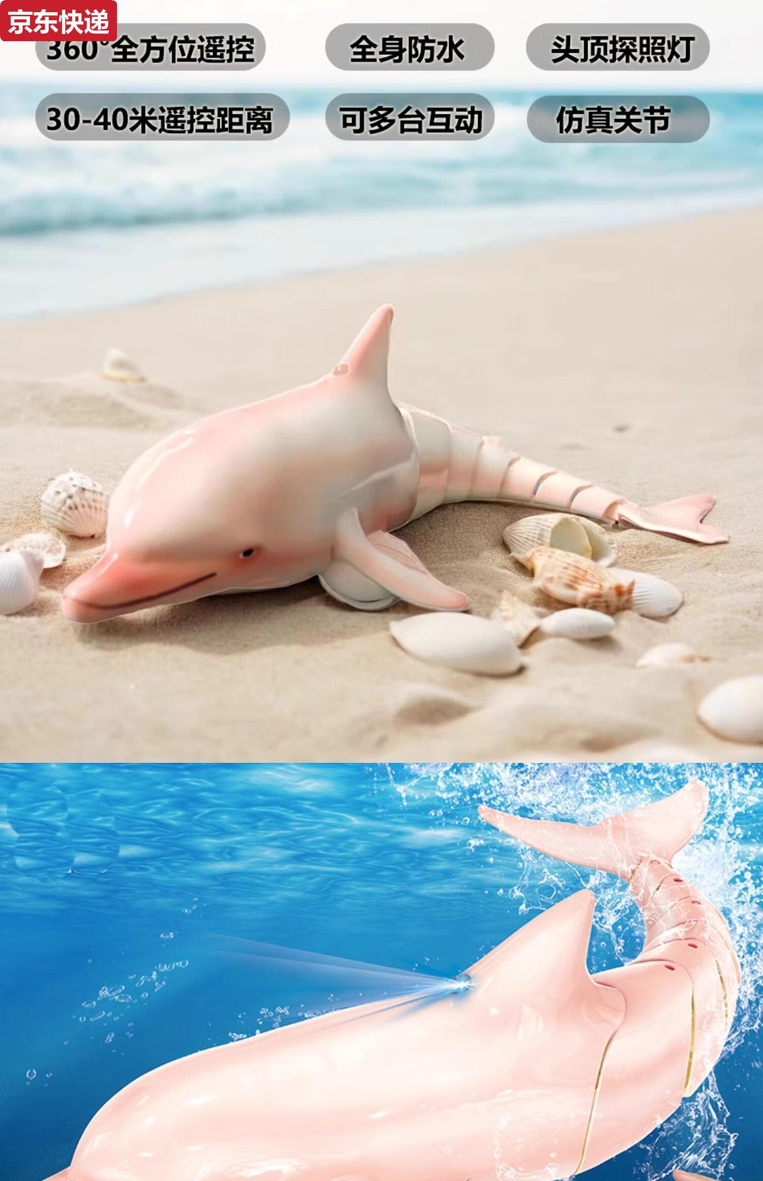 奇立彩电动遥控海豚无线2.4G水上机械仿真儿童戏水玩具船可下水鲨鱼鲸鱼 38CM遥控粉色海豚带头灯遥控器升 标配