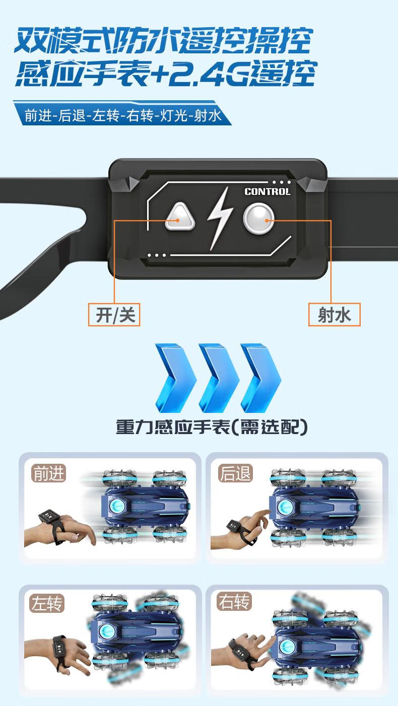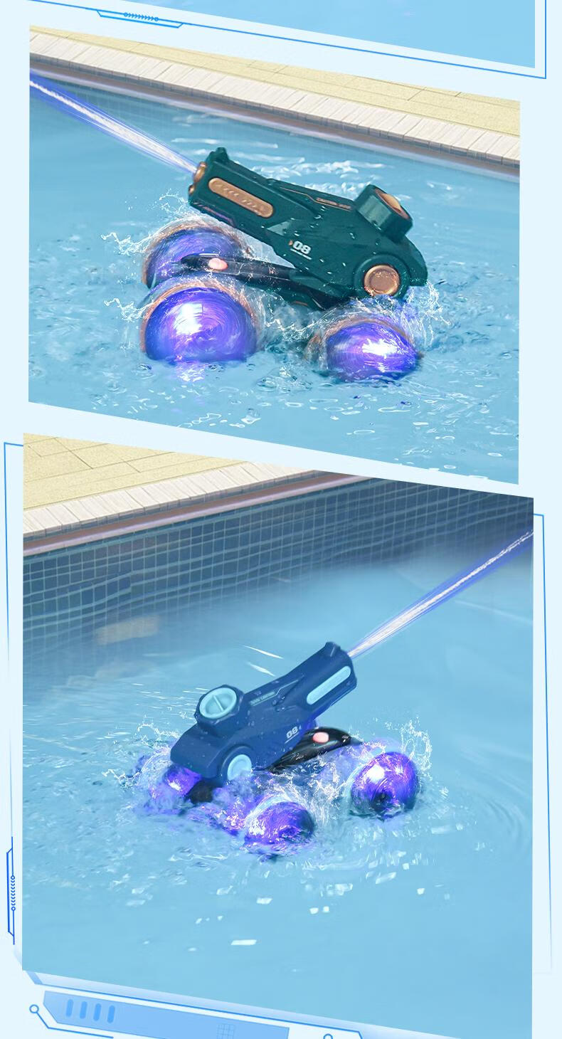奇立彩儿童水陆两栖遥控车玩具坦克船四驱水上汽车快艇自动吸水可发射 升级双花洒-水陆两栖怪兽绿色-自 双电版可玩约80分钟送遥控电池