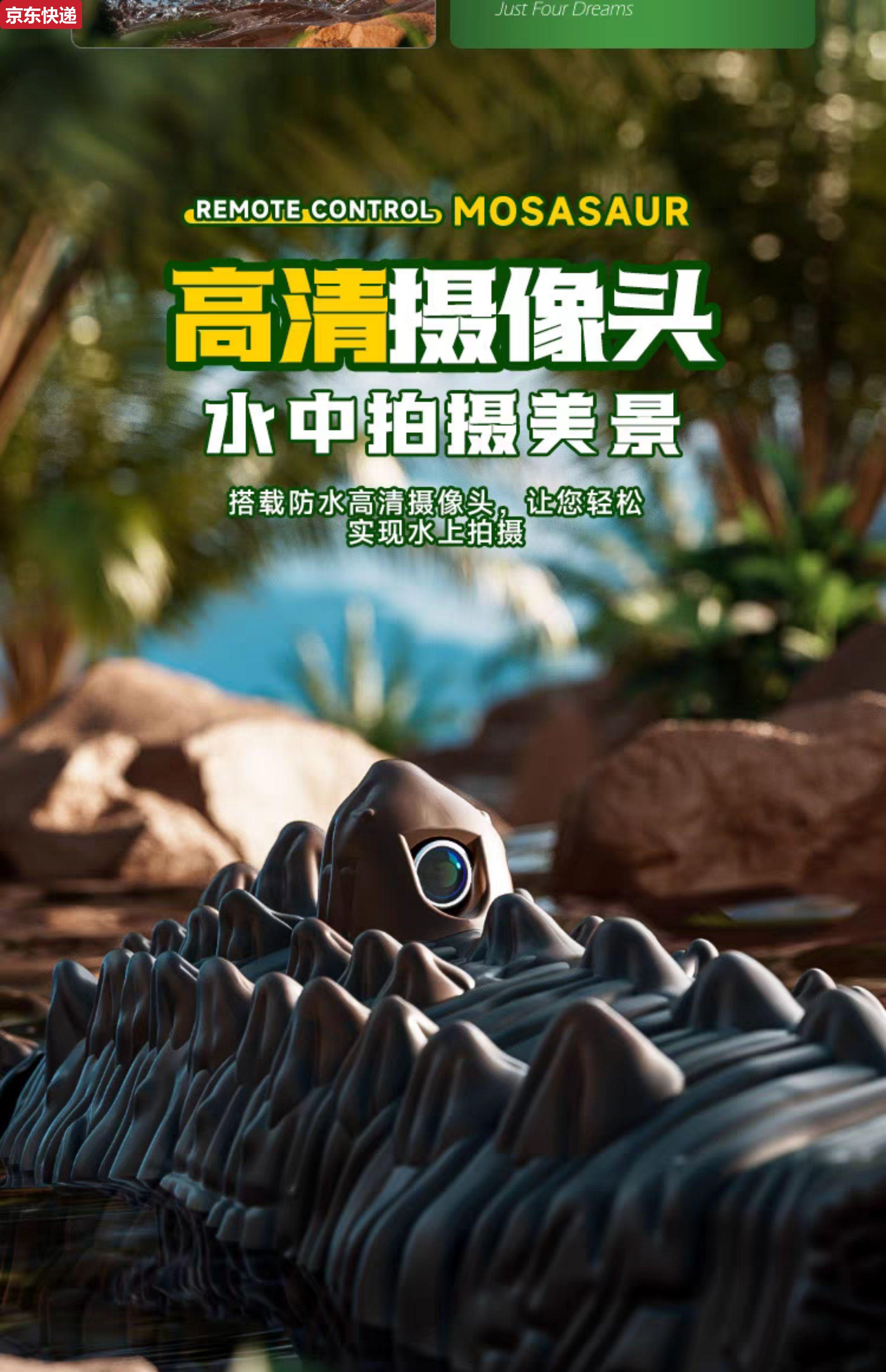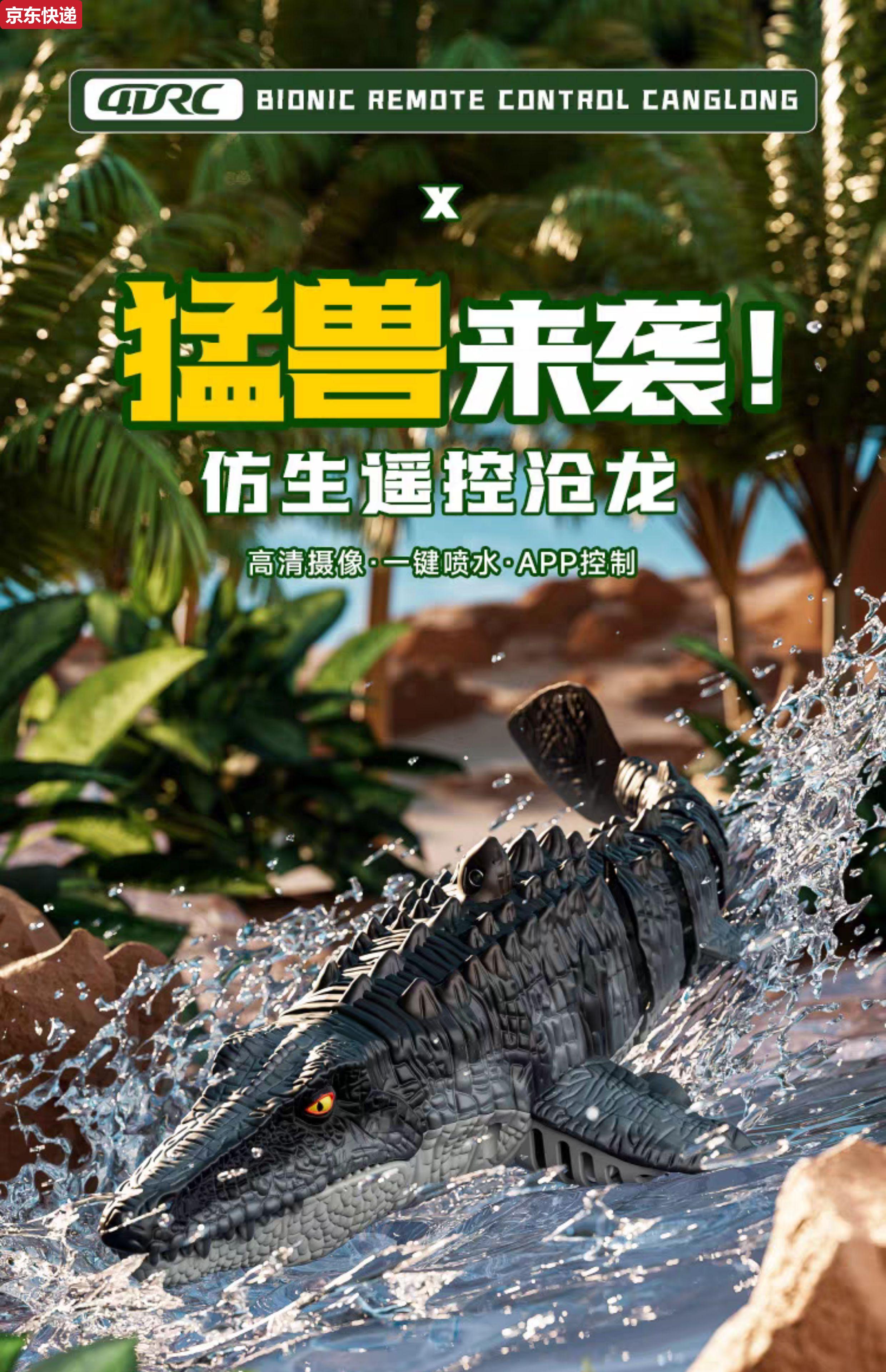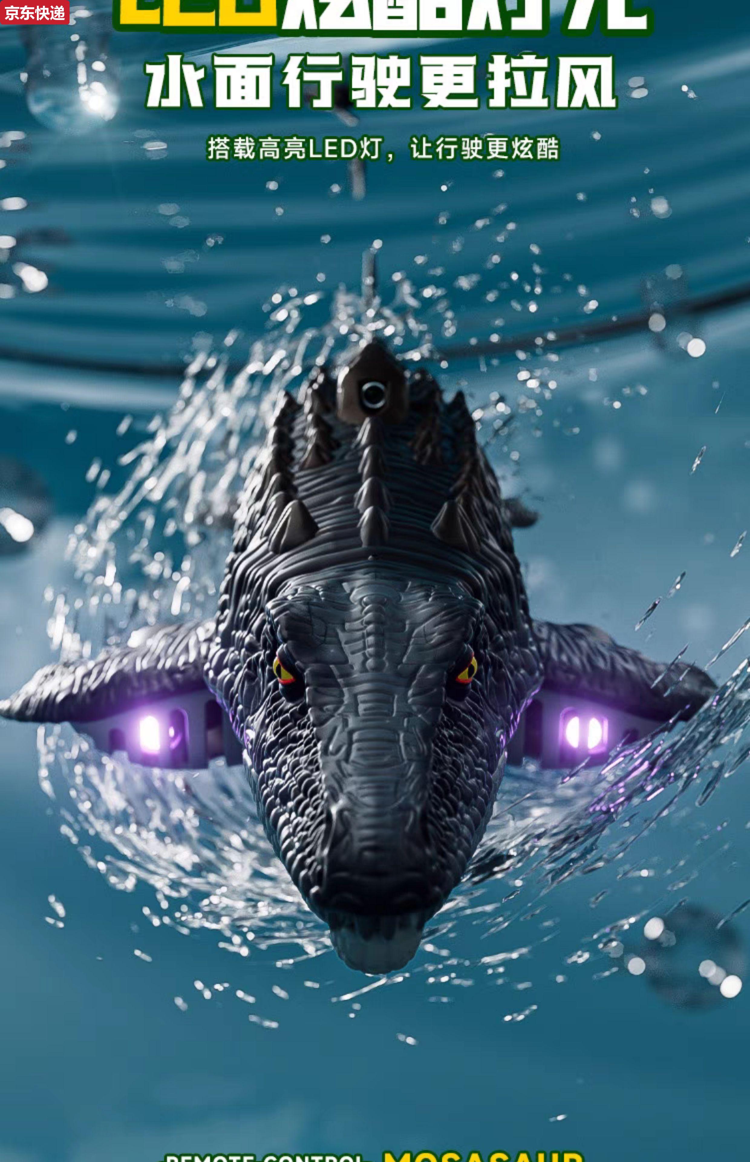 奇立彩儿童男孩遥控小船玩具可下水模型沧龙恐龙潜水艇水上快艇电动鲨鱼 摄像款遥控沧龙-6k摄像版喷水+仿 模块锂电*2续航60分钟+送遥控电