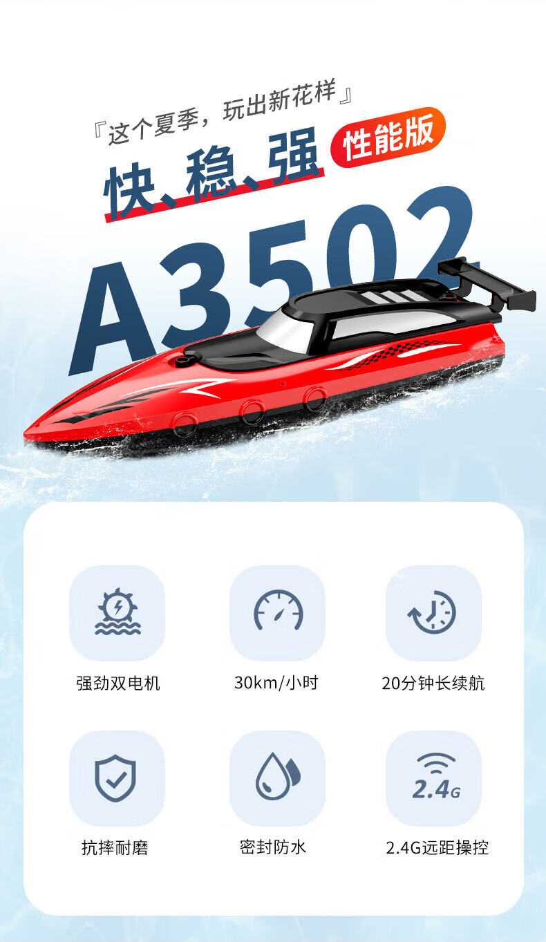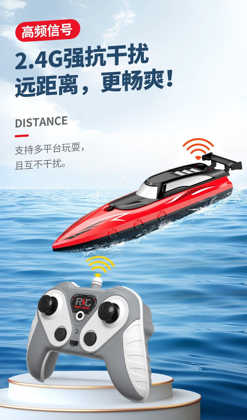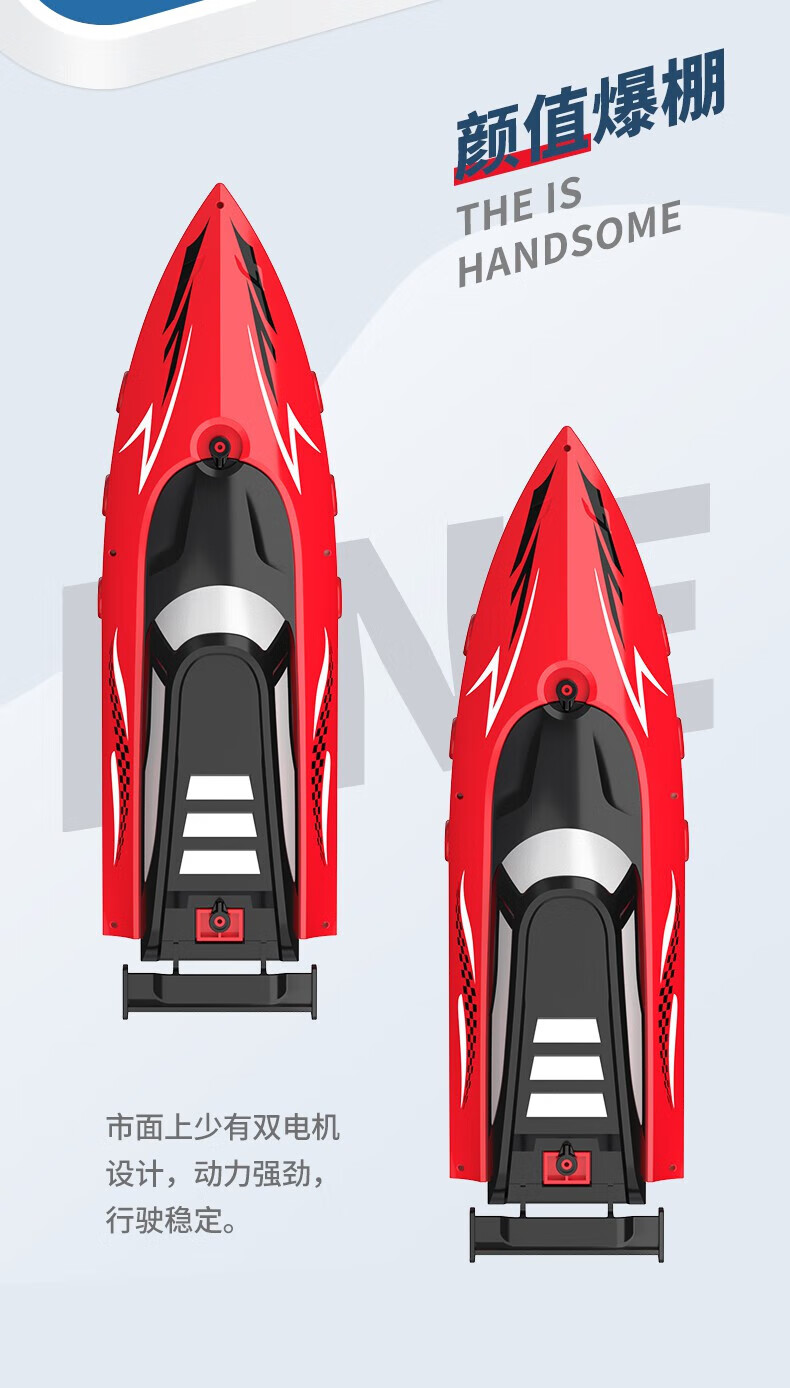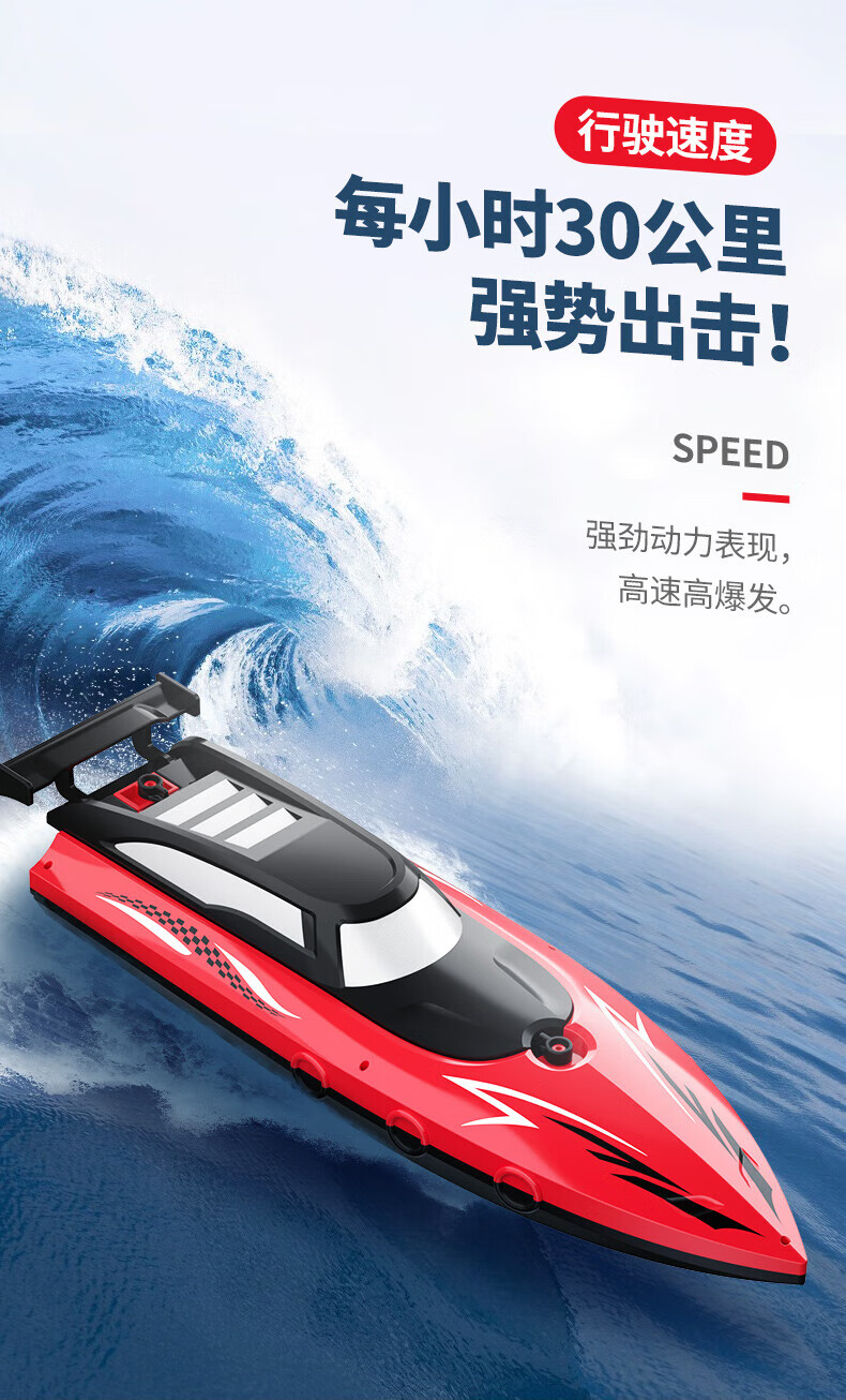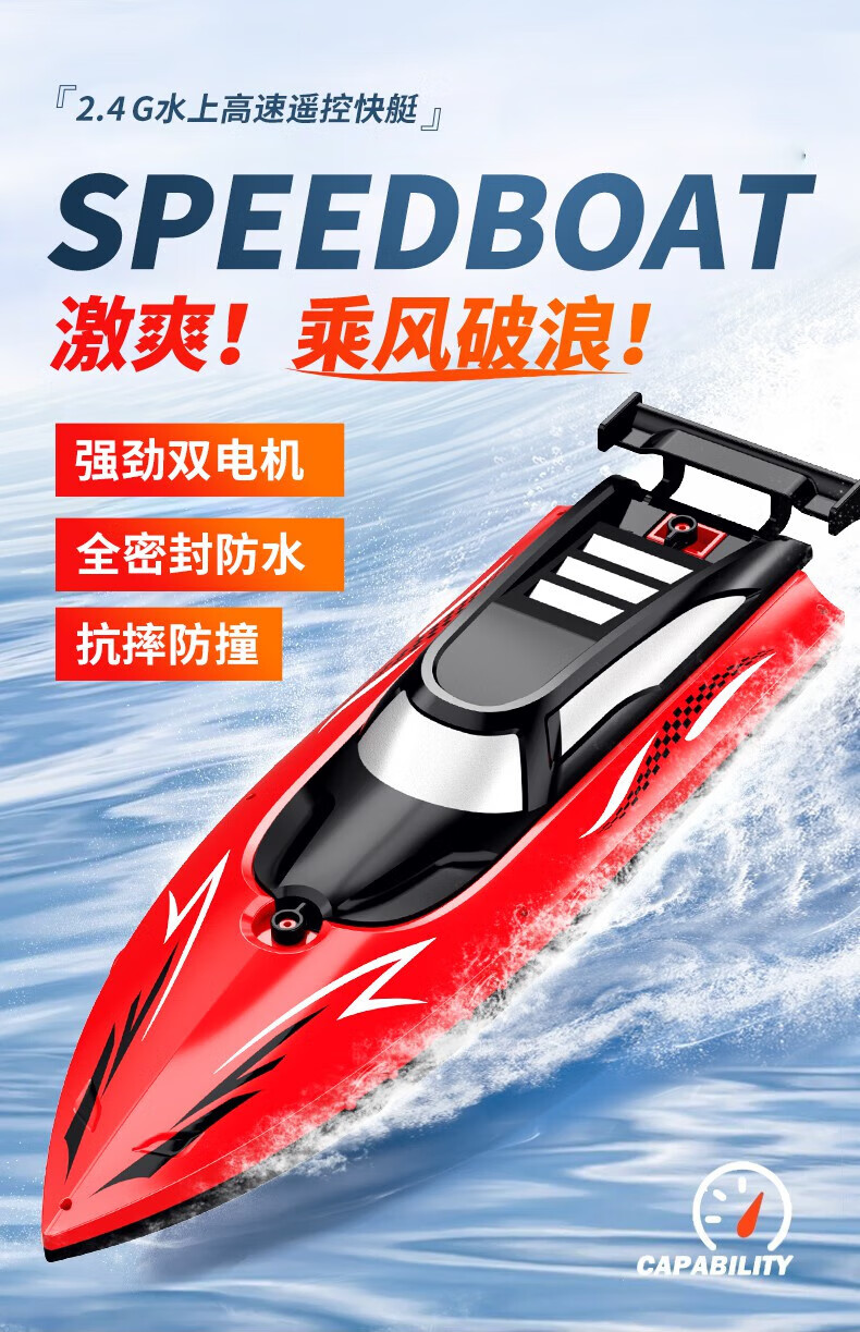 OSPIRO德国品质曼遥控小船玩具水上高速快艇船模型电动游艇儿童生日礼物 红色大号[43CM双桨高速快艇] 标配[单电]续航30分钟
