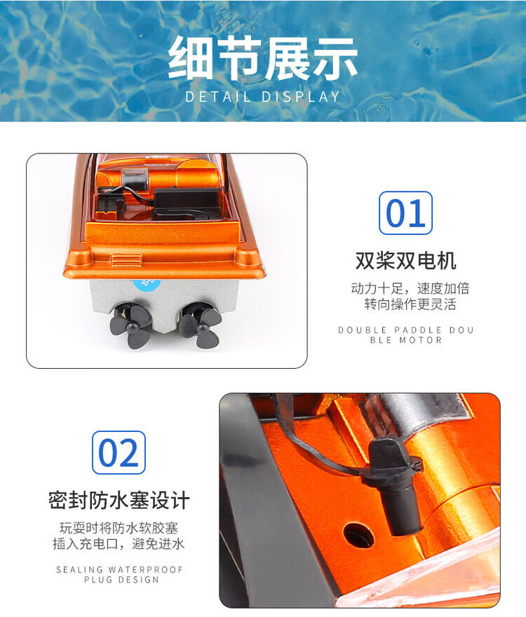 Creation Secret Mini-Fernbedienungsyacht 2,4 G Kinder-Wasser-Fernbedienungsboot Spielzeug Aufladen Rudern Hochgeschwindigkeits-wasserdichtes Schnellbootmodell Orange-2,4 G Fernbedienungs-Rennboot 2 Nr. 7 Fernbedienungsbatterien + Ladekopf + Schraubendreher