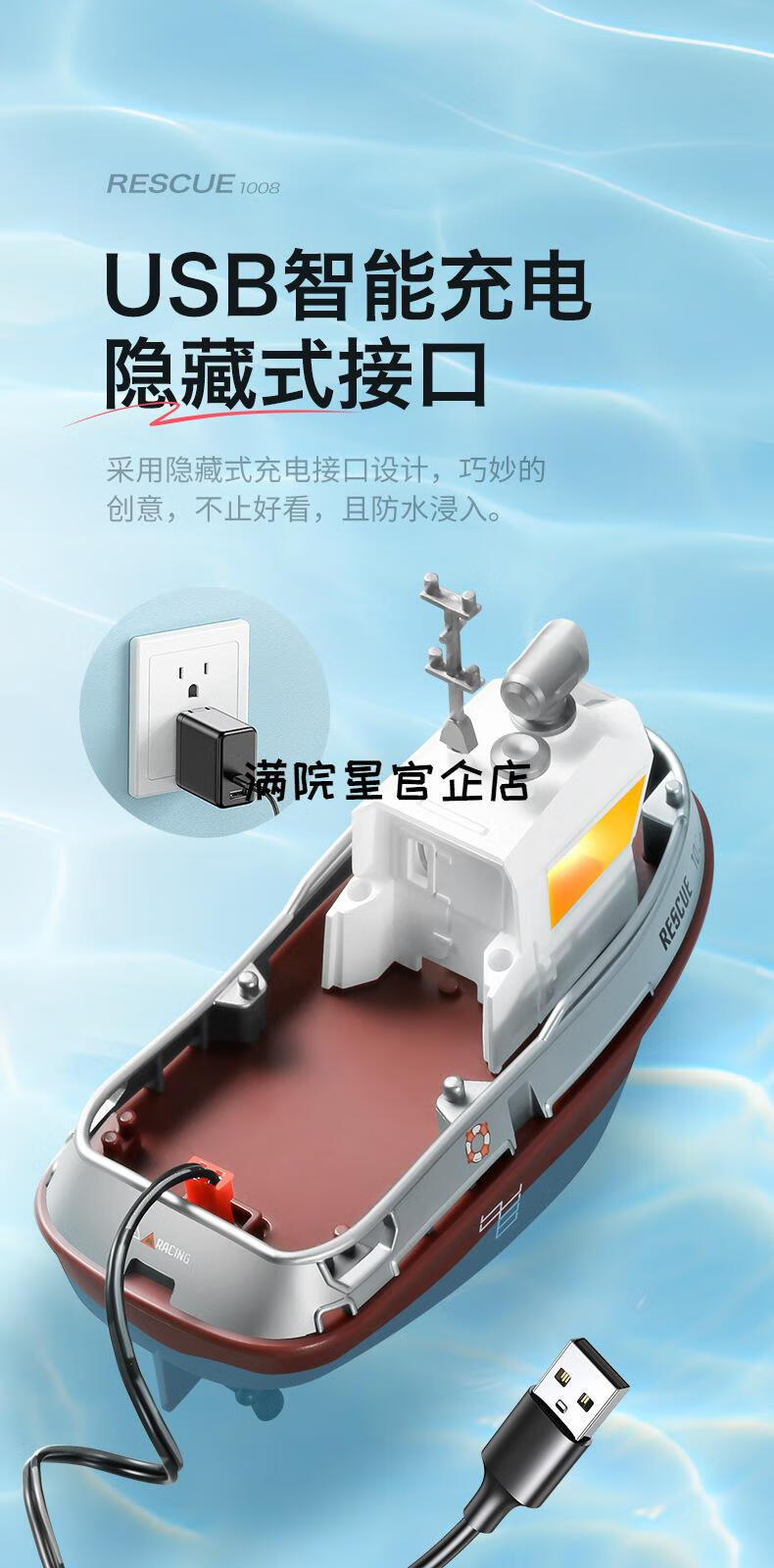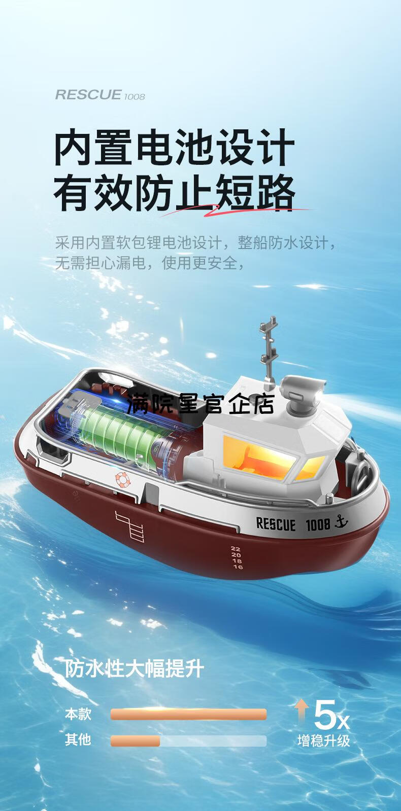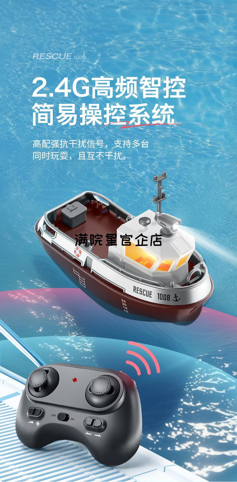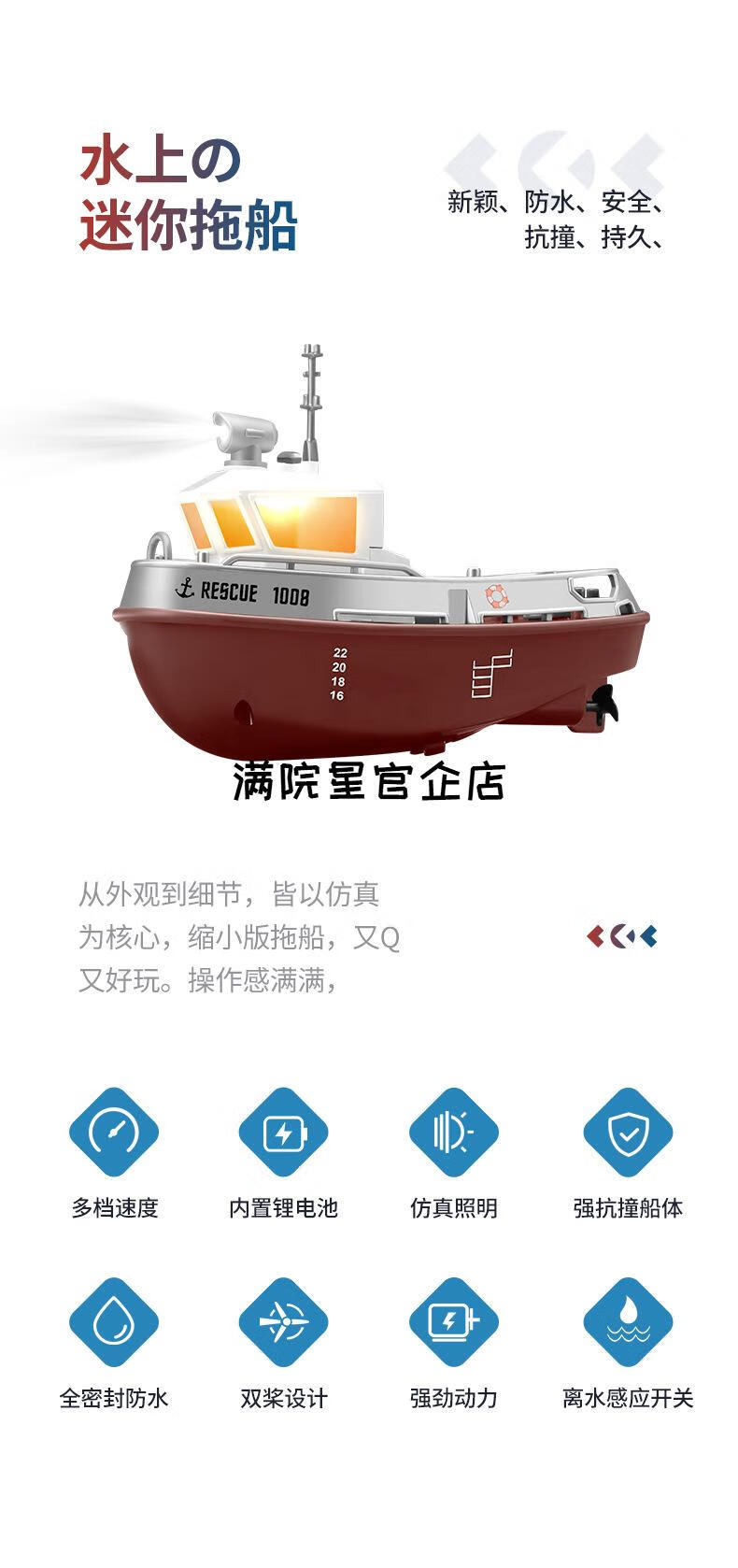 Mini-ferngesteuerter Schlepper kann ins Wasser gelassen werden, drahtloses elektrisches Hochgeschwindigkeits-Schnellboot, Schiff, Wassersimulations-Spielzeugbootmodell für Kinder, kleiner ferngesteuerter Schlepper, einstellbare Geschwindigkeit + Licht + Antivirus usw.