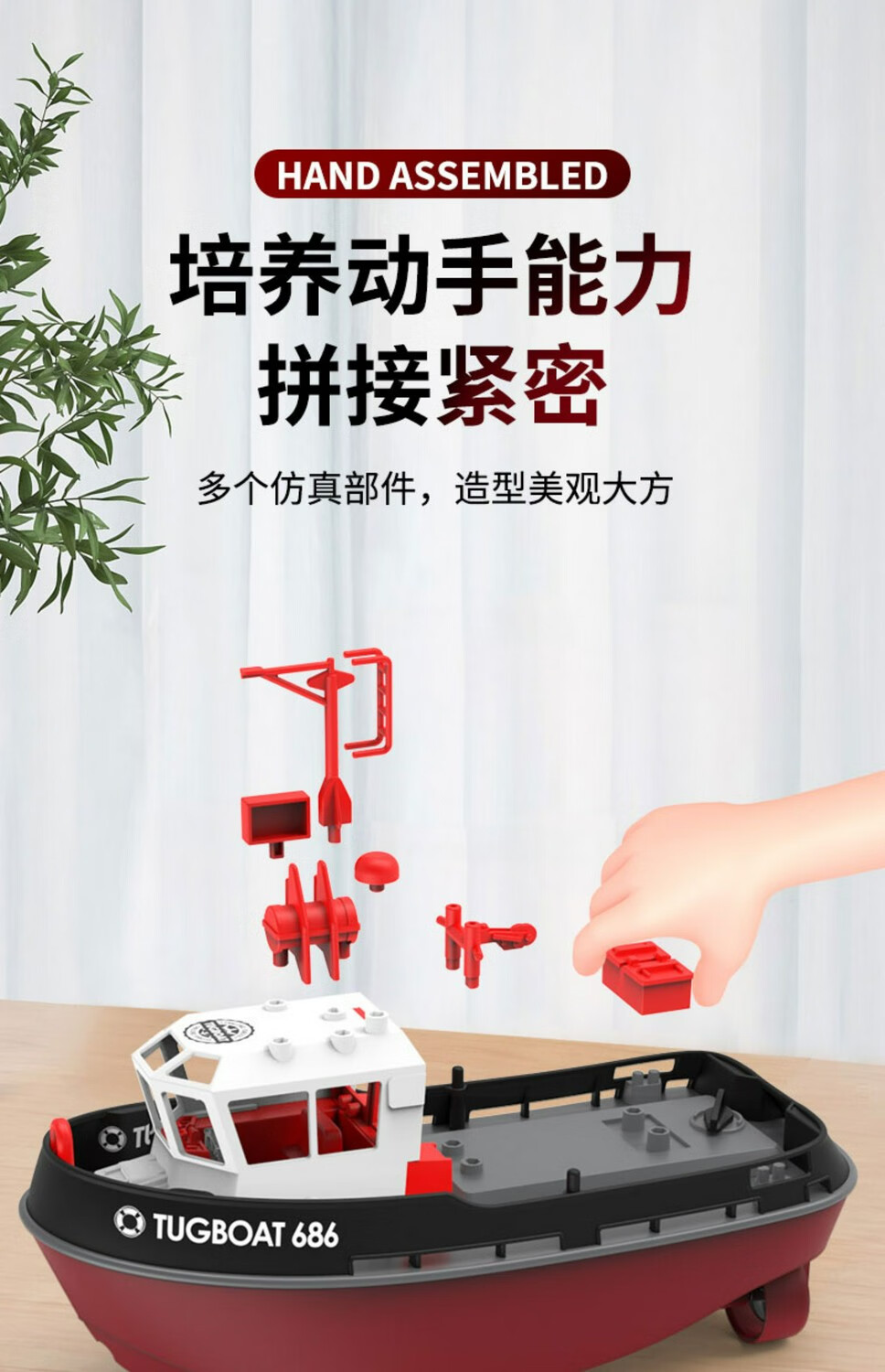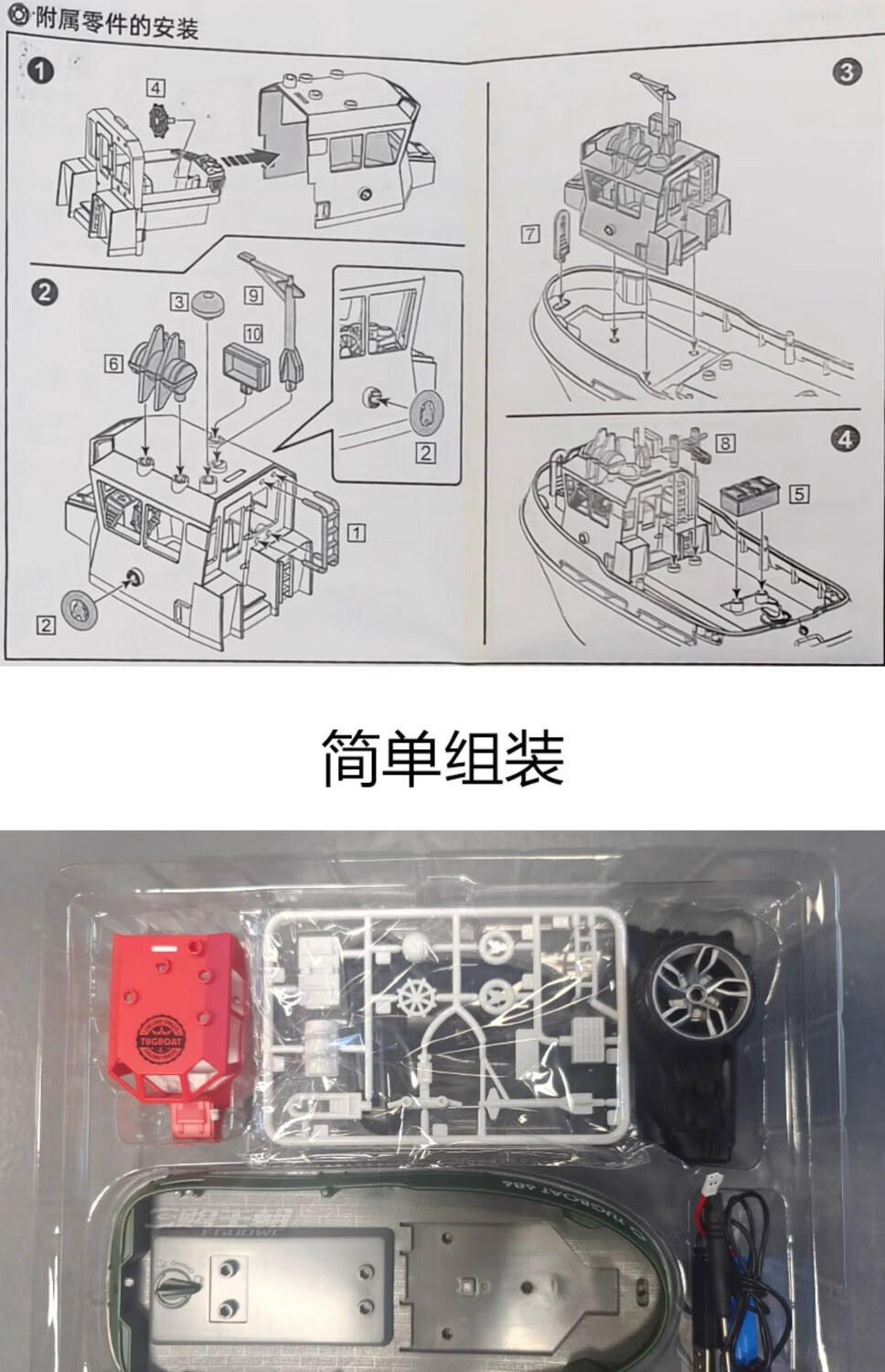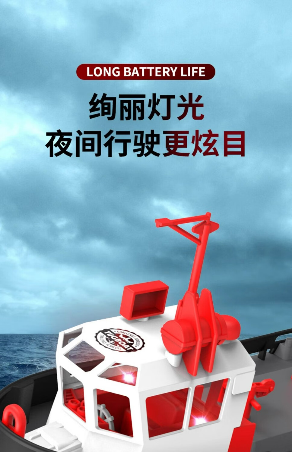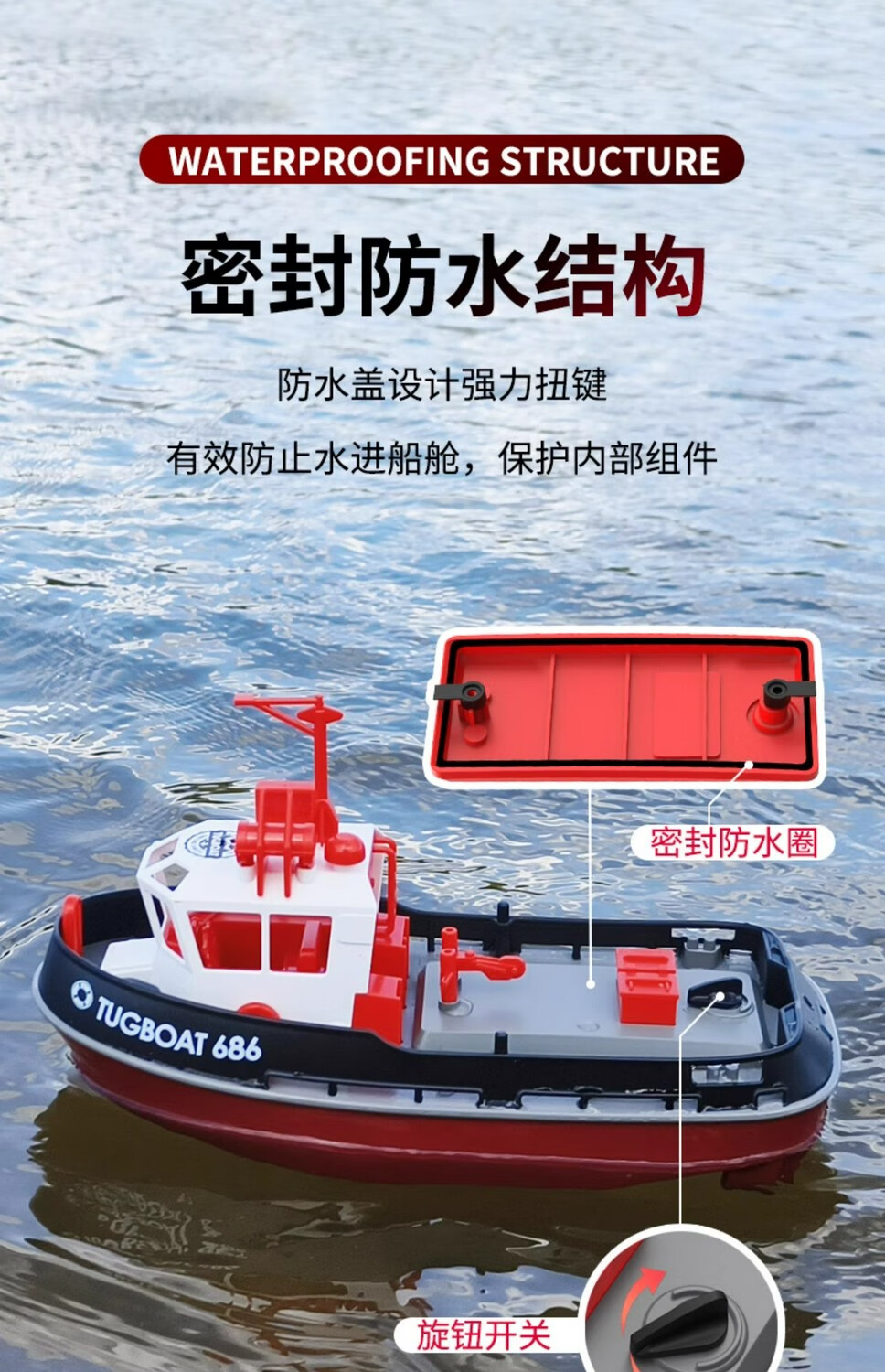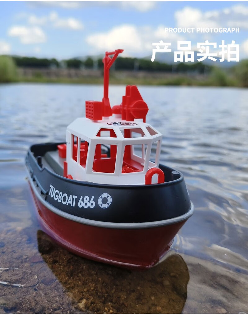 RRLFCS迷你遥控拖船充电高速快艇轮船无线电动男孩儿童水上玩具船 黑色拖船单电版