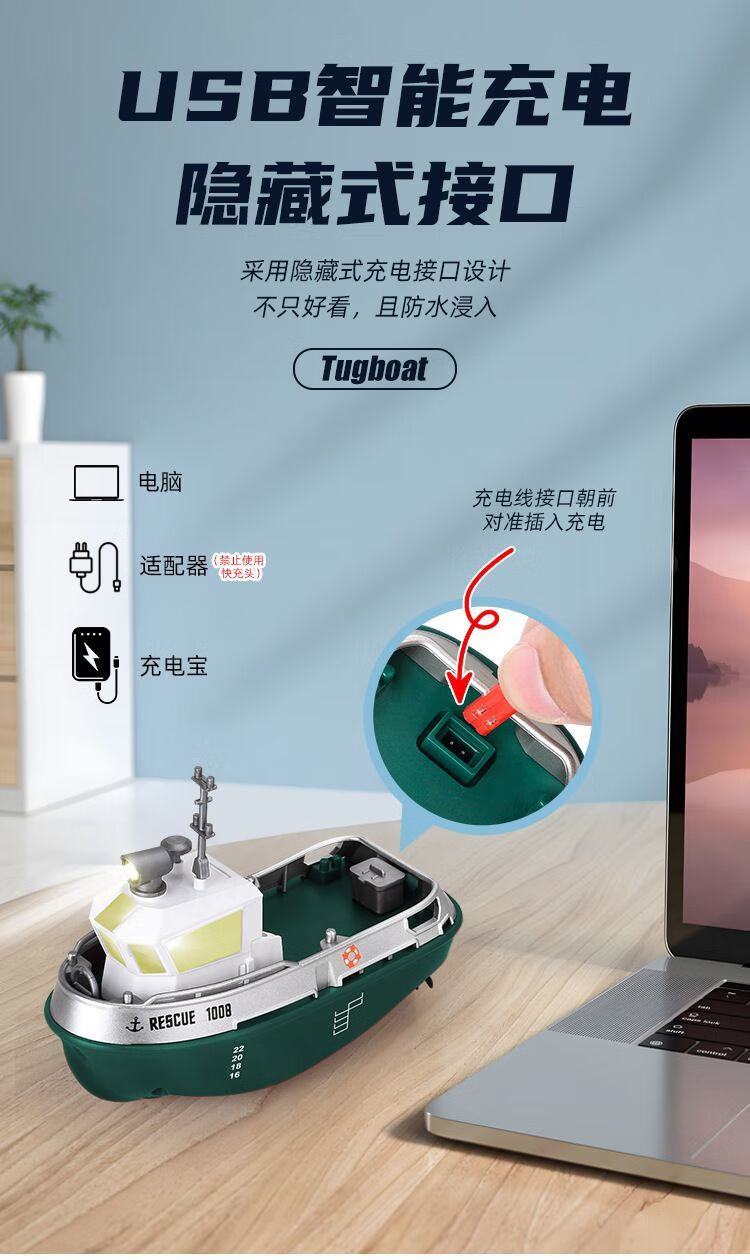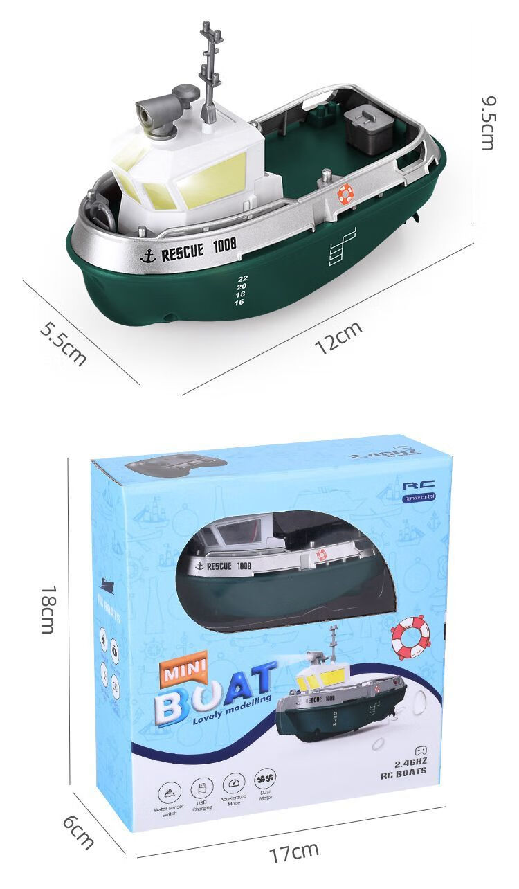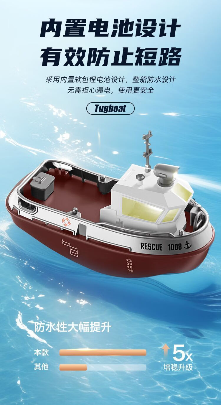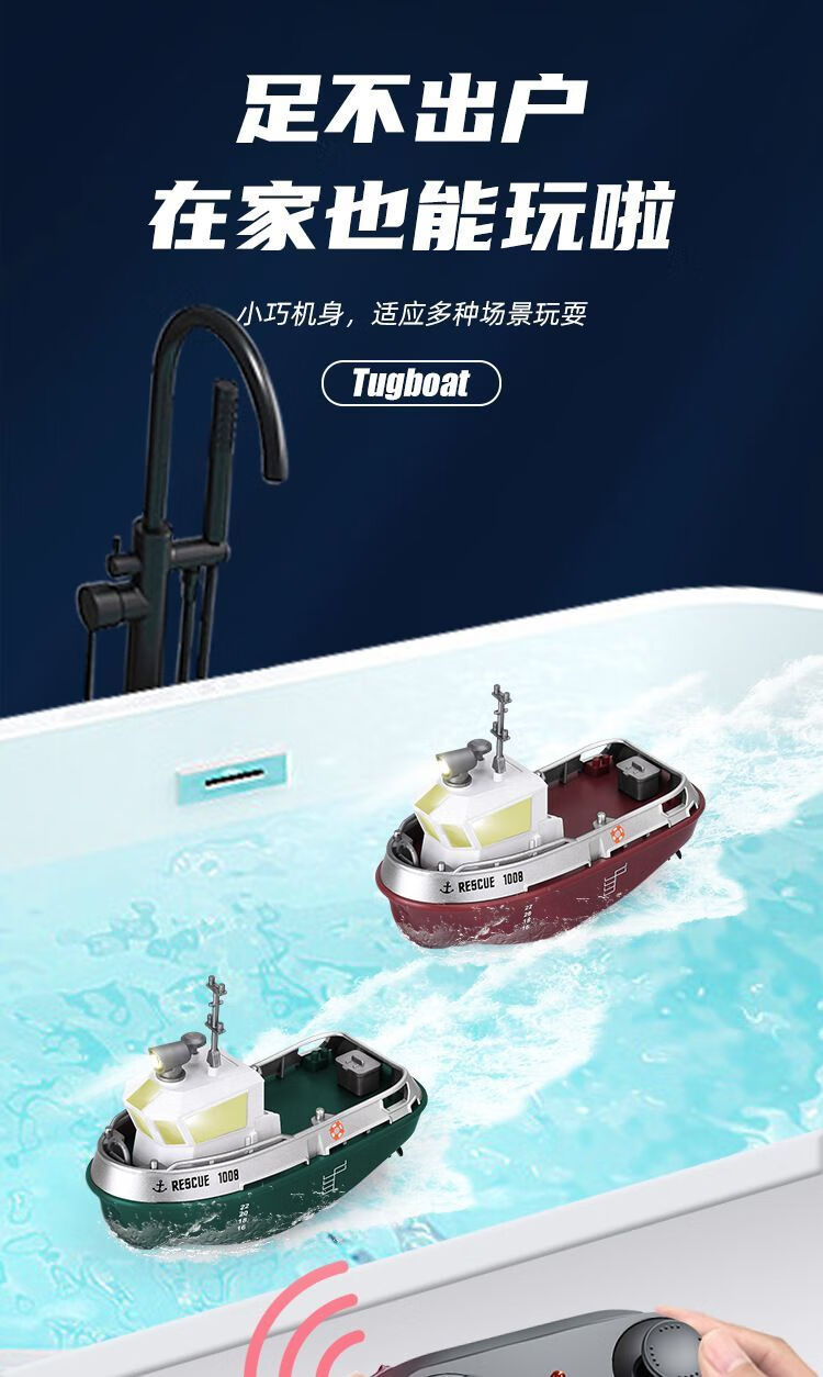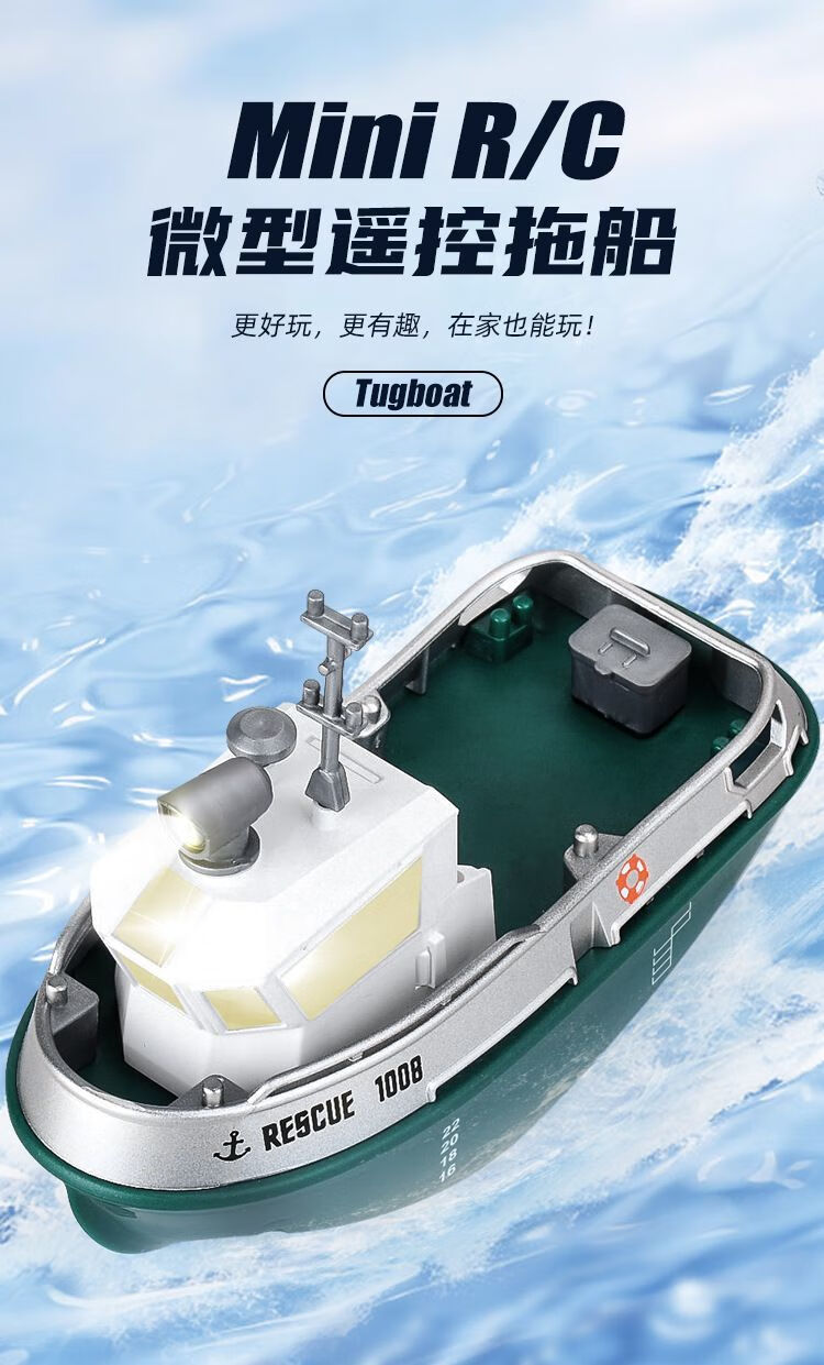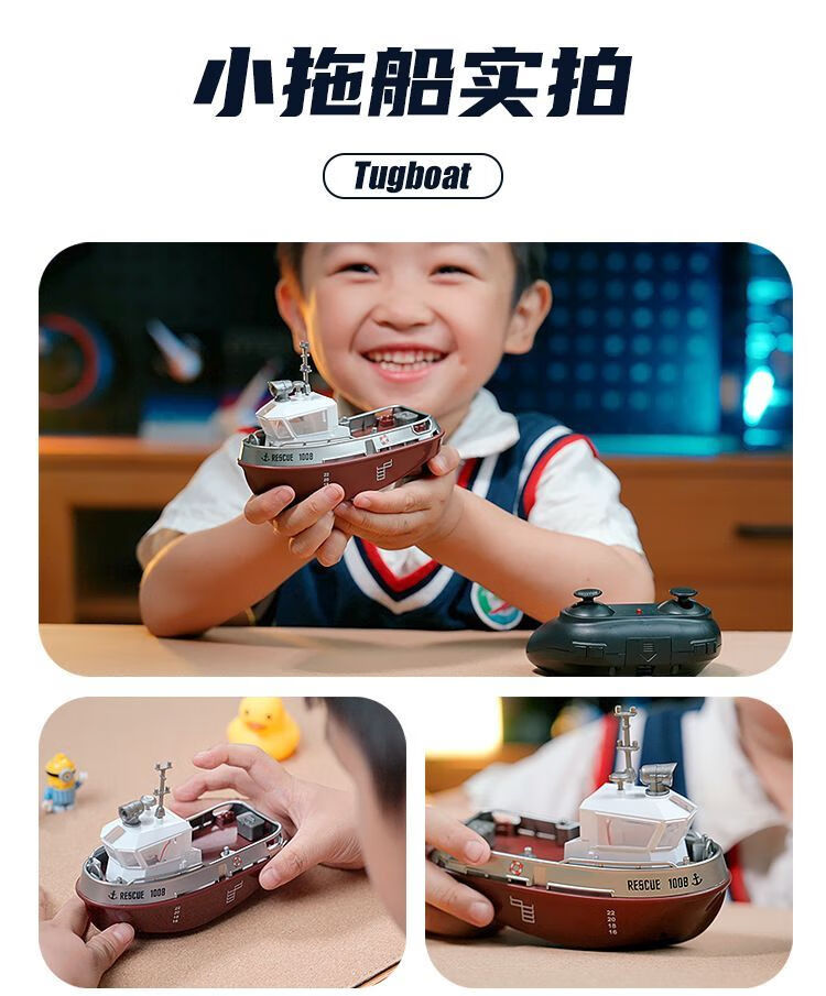 New product mini remote control tug boat children's waterproof electric water toy with light simulation boy ship model small remote control tug boat with light + adjustable speed + anti-real 2.4G high frequency quality control reduced version