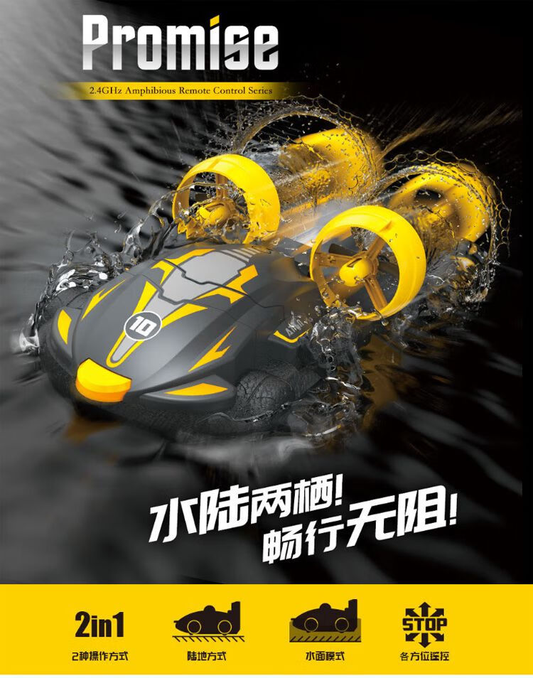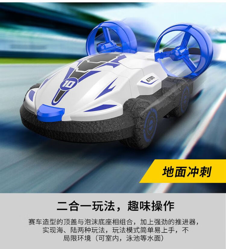 RSRDDY水陆两栖遥控车气垫船二合一漂移特技快艇儿童充电遥 白色 水陆两用 豪配4块车身电池