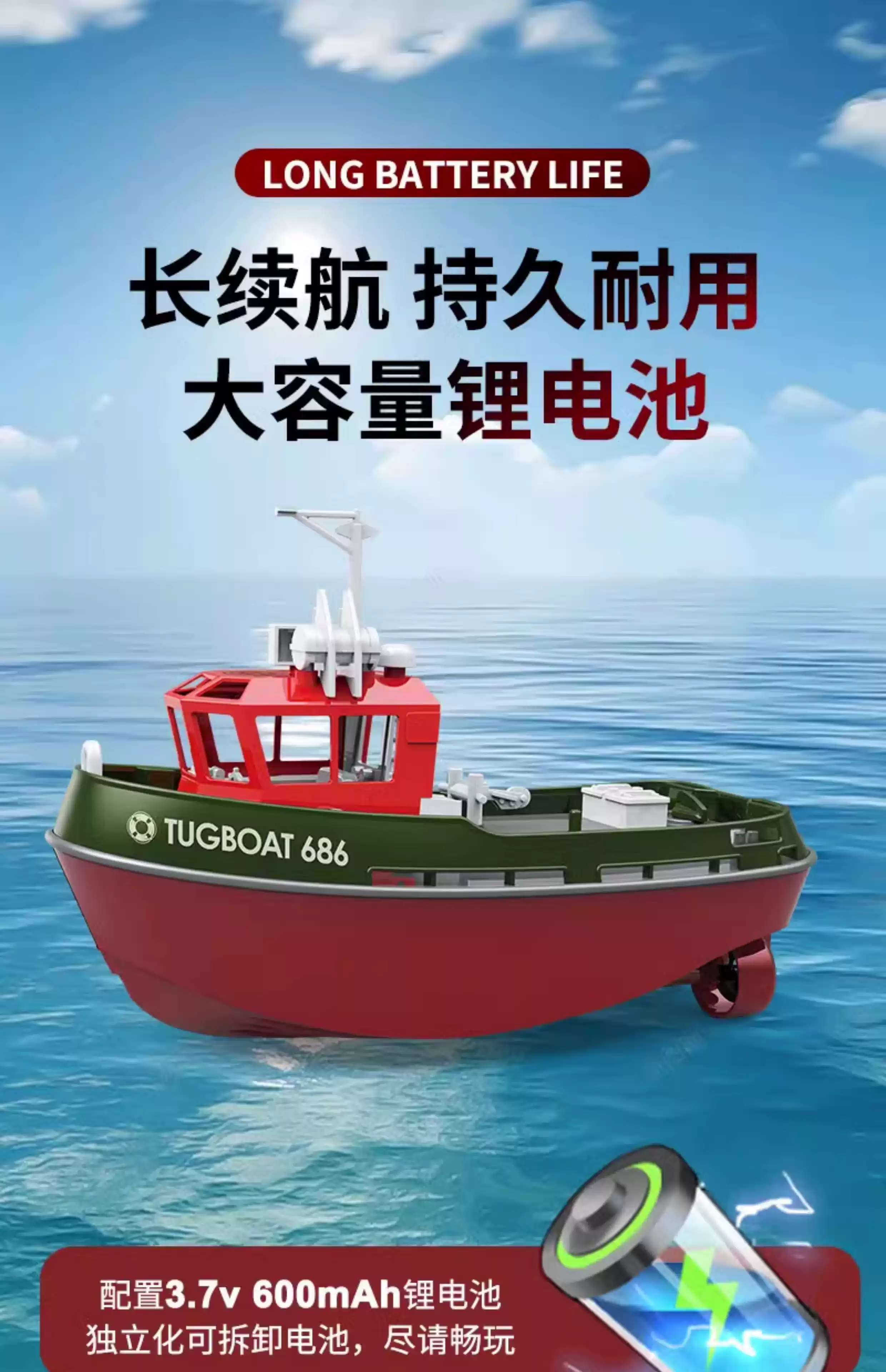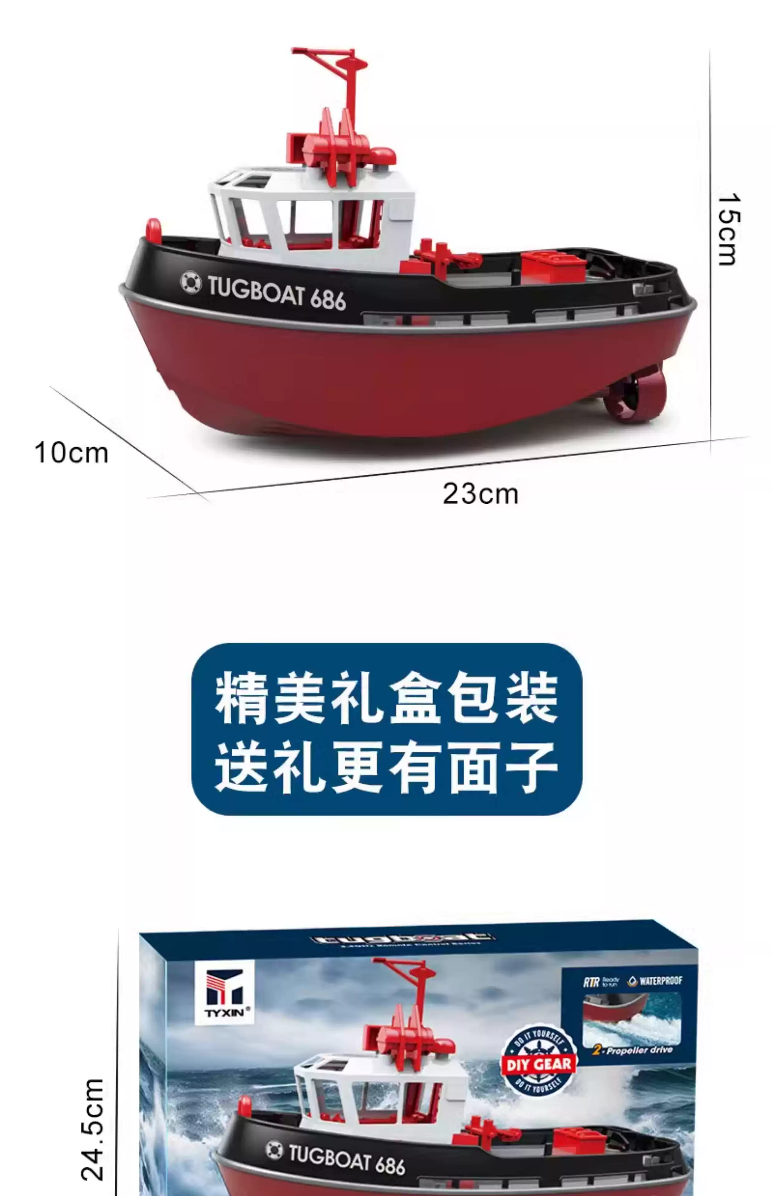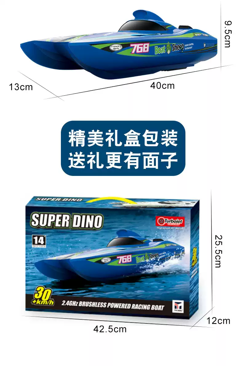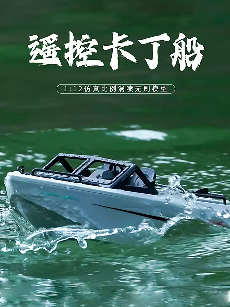 玩具迷你遥控拖船充电高速快艇轮船无线电动男孩儿童水上玩具船模 41cm-高速艇-无刷涡喷黄色 3块电池轮换约玩30多分钟