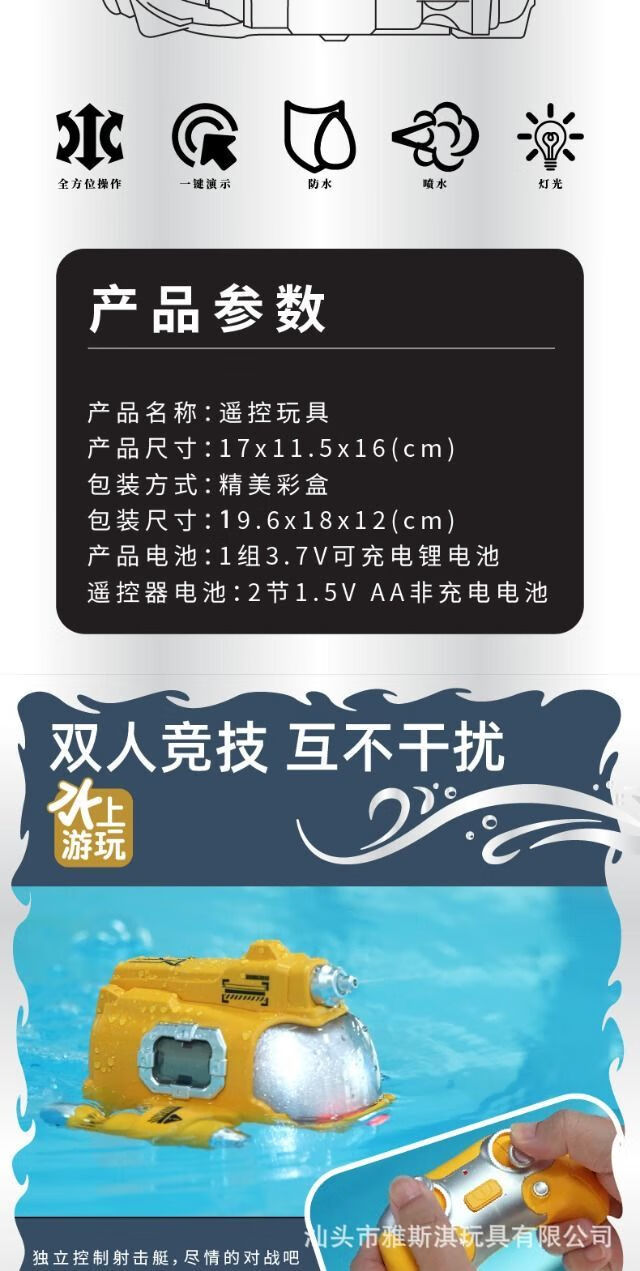 Ferngesteuertes U-Boot-Spielzeug für Kinder 2025 neues Bootsmodell kann auf dem Wasser gestartet werden Schwarzer Technologiejunge Hochgeschwindigkeits-Schnellboot Wassersprühmodell - glückliches gelbes ferngesteuertes Motorboot Luxuriöse wasserdichte Drei-Power-Fernbedienung + exquisite Geschenkbox