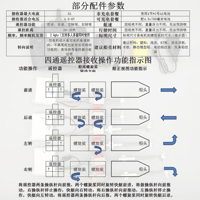 山头林村自制遥控船内部配件电路接收船模控制器套装动力手工模型 145mm遥控动力可充电 官方标配