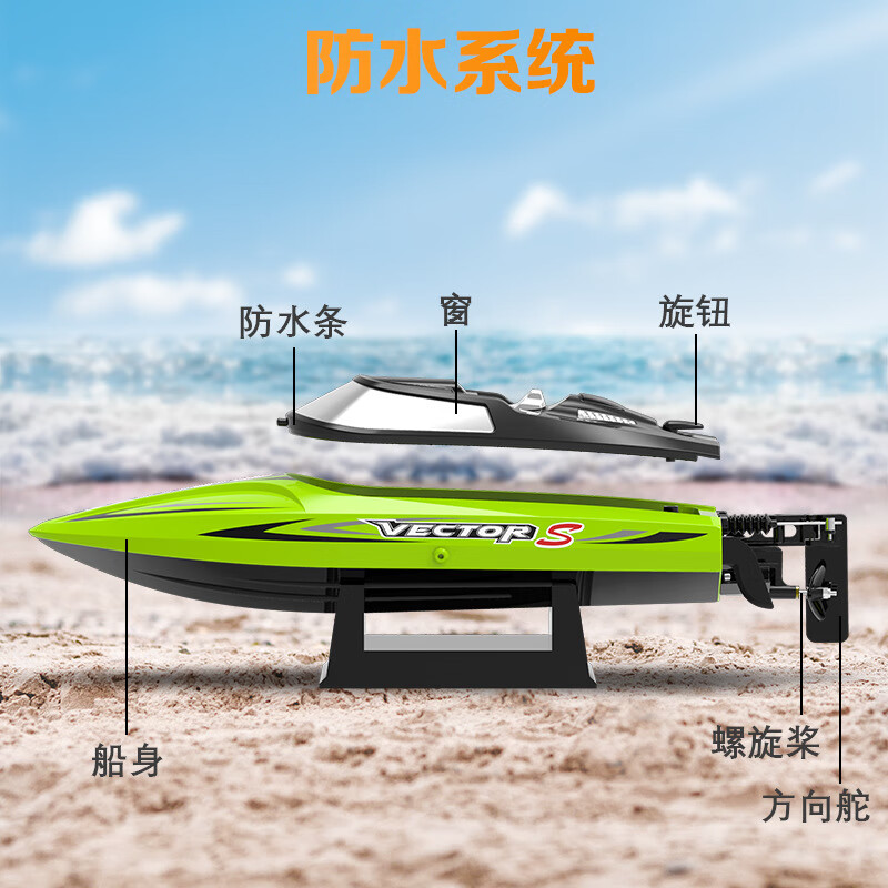 OL bateau télécommandé transfrontalier moteur sans balais 50 km télécommande haute vitesse hors-bord jeu d'eau bateau télécommandé électrique bleu chargeur standard américain