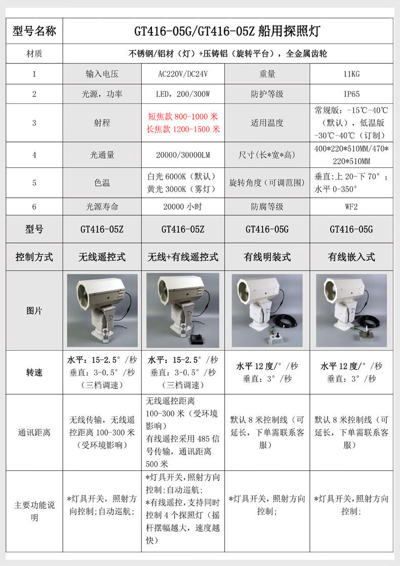 Navigation 220V DC24V Fernbedienung Yacht rotierendes Schiff Langstrecken-LED-Scheinwerfer Suchscheinwerfer für große Frachtschiffe 200W verdrahtete oberflächenmontierte DC24V Kurzfokus und Langfokus optional