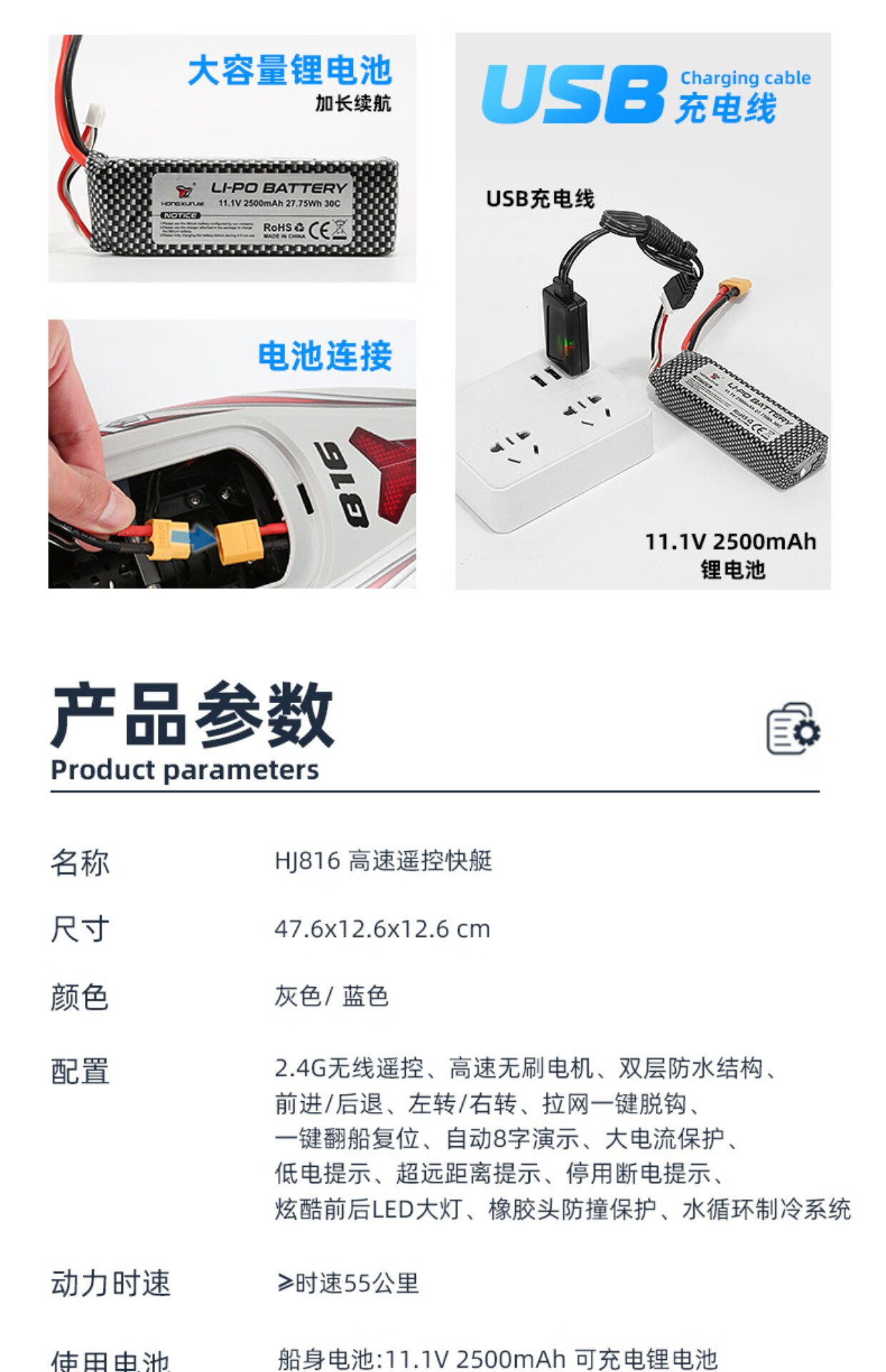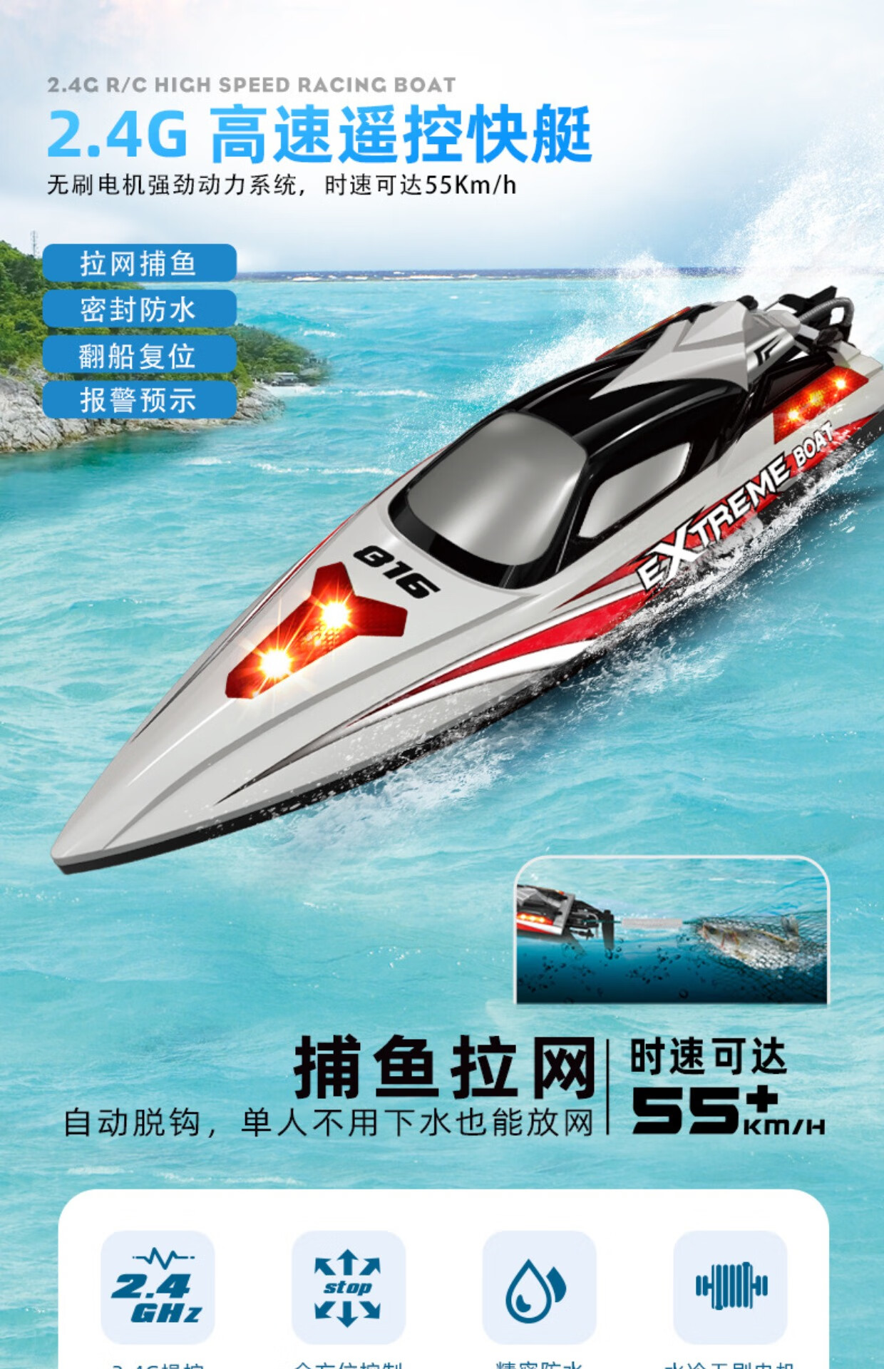 宰搂海边撒网遥控船无刷大功率拉网专用可下水高速快艇下网神器大马特 大号35cm双电机高速快艇-天空蓝' 标配单电含1块电池+充电线+质