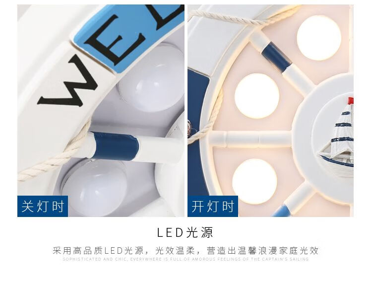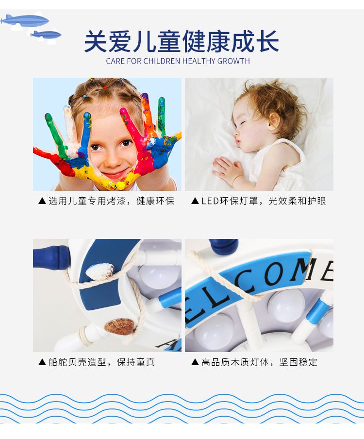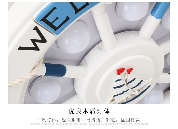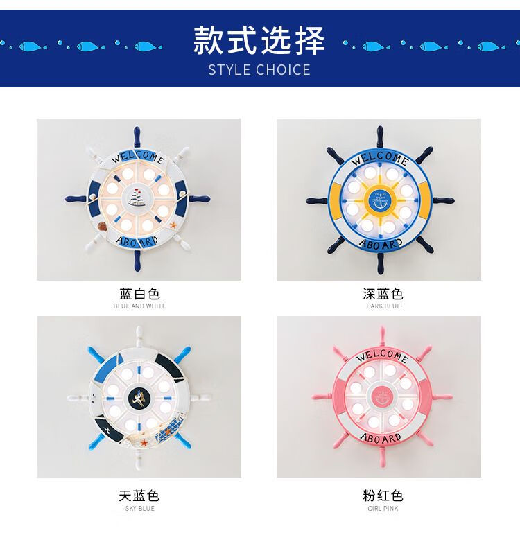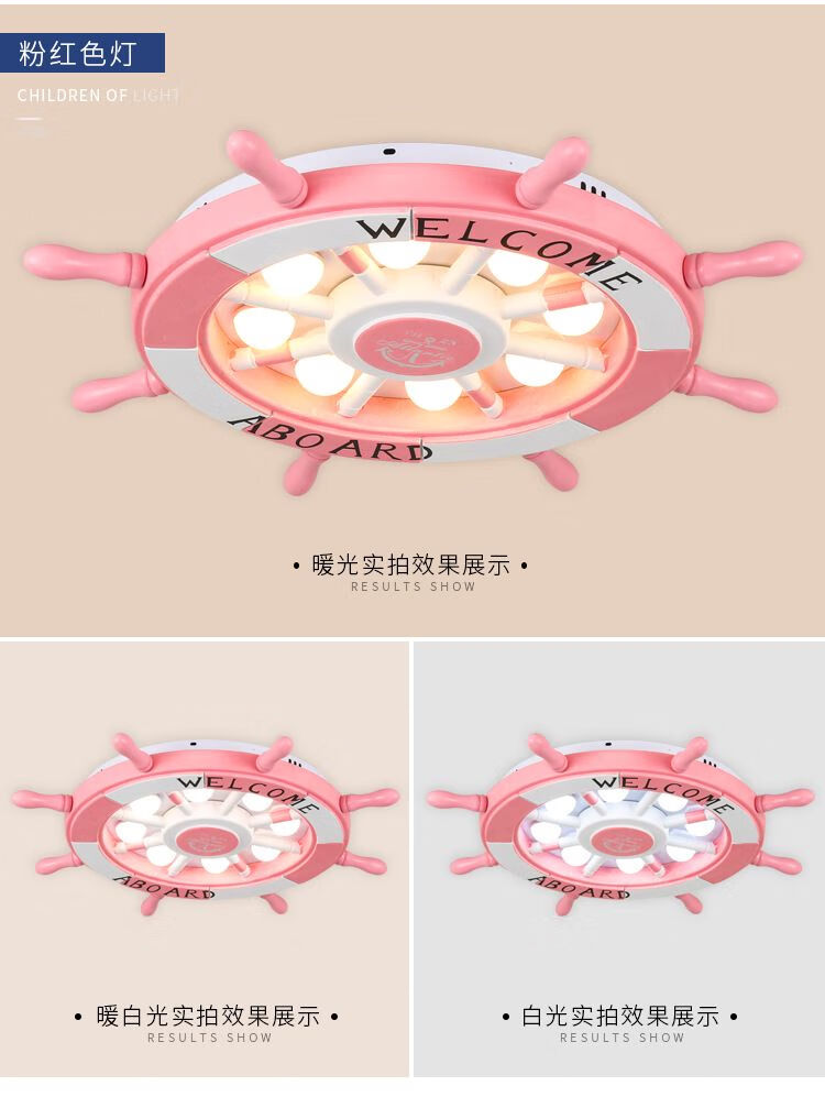 Shantou Lincun Plafonnier pour chambre d'enfant dans la chambre d'un bateau de pirate, lampe de gouvernail de style méditerranéen, lampe de chambre à coucher de dessin animé de célébrité sur Internet, bleu et blanc, ensemble complet de gradation en continu + télécommande