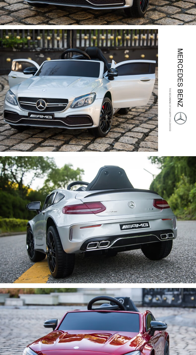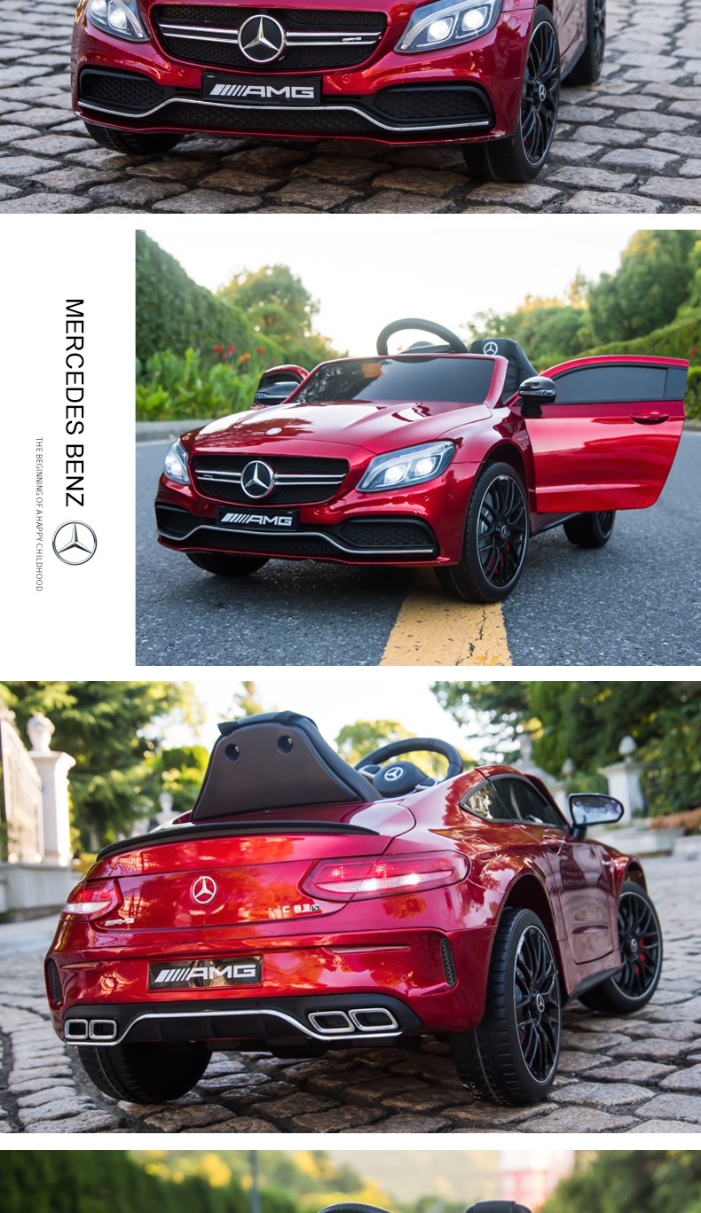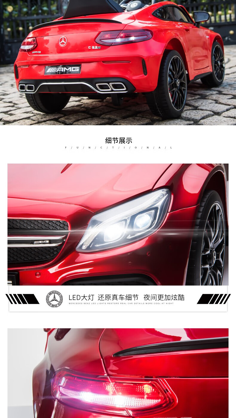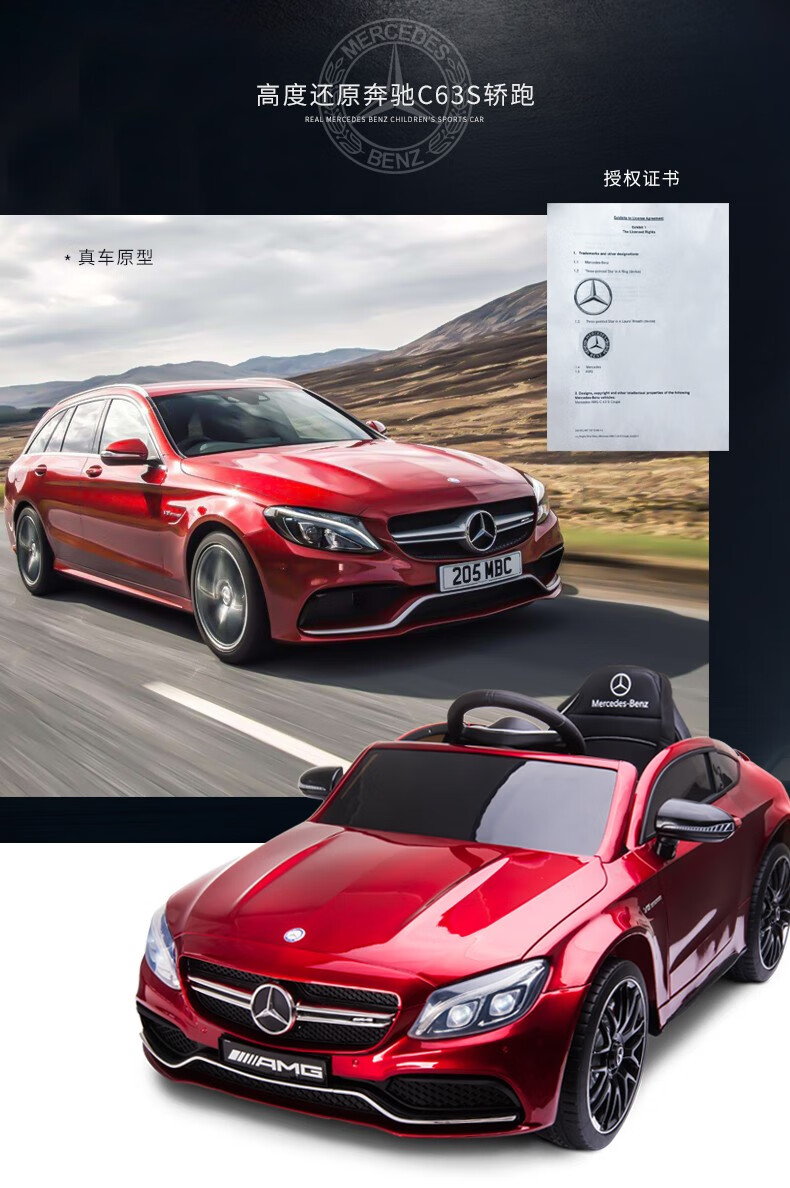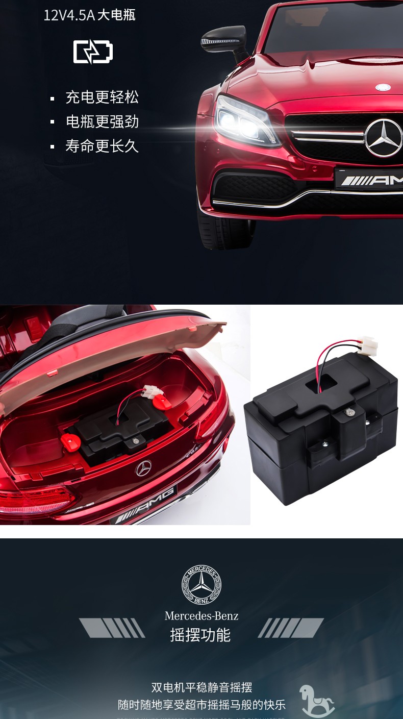 Echt autorisiertes Mercedes-Benz Kinder-Elektroauto, Allrad-Babyspielzeug mit Fernbedienung, Autoaufladung für Jungen und Mädchen, schaukelnd und sitzend, mit Fernbedienung, Xingchenhao-Farbe, weinrot, Vierradantrieb, tragbares Laden, Schaukel, hohe Türöffnung, Ledersitz