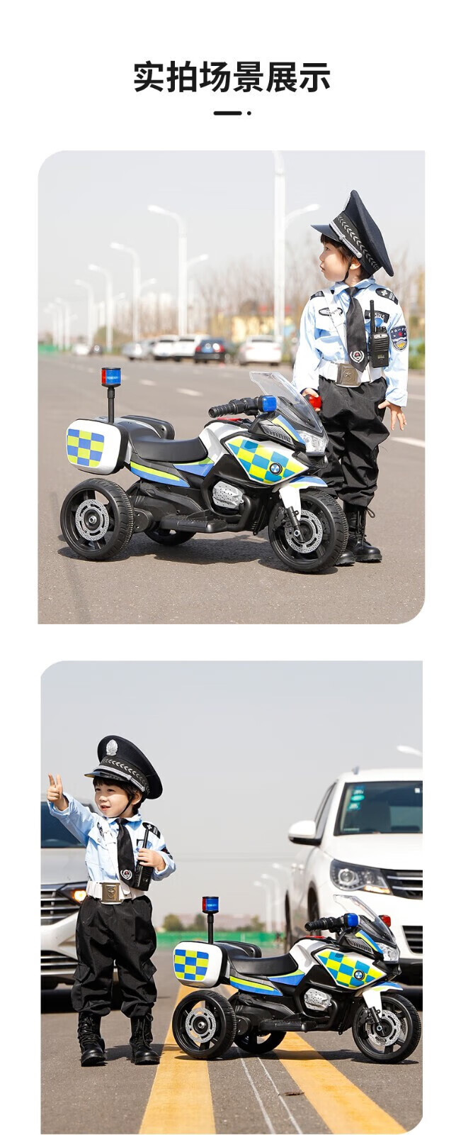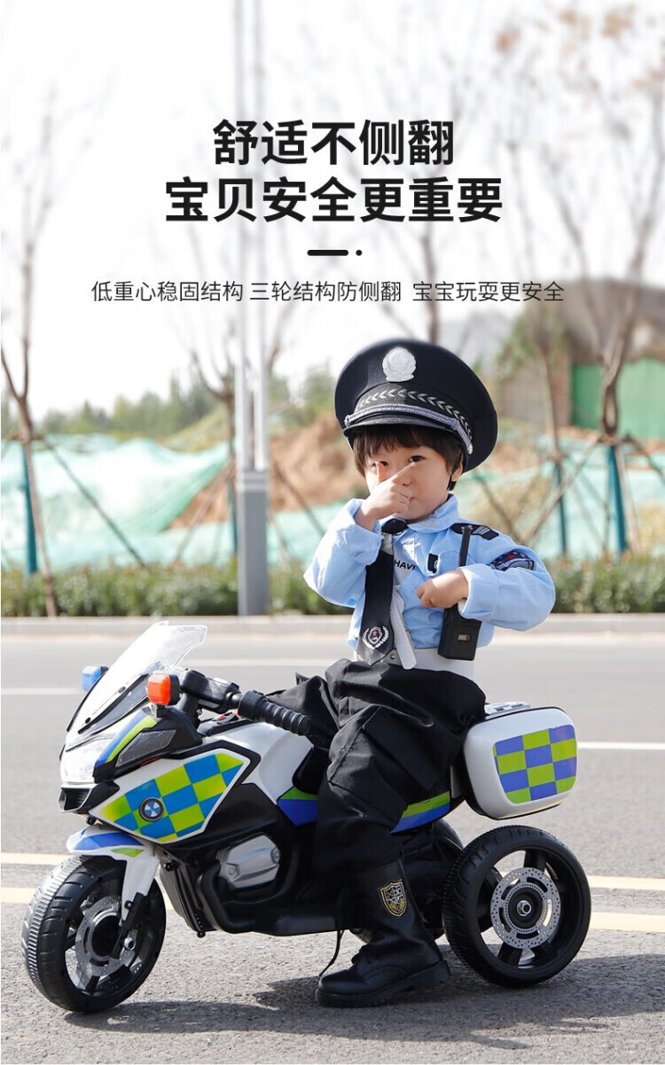 小乐狗儿童电动车摩托车警车玩具车可坐人电瓶充电三轮车宝宝男孩遥控 绿色遥控警车超大电瓶+早教