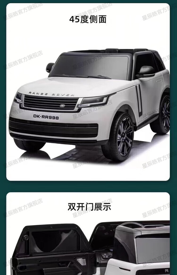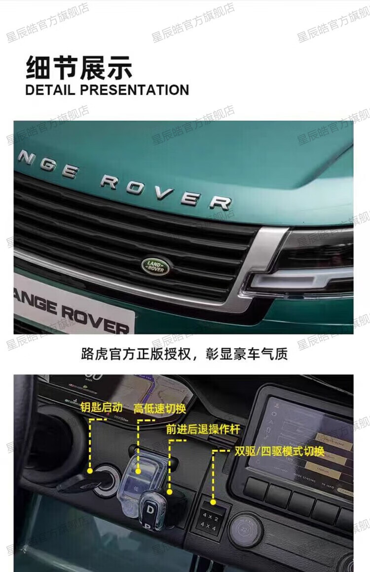 Xingchenhao Land Rover Range Rover Kinder-Elektroauto Allradantrieb mit ferngesteuertem Spielzeugauto kann im Geländewagen sitzen, Kinderwagen für Kinder, weiß poliert, Allradantrieb + Fernbedienung + Schaukel + Ledersitz + weiche Räder