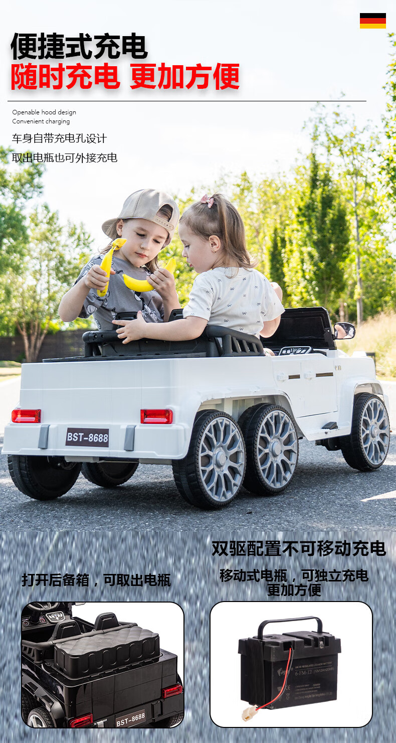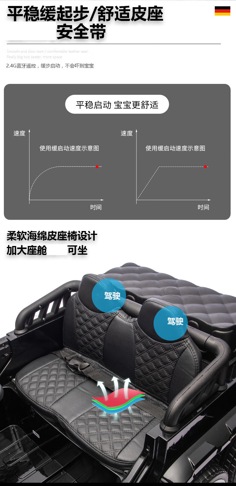 技速超大号儿童电动车双人可做1到5岁宝宝遥控玩具童车小孩可驾驶四驱 A烤漆黑四驱:12V10+软座+全功能