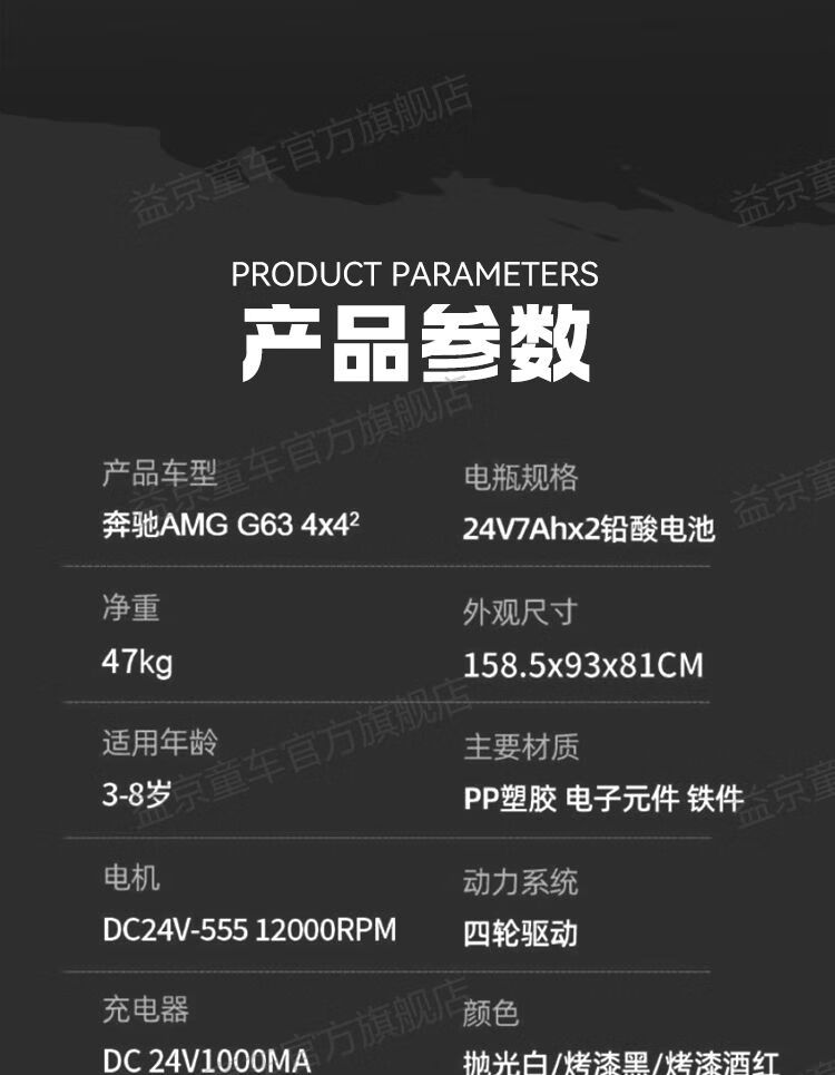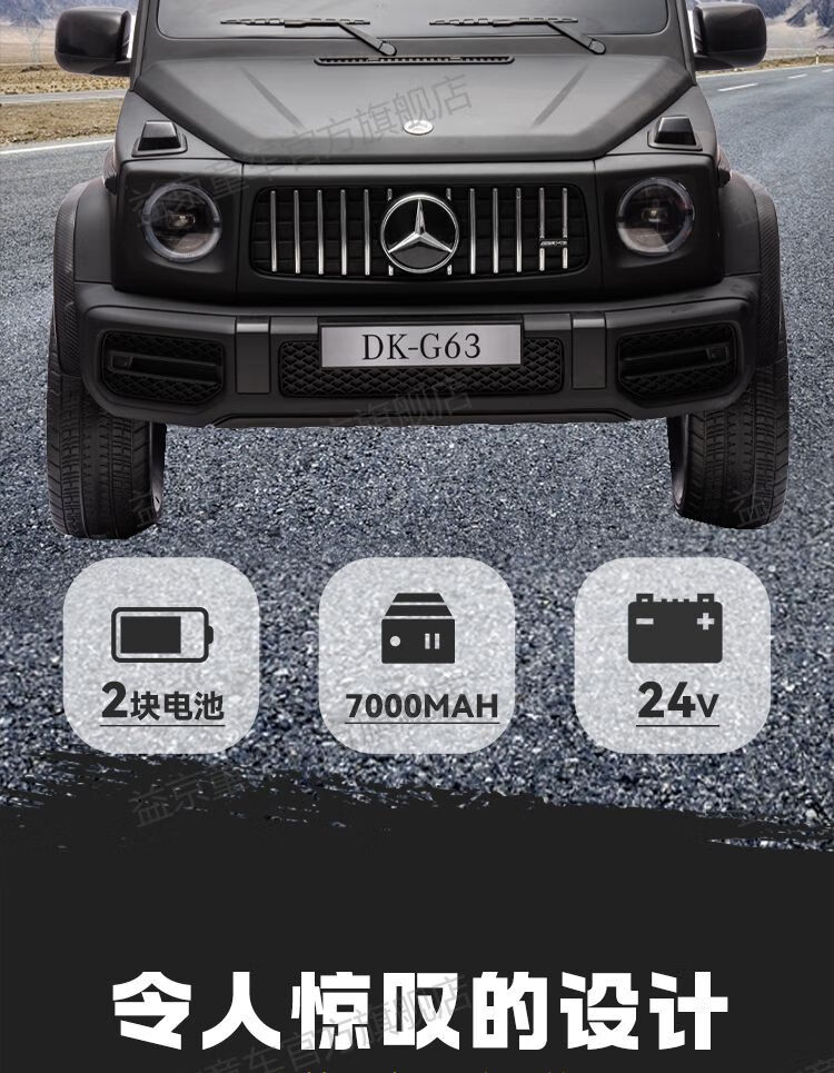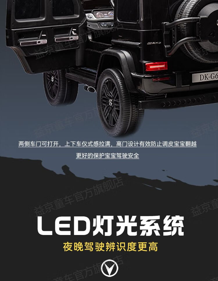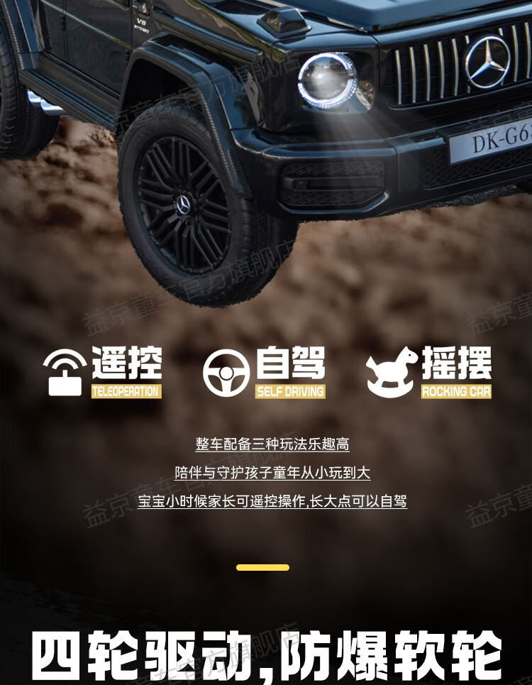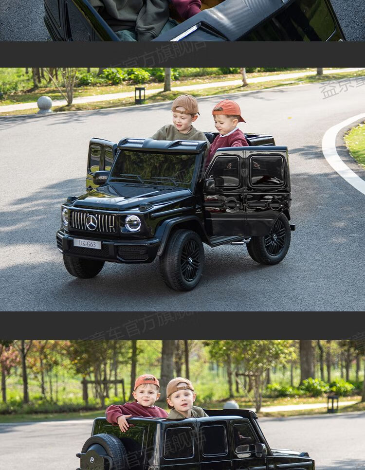 La poussette tout-terrain à quatre roues motrices de voiture électrique pour enfants Yijing Benz Big G peut s'asseoir sur une voiture jouet pour bébé à deux places, voiture pivotante à quatre roues, peinte en noir + double batterie 24 V + double siège en cuir + roue souple quatre roues motrices télécommande pneu de secours