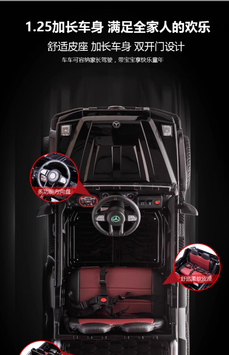 Mère et bébé Mercedes-Benz Big G voiture électrique pour enfants bébé voiture télécommandée à quatre roues peut asseoir adultes, parents et enfants double voiture jouet noire à six roues motrices + batterie Chaowei 12V10 + double accélérateur
