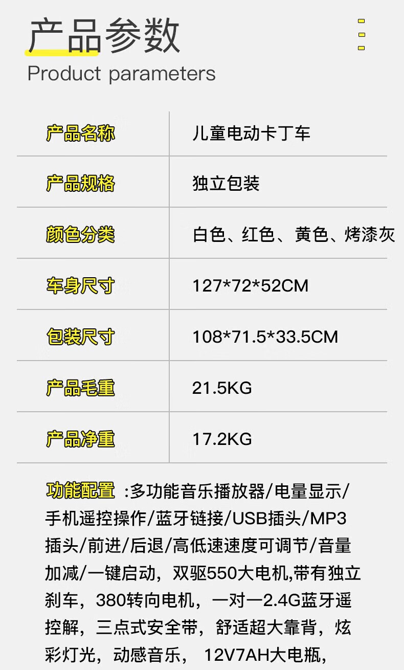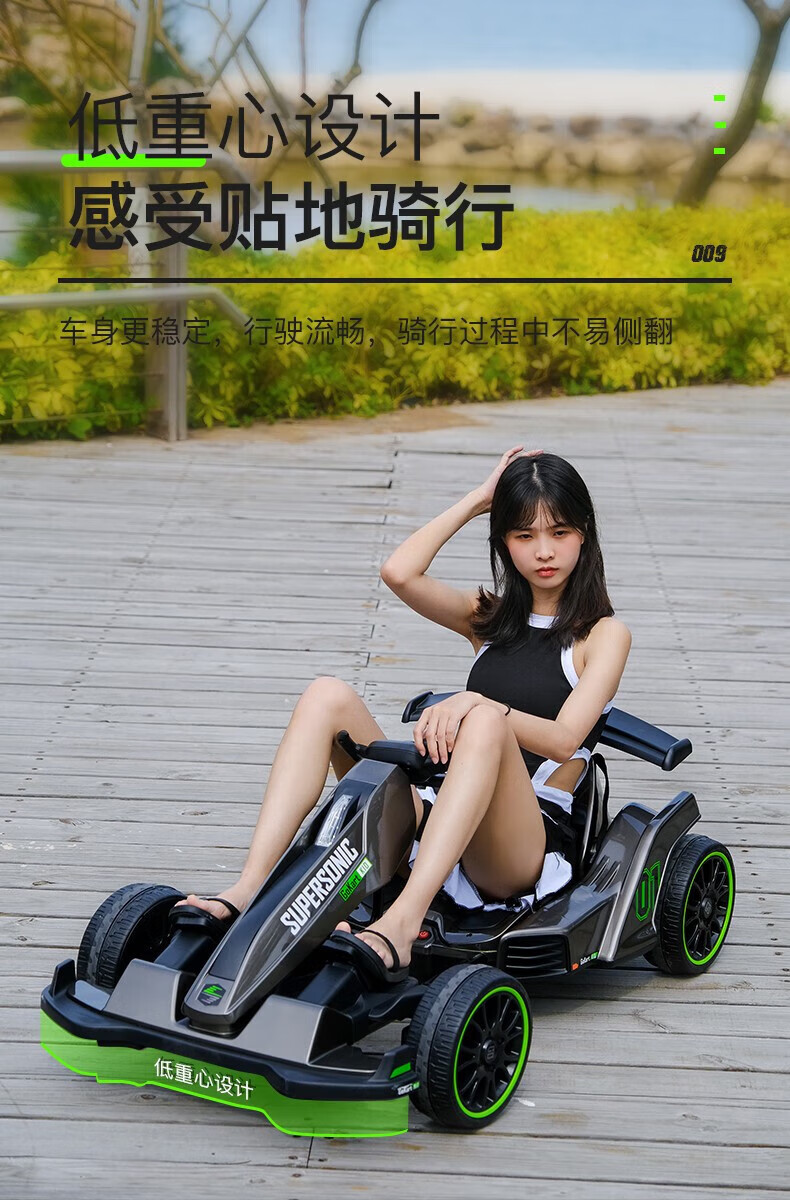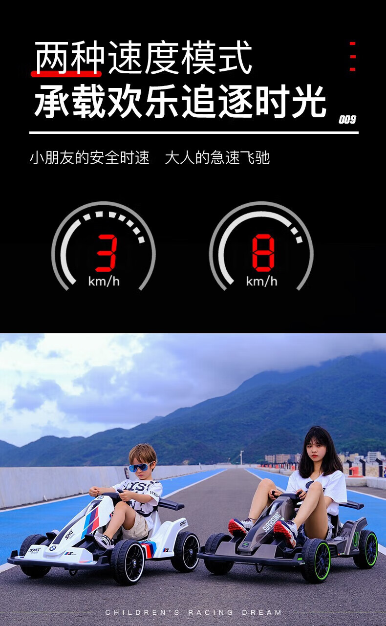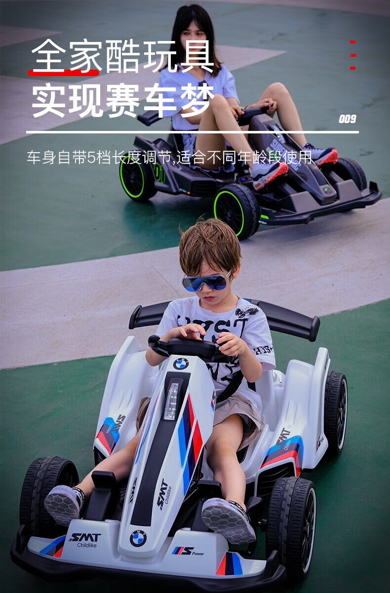 Le kart électrique pour enfants Samat peut accueillir des adultes, des hommes et des femmes, des bébés et des enfants et peut conduire une voiture jouet télécommandée à quatre roues, rechargeable, gris chevalier, batterie 12 V + télécommande + musique Bluetooth, rétractable et réglable.