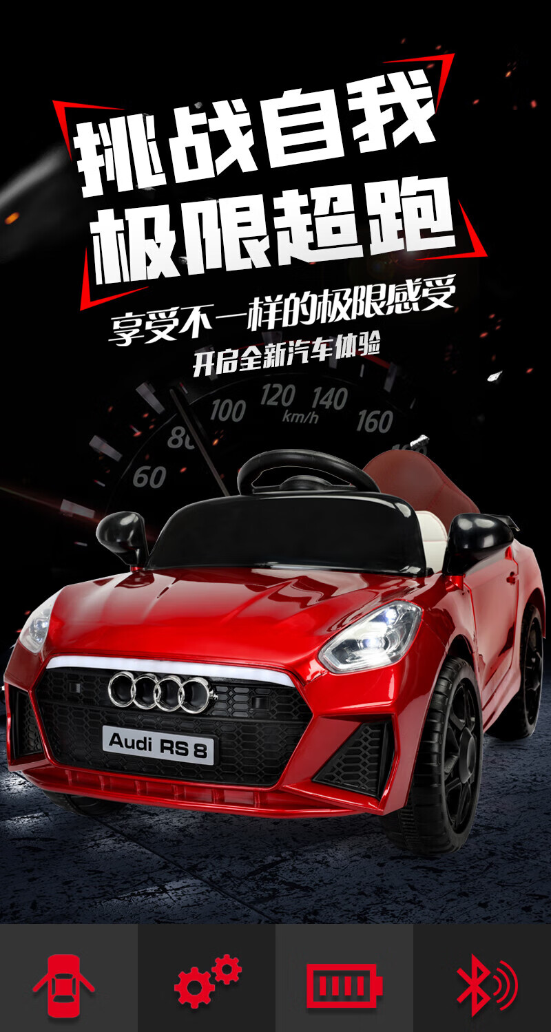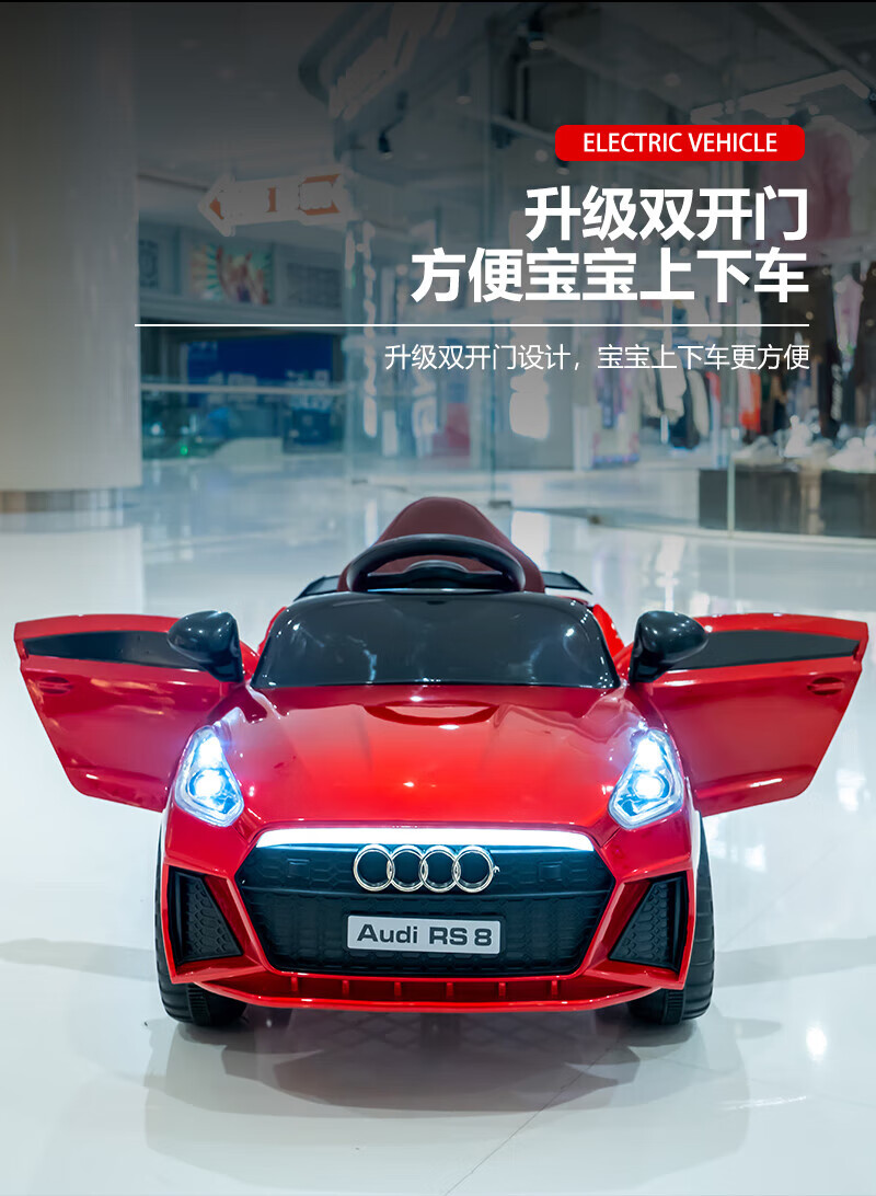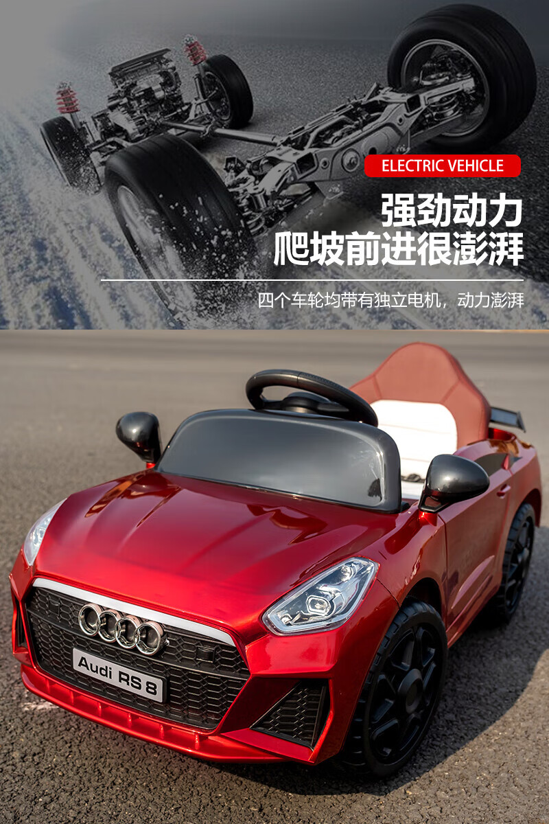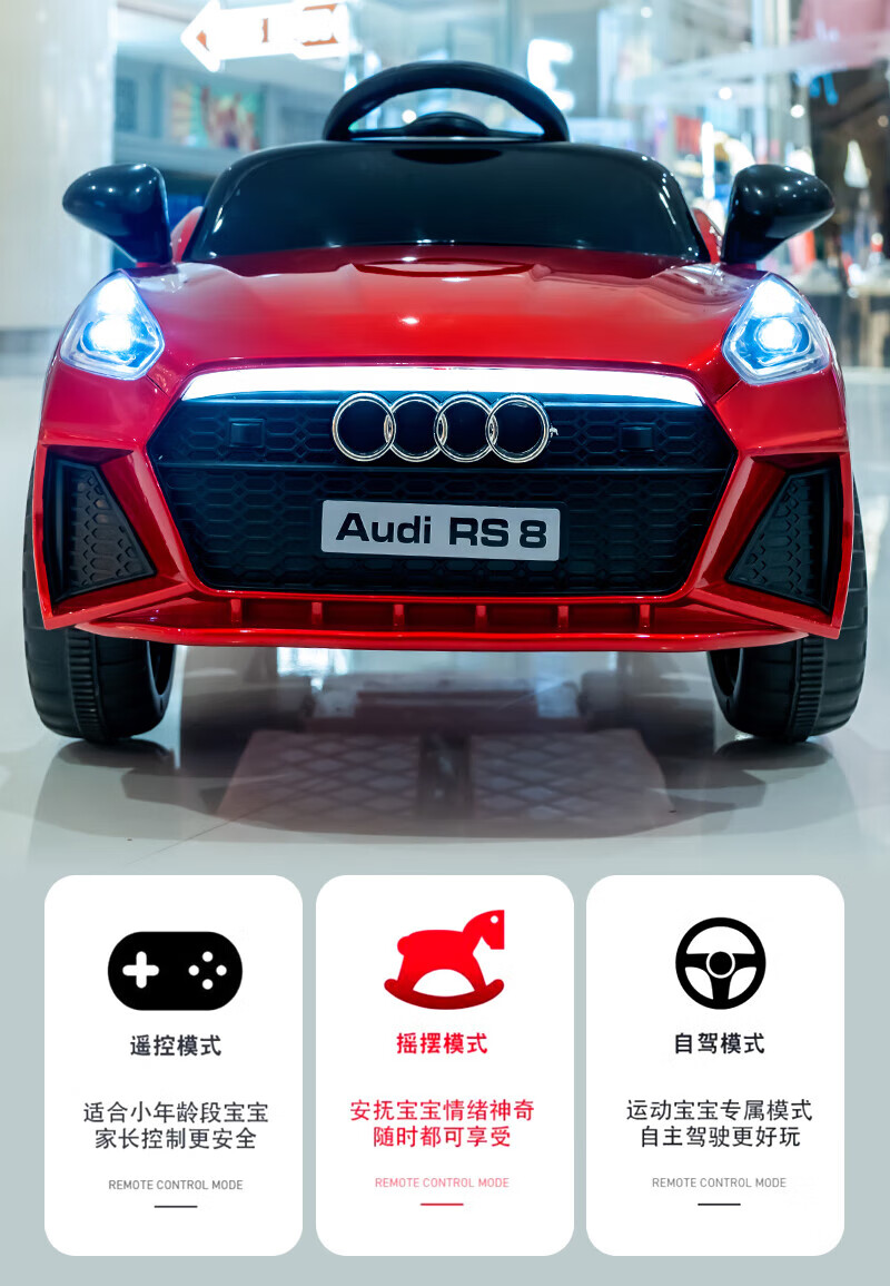 La nouvelle voiture électrique pour enfants de Haerguai Audi à quatre roues avec voiture de bébé télécommandée pour hommes et femmes et voiture jouet pour enfants peut accueillir des adultes Dahong double entraînement + télécommande autonome + téléphone portable Bluetooth entraînement électrique