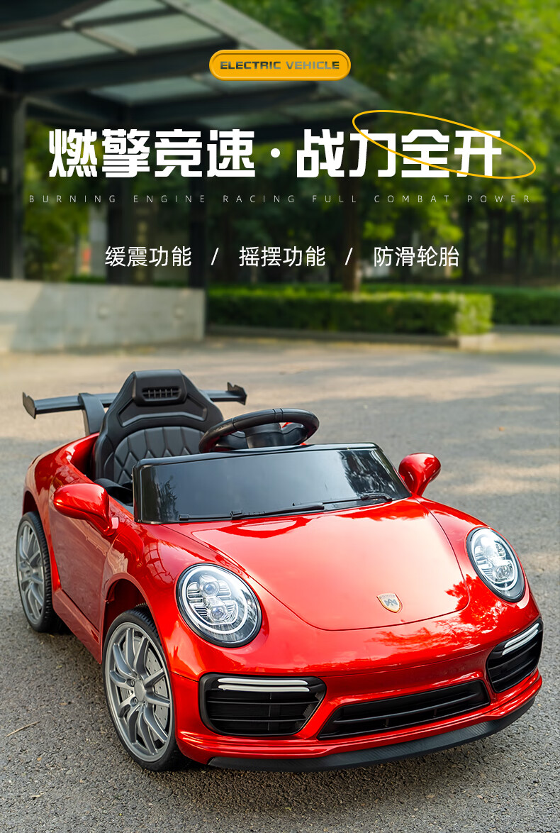 Voiture électrique télécommandée à quatre roues pour enfants Hot Leopard peut s'asseoir sur une voiture jouet pour bébé peut conduire une voiture de sport pour bébé, cadeau de première année, voiture de sport en poudre à quatre roues motrices + batterie 12V7A + télécommande Bluetooth + musique et éclairage + siège en cuir