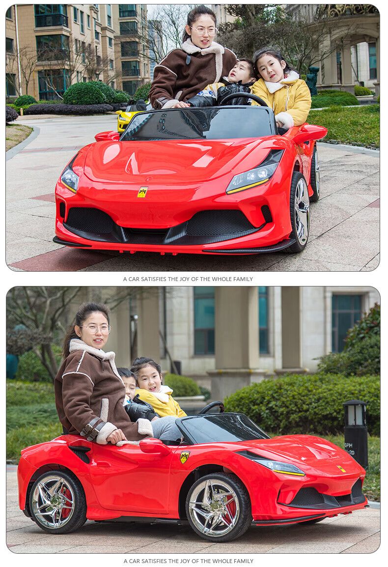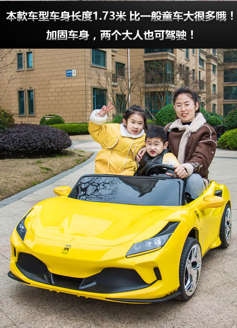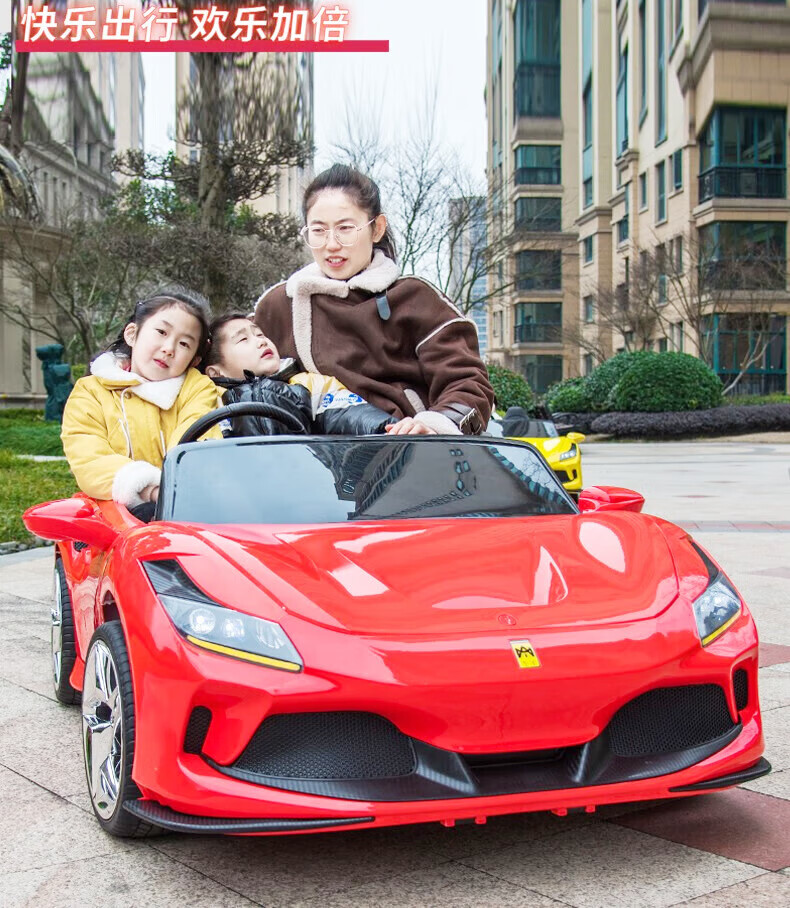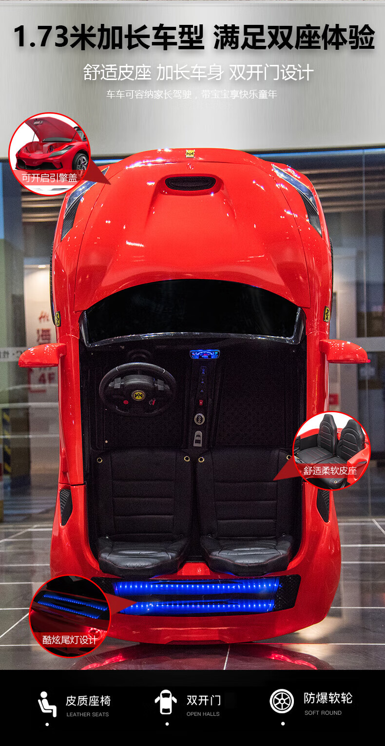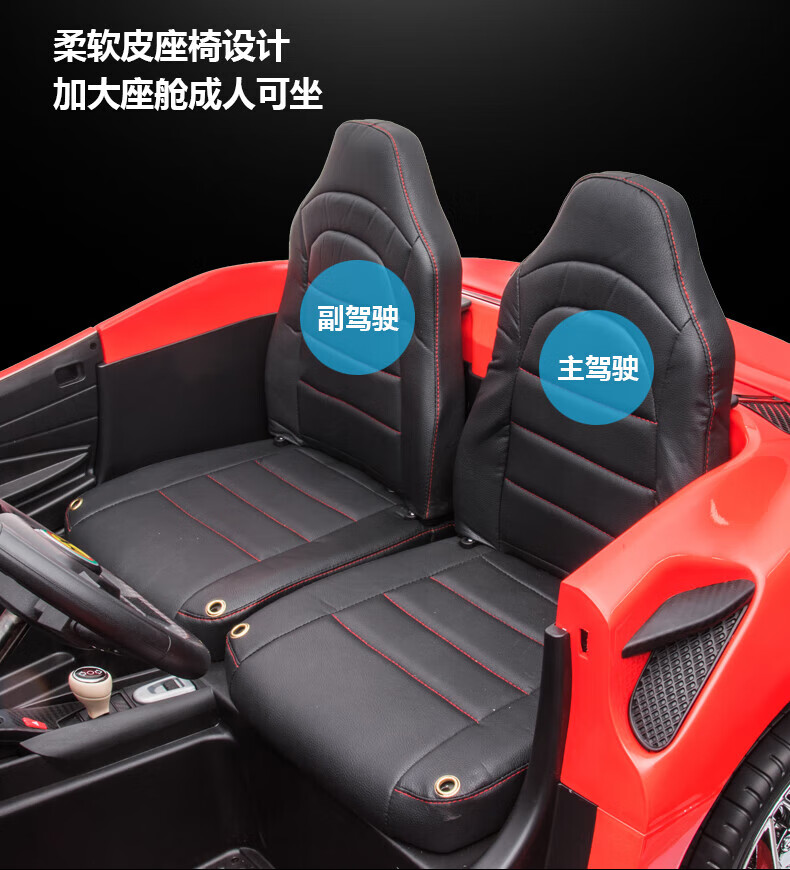 沃米特【1.7米亲子车】儿童电动车可坐大人双座汽车可驾驶遥控玩具童车 红色:12V14A电瓶+软轮+早教音乐