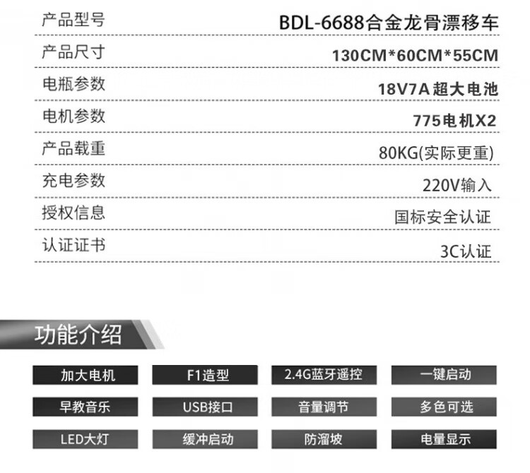 Le kart de dérive de voiture électrique pour enfants adultes parent-enfant Coolpac peut s'asseoir sur un cadeau d'anniversaire télécommandé à quatre roues pour adultes, hommes, femmes et enfants. Petite batterie blanche standard de 6 V - pas de siège arrière, pas d'aile arrière, télécommande à double entraînement + roue dérivante + garantie à vie