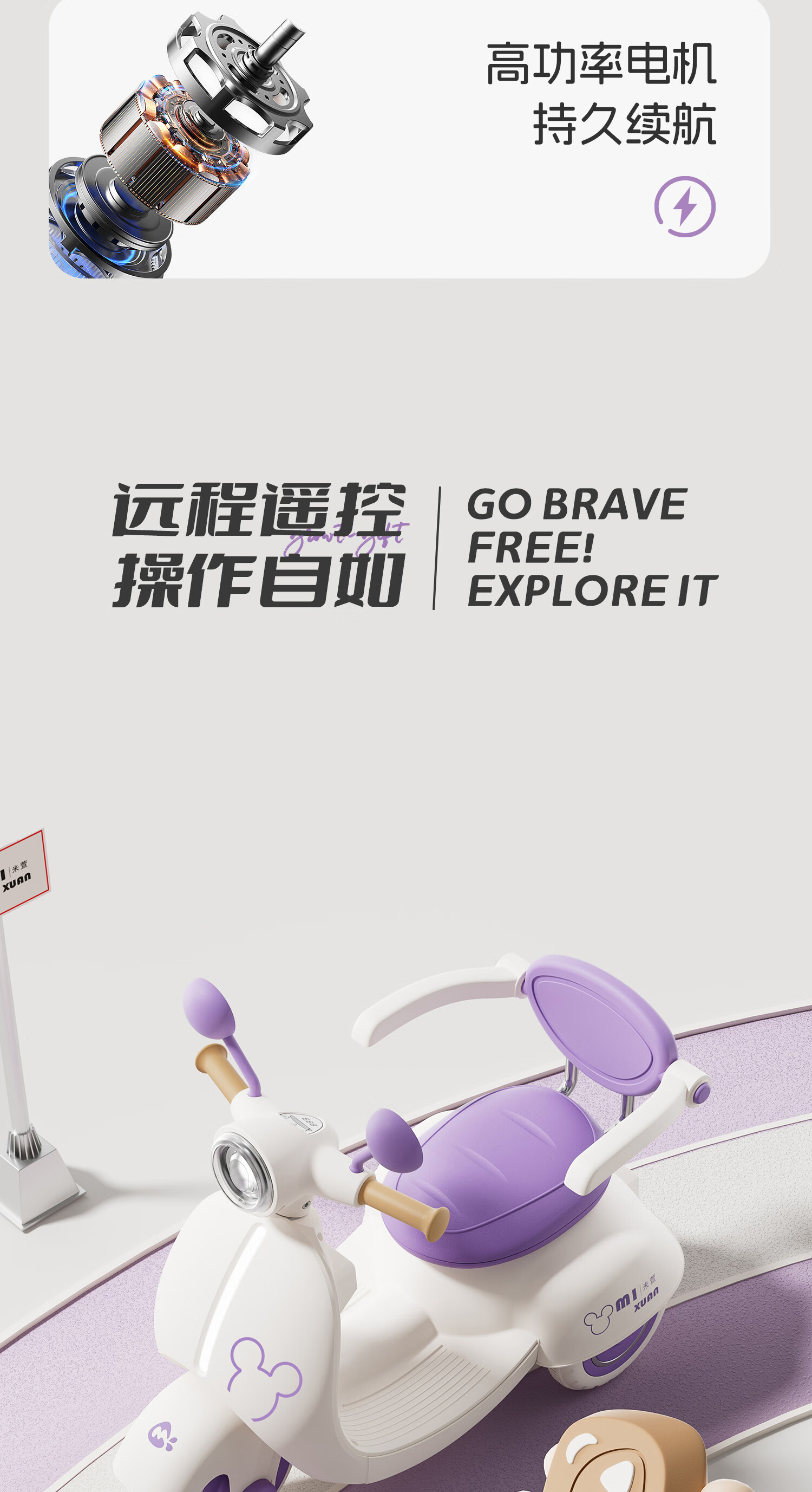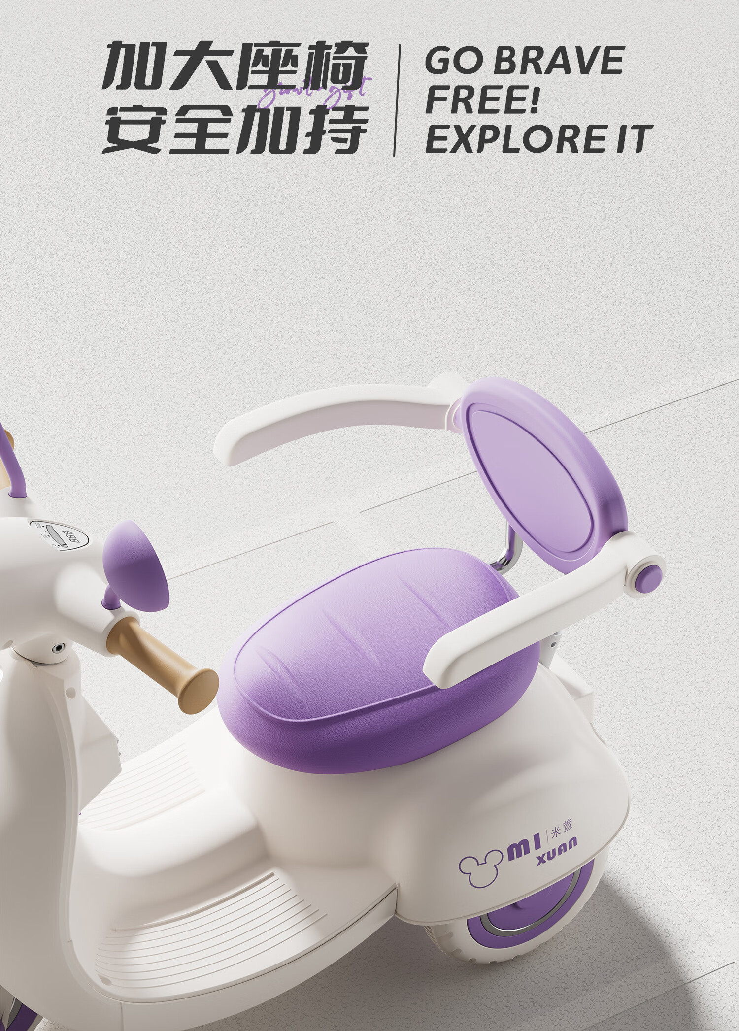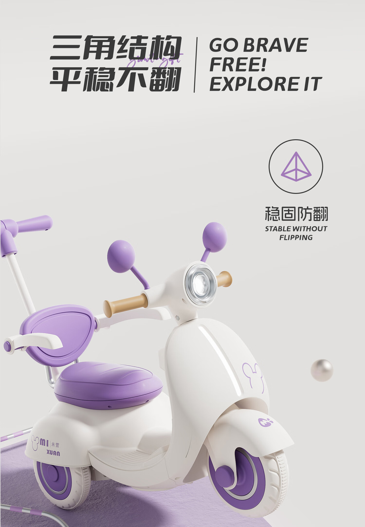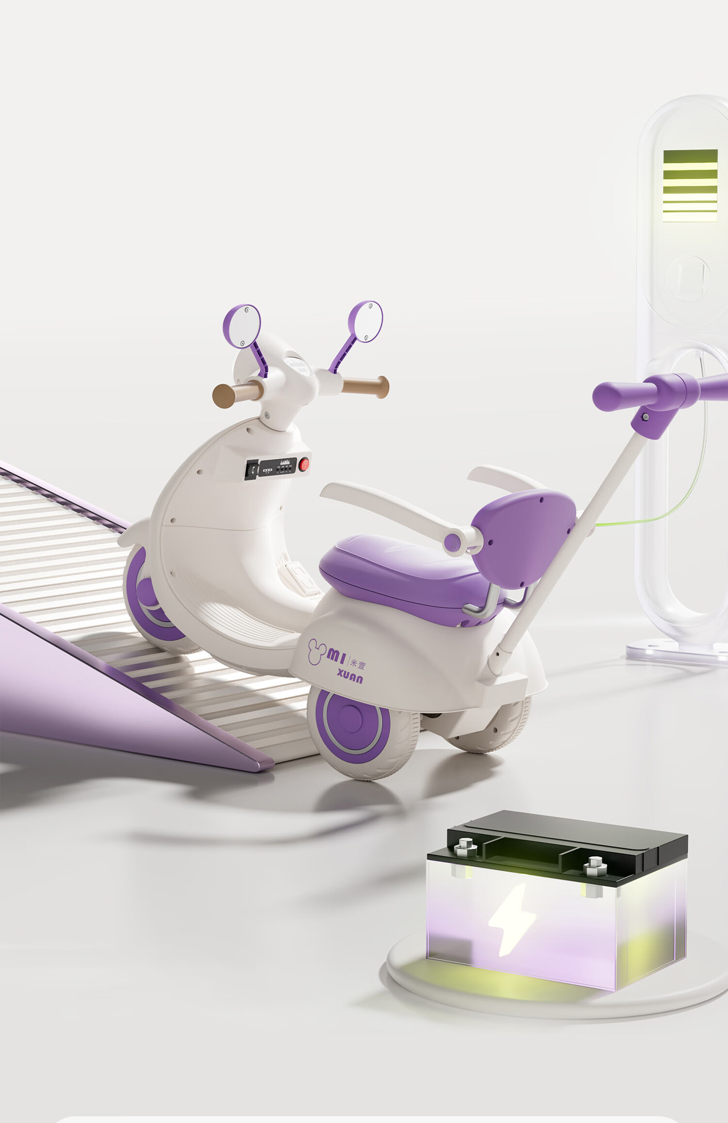 Voiture électrique pour enfants Magmeng 1-3 ans, moto, bébé mâle et femelle de 6-8 ans, tricycle rechargeable, peut s'asseoir sur une personne, voiture jouet télécommandée, version haut de gamme violet romantique, télécommande + double entraînement + tige de poussée, cadeau d'anniversaire, cadeau de fête des enfants