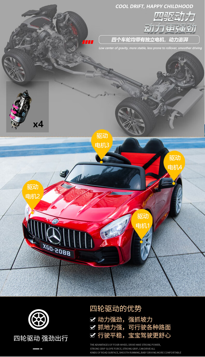 HERO THRIVE La voiture électrique à quatre roues pour enfants Mercedes-Benz peut s'asseoir dans une balançoire télécommandée cadeau d'anniversaire pour bébé voiture jouet pour enfants rouge à double entraînement conduite autonome + télécommande + balançoire + éducation précoce + batterie antidéflagrante 12 V