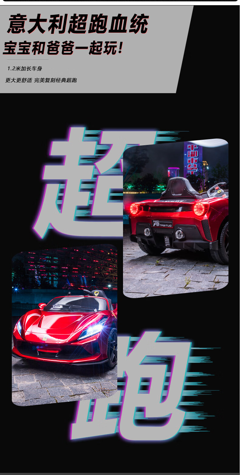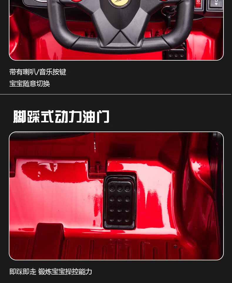 Junyu children's electric car small Ferrari electric car four-wheel racing car 16-year-old remote control sports car stroller birthday SKU05 painted red_leather seat_remote control_swing_bluetooth electric drive