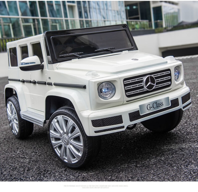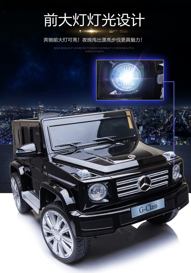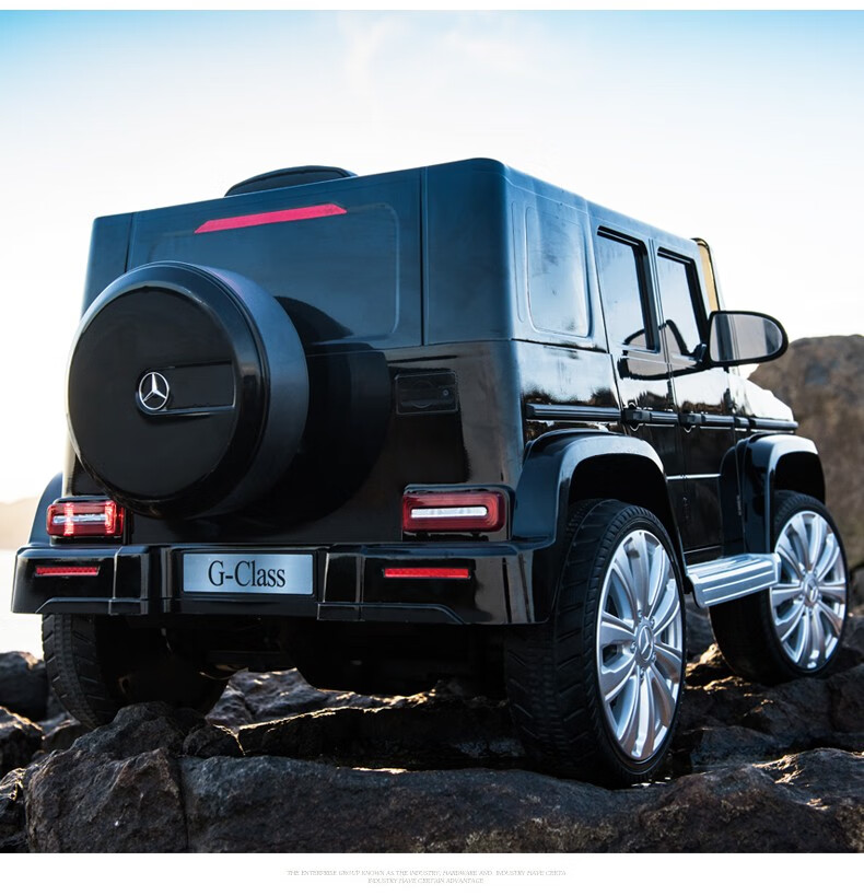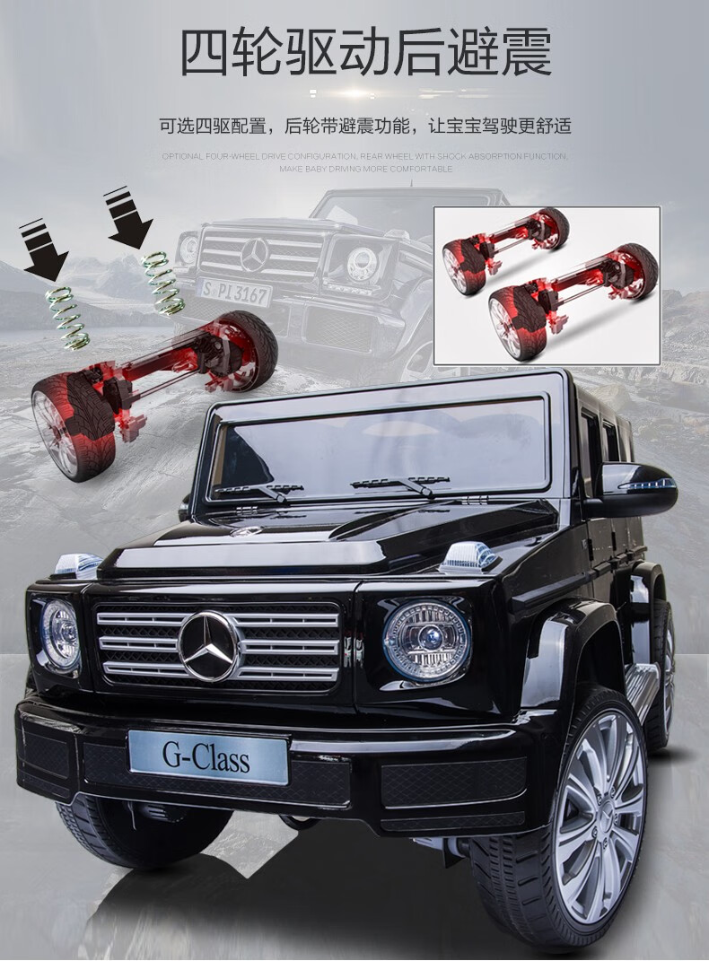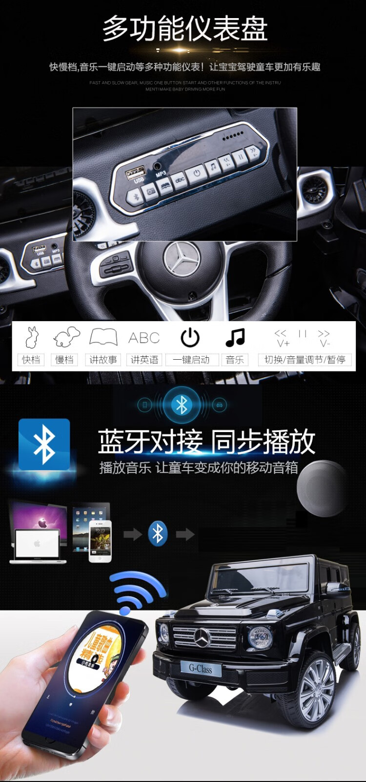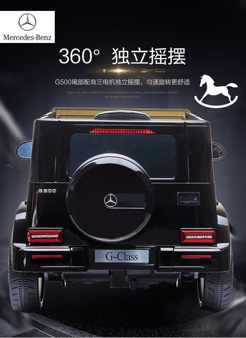 Berejia Benz Kinder-Elektroauto, Allrad-Spielzeug mit Allradantrieb, kann sitzen, Baby- und Kinderschaukel, Fernbedienung, Offroad-Lade-Kinderwagen, Flaggschiff, schwarz + weiche Räder, Allrad-Ledersitz, Schaukel, Bluetooth-Musik, vollständige Konfiguration