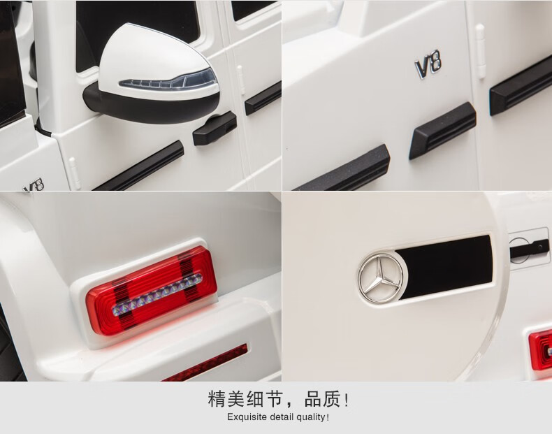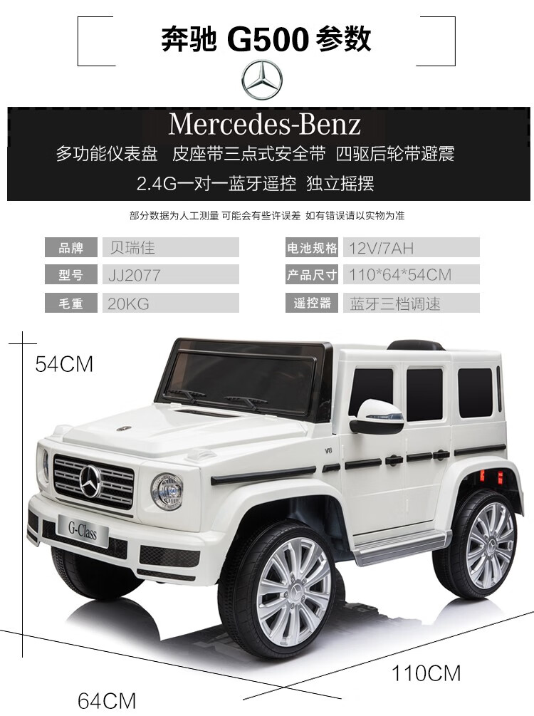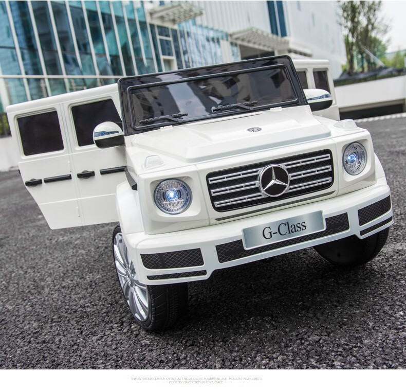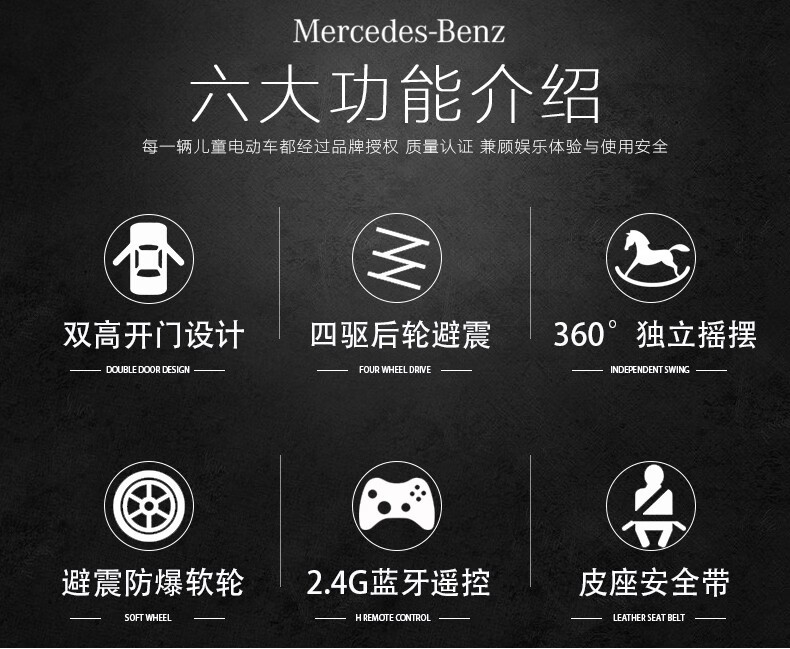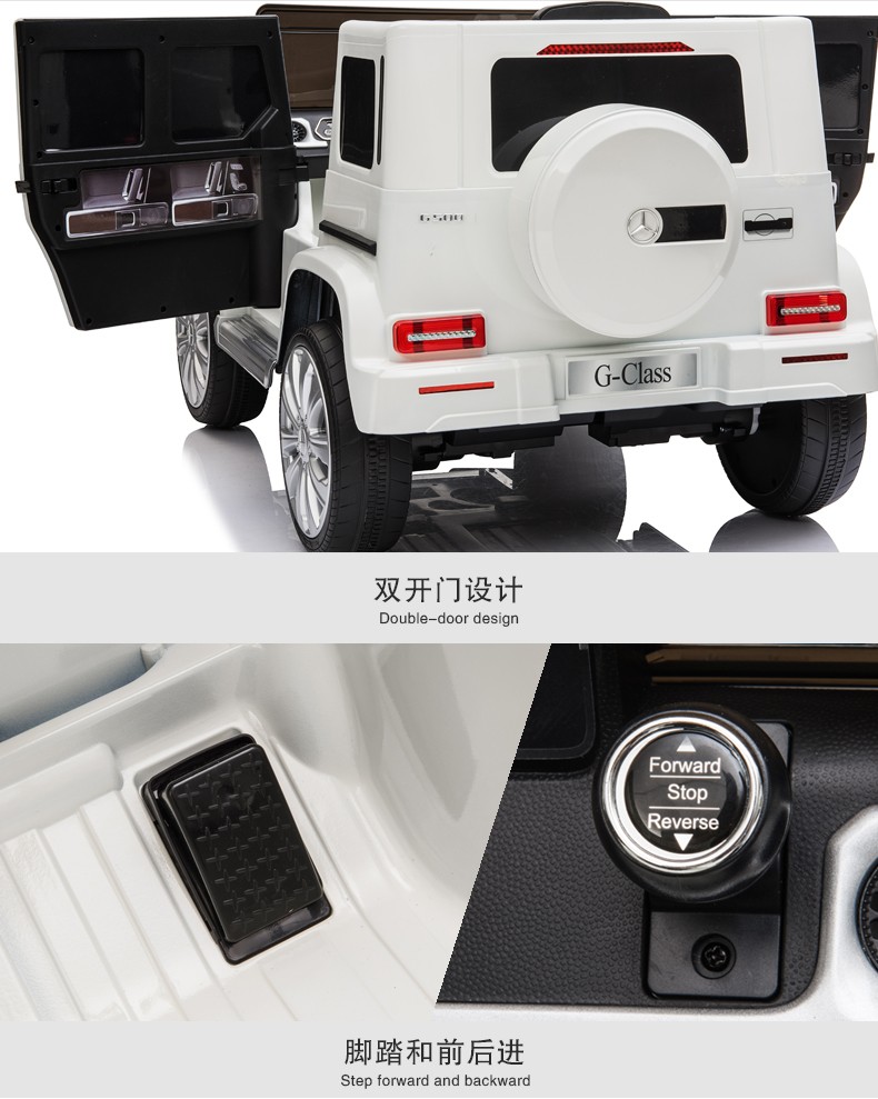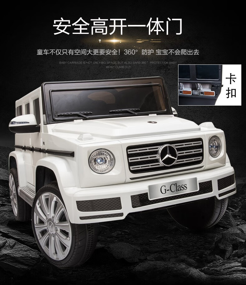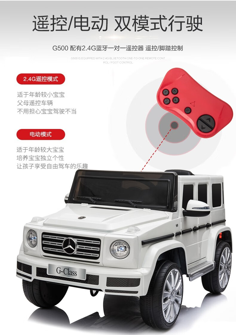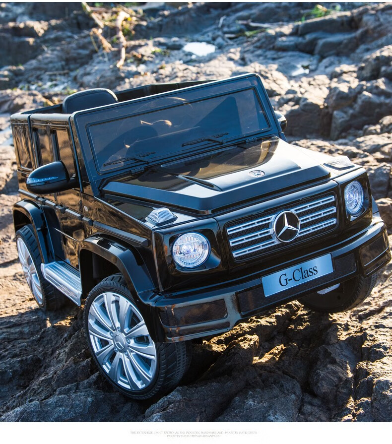 Berejia Benz Kinder-Elektroauto, Allrad-Spielzeug mit Allradantrieb, kann sitzen, Baby- und Kinderschaukel, Fernbedienung, Offroad-Lade-Kinderwagen, Flaggschiff, schwarz + weiche Räder, Allrad-Ledersitz, Schaukel, Bluetooth-Musik, vollständige Konfiguration