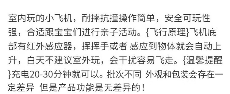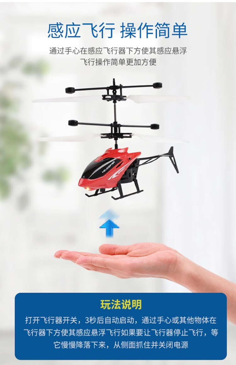 Jouet d'avion télécommandé pour enfants hélicoptère télécommandé avion électrique induction petit avion jouet garçon cadeau modèle rouge (apportez vos propres 2 piles AA)