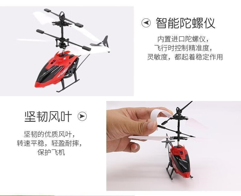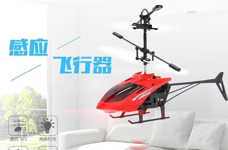 Hélicoptère d'avion télécommandé résistant aux chutes, jouets pour enfants rechargeables pour garçons et filles, vol de drone à suspension par induction, capteur d'hélicoptère rouge éblouissant de quatrième génération + câble de données