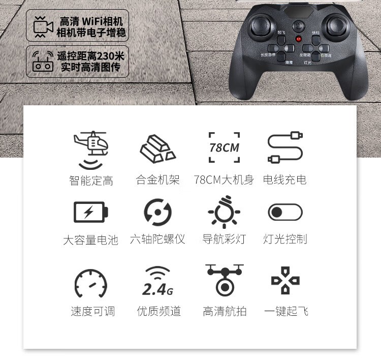 Miron Remote Control Plane Children's Super Large Aerial Photography Anti-Fall Electric Primary School Unmanned Helicopter Toy Boy Gift 32cm + Intelligent Height Setting - Gold 1 x 3000 mAh Lithium Battery