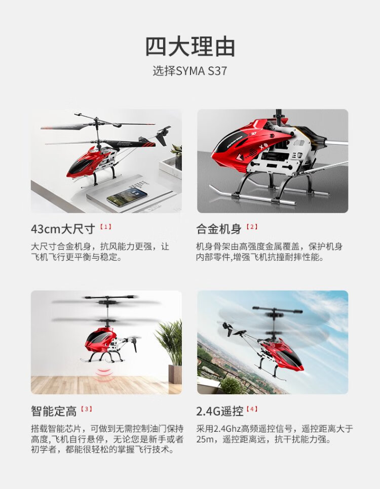 SYMA S37 avion télécommandé hélicoptère pour enfants jouet garçon drone en alliage cadeau d'anniversaire cadeau pour enfants hélicoptère à hauteur fixe en alliage S37 2 batteries (grande taille 43CM)