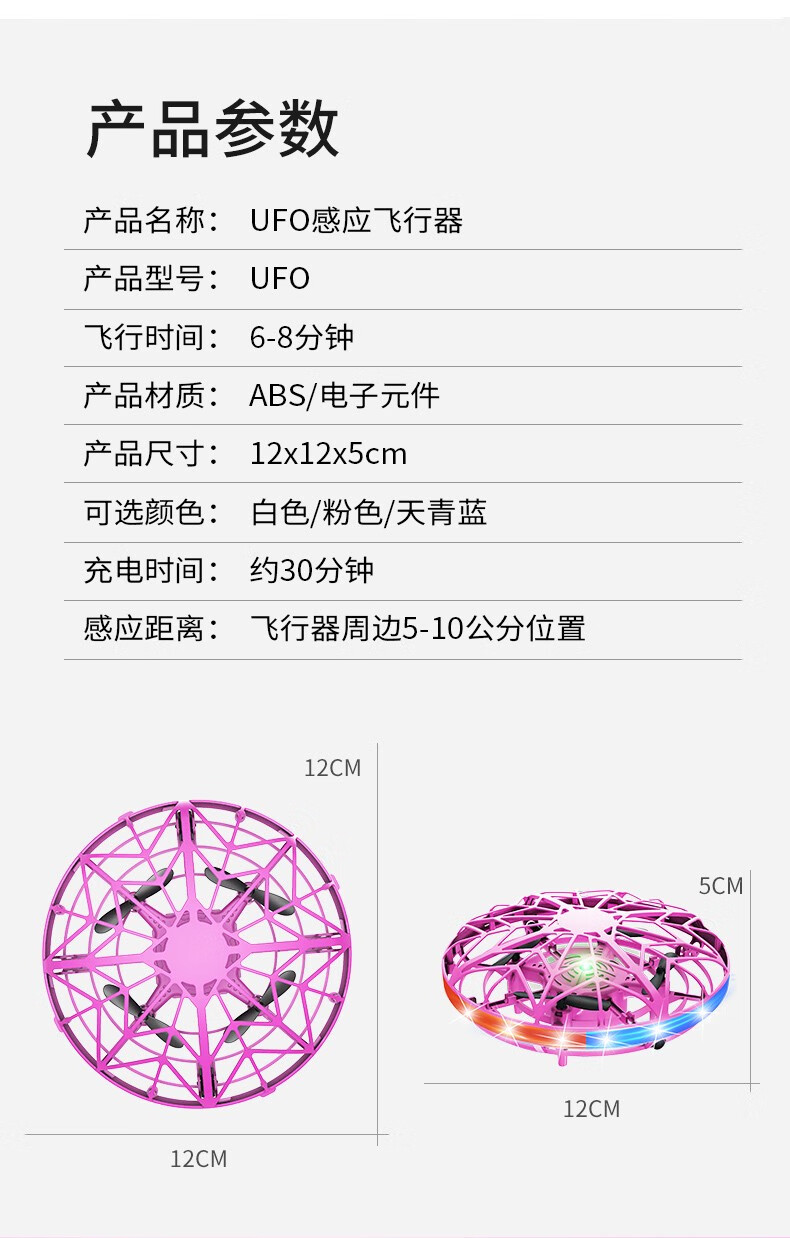 Pupan UFO induction aircraft flying ball remote control aircraft gesture four-axis drone intelligent suspended flying saucer children's toy glare powder intelligent five senses + stunt play + colorful standard configuration