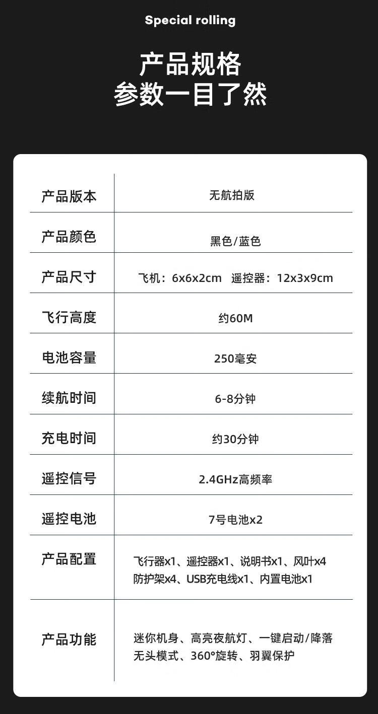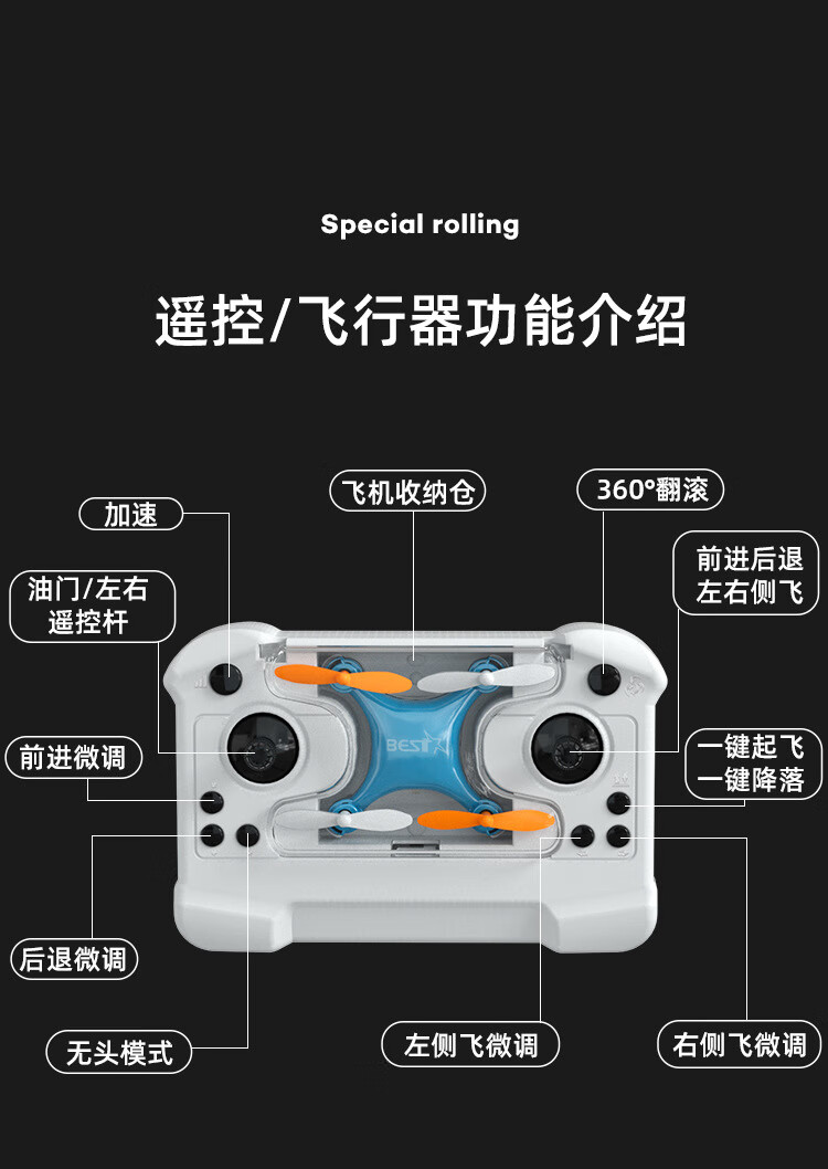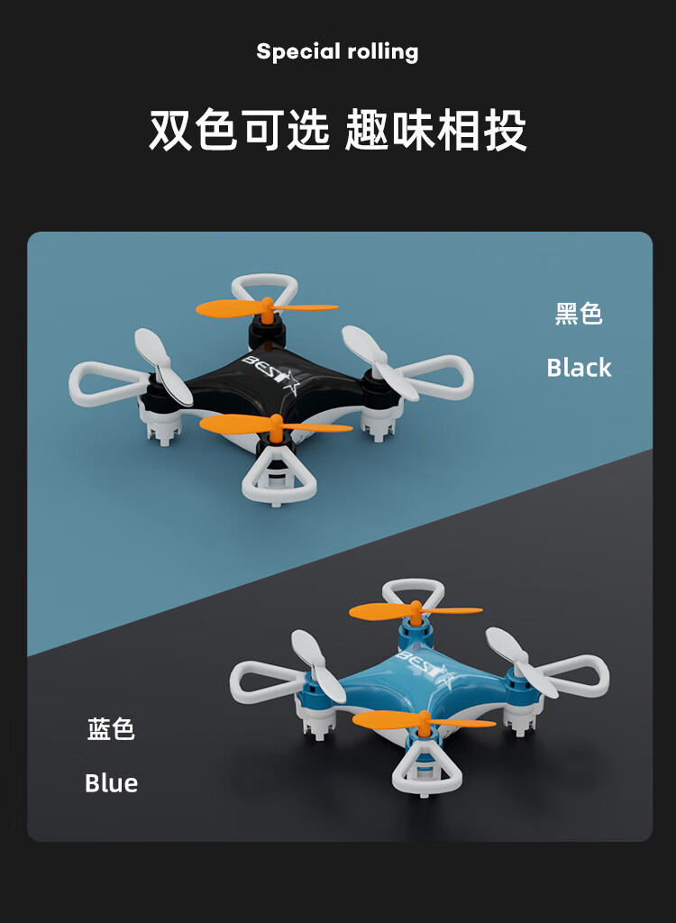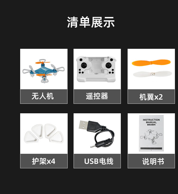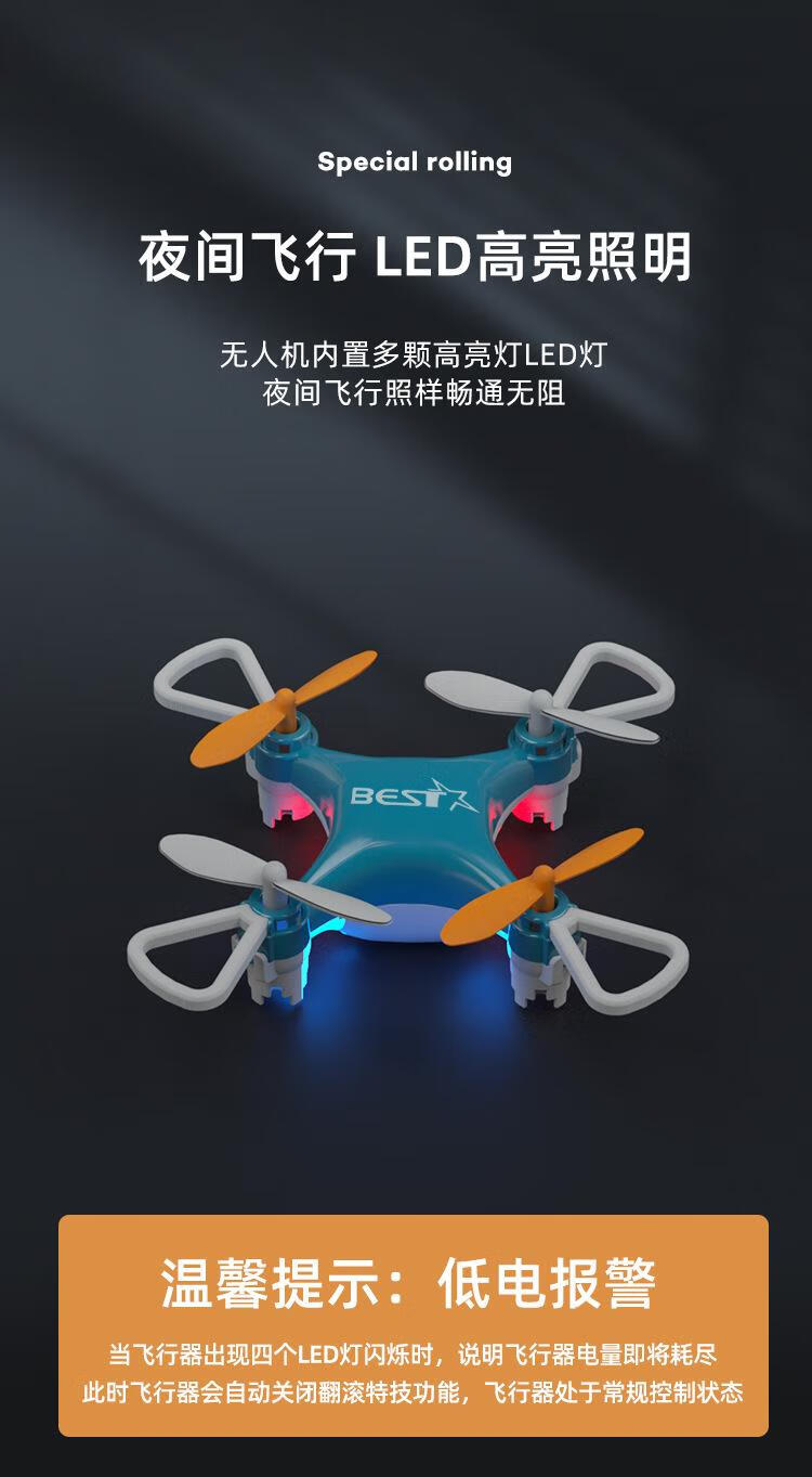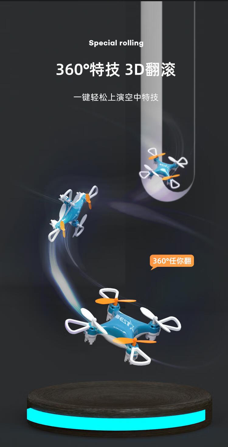 奇立彩迷你无人机小型掌上遥控飞机便携定高四轴飞行器儿童玩具学生礼物 天蓝色四轴无人机