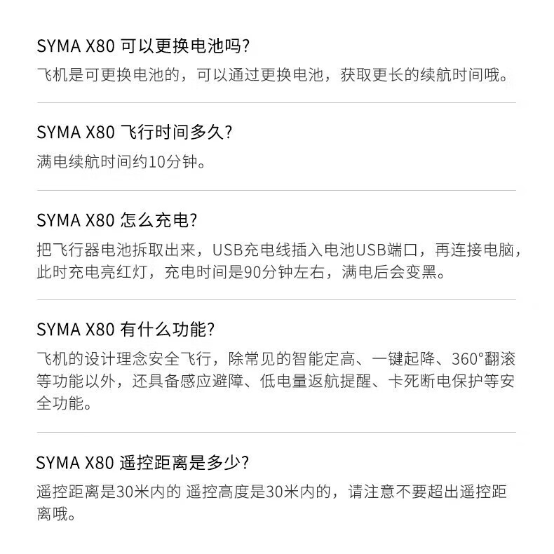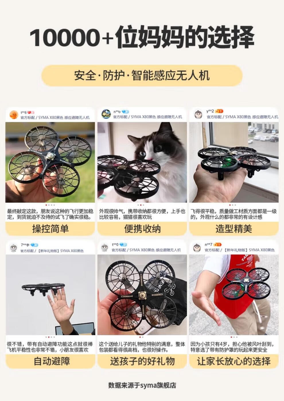 SYMA司马X80遥控飞机儿童感应避障四轴无人机玩具小学生礼物 官方标配 SYMAX80黑色感应避障无人机[店主