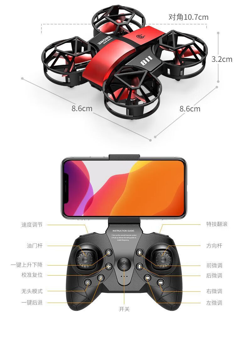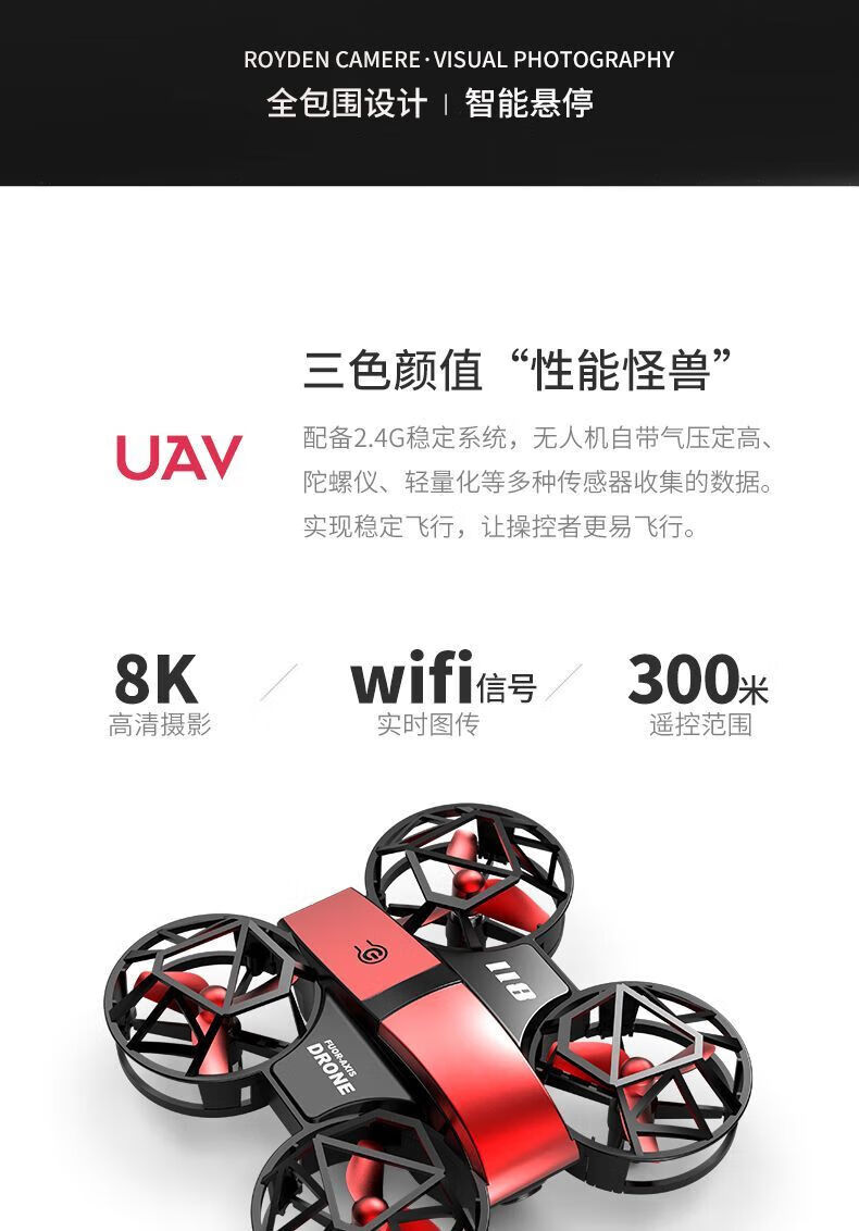 Complete set of Wenzhi flying machine, mini UAV flying machine for primary school students, aerial photography, small remote control aircraft, aerial photography, quadcopter flight, no aerial photography, basic flying, red, storage bag, 1 battery, free remote control battery + warranty + accessories +