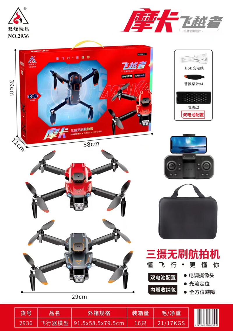 双烽车模无人机航拍高清四轴飞行器儿童遥控飞机航模直升机战机电动玩具 灰色2933遥控四轴飞行器(航拍版)