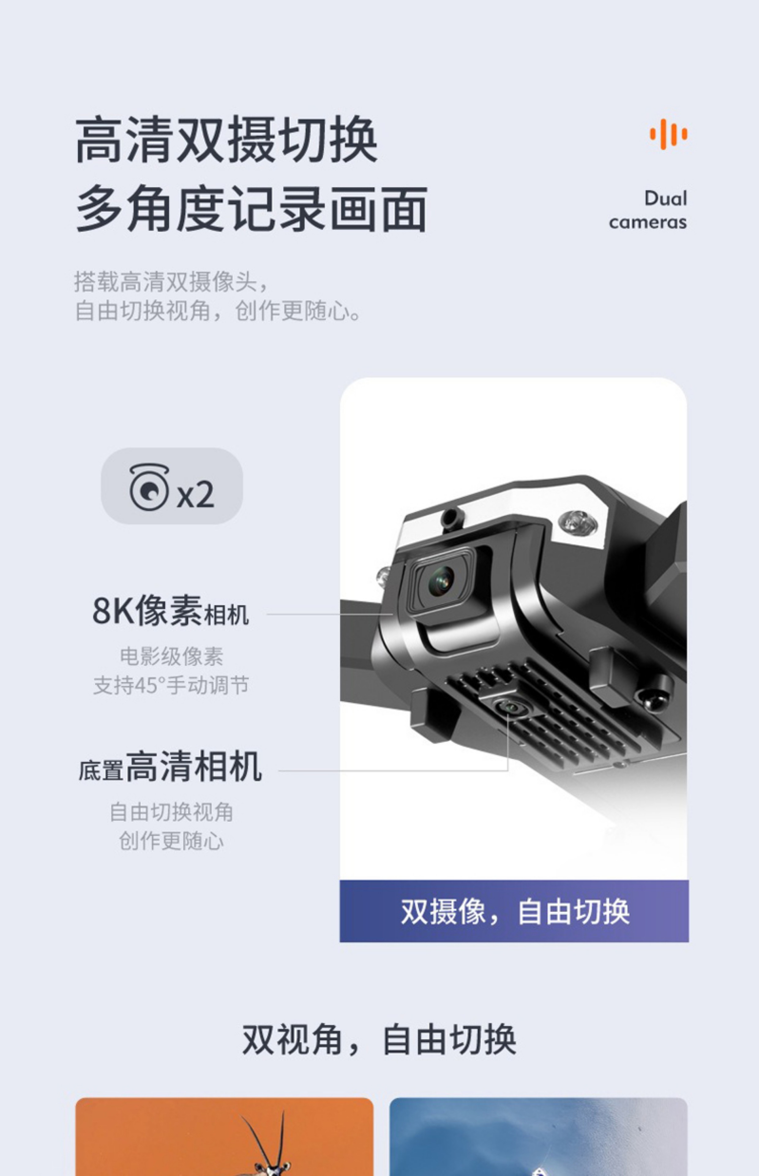Autres drones pliables pour élèves du primaire, quadricoptères, avions télécommandés, concours de photographie aérienne 8K résistant aux chutes pour enfants, S6 jaune, double caméra 6K - sac de rangement gratuit, 2 piles (environ 20 minutes de jeu)