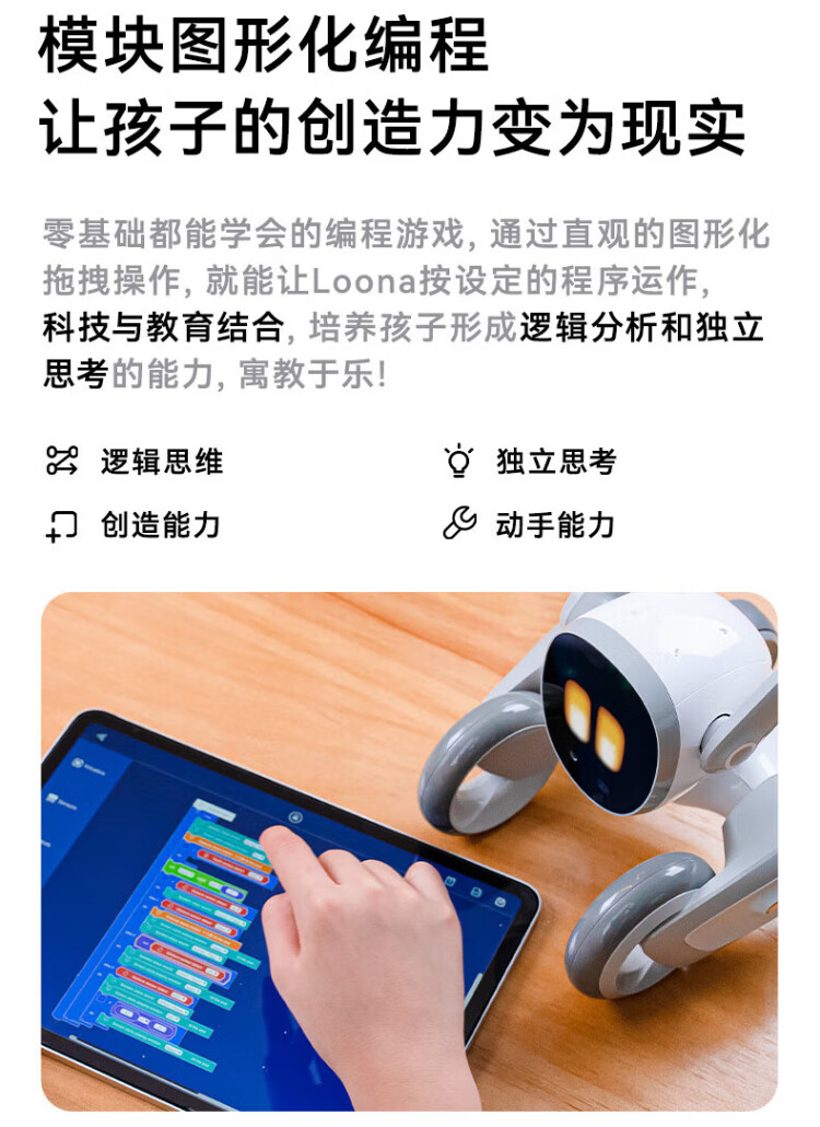 可立宝Loona机器狗 AI具身智能机器人儿童编程学习机器人CES创新奖语言切换互动早教玩具 童趣限定蓝套装
