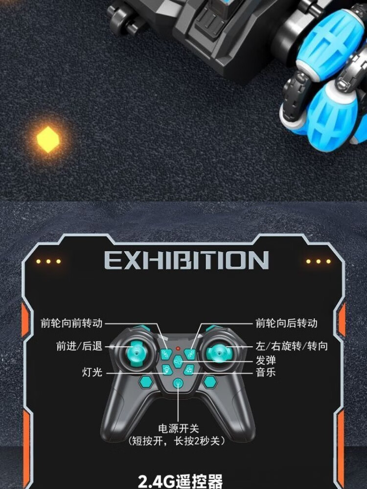 Le capteur de geste de voiture jouet de réservoir télécommandé pour enfants peut lancer des bombes à eau voiture blindée électrique à six roues cadeau garçon bleu grande bombe à eau poignée de voiture télécommande standard | 1000 bombes à eau