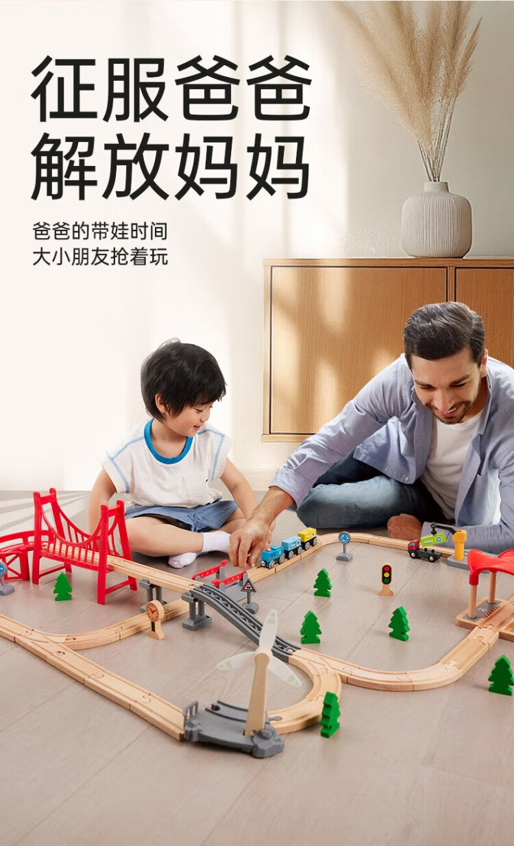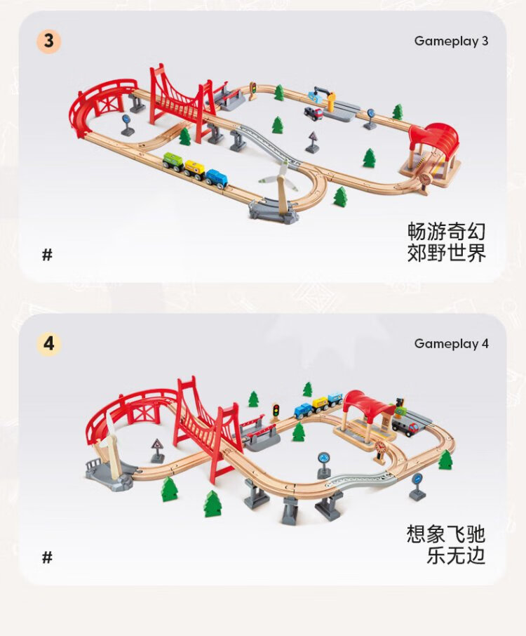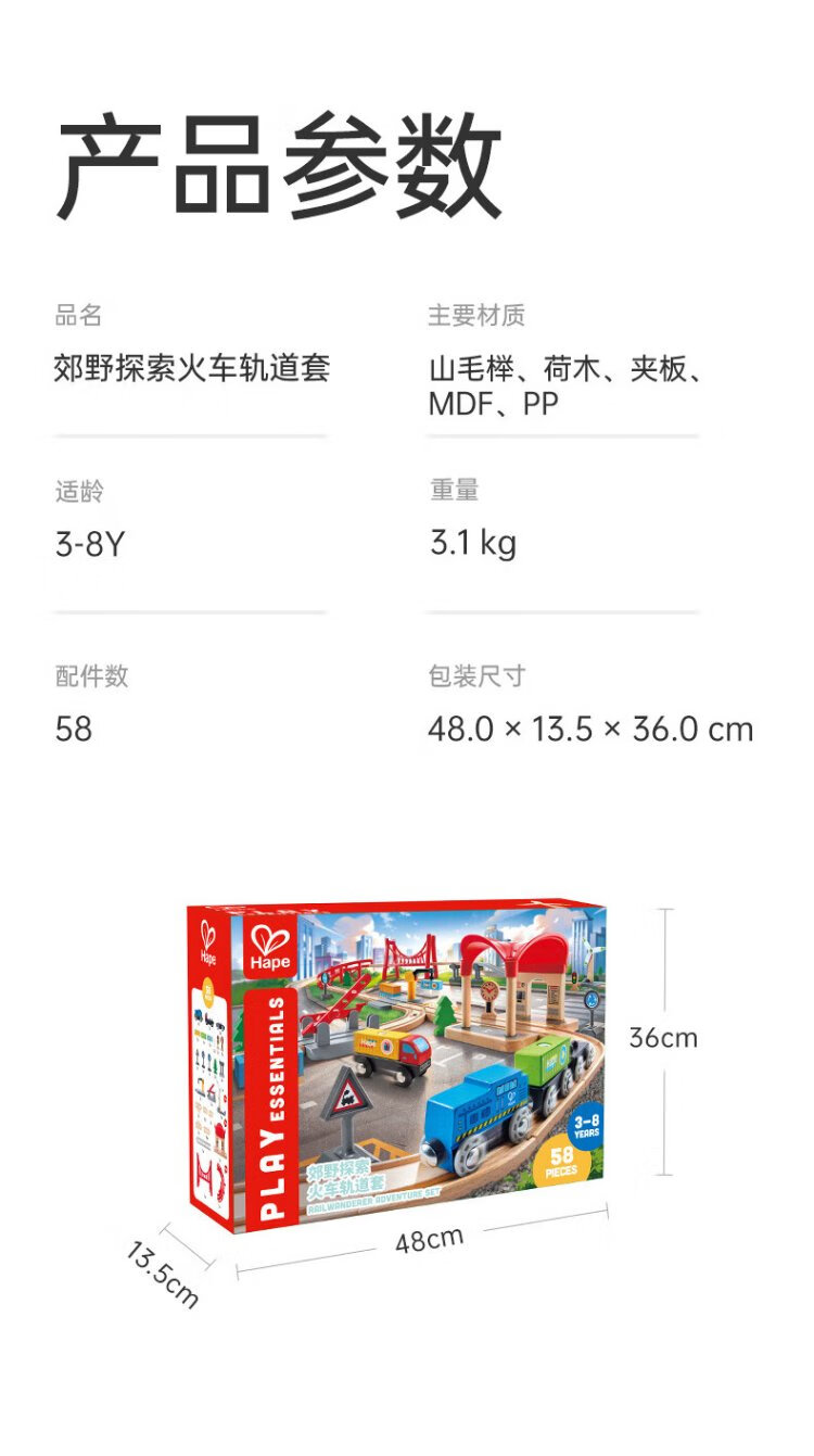 Hape儿童轨道玩具郊野探索火车轨道火车头套装男孩女孩生日礼物
