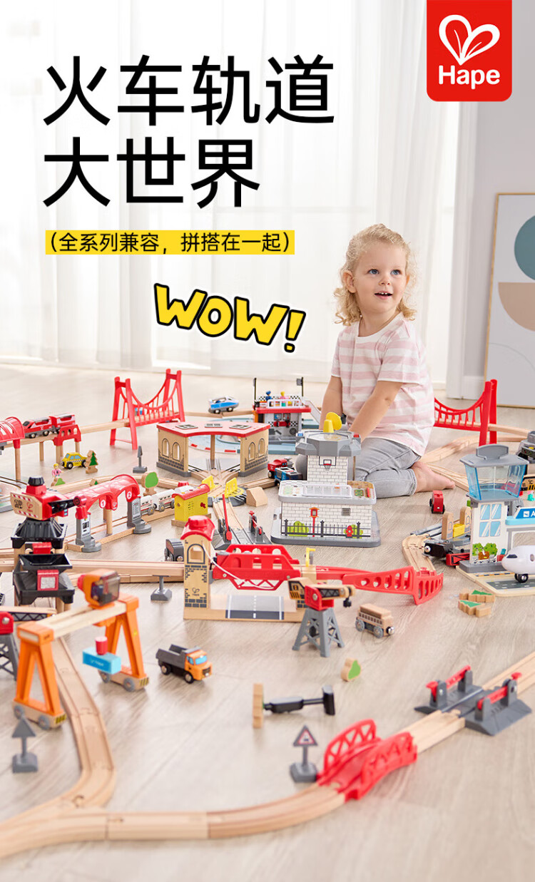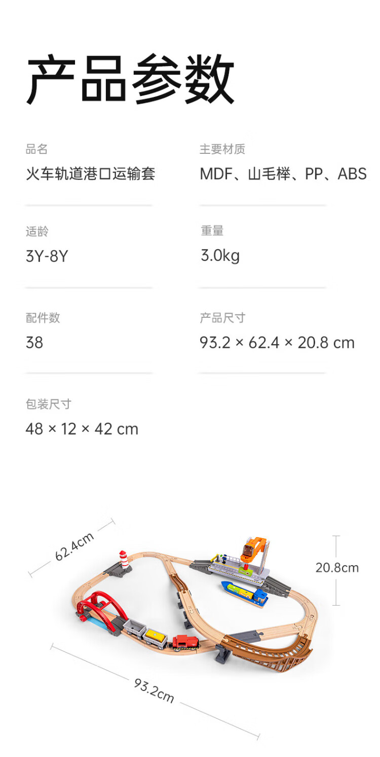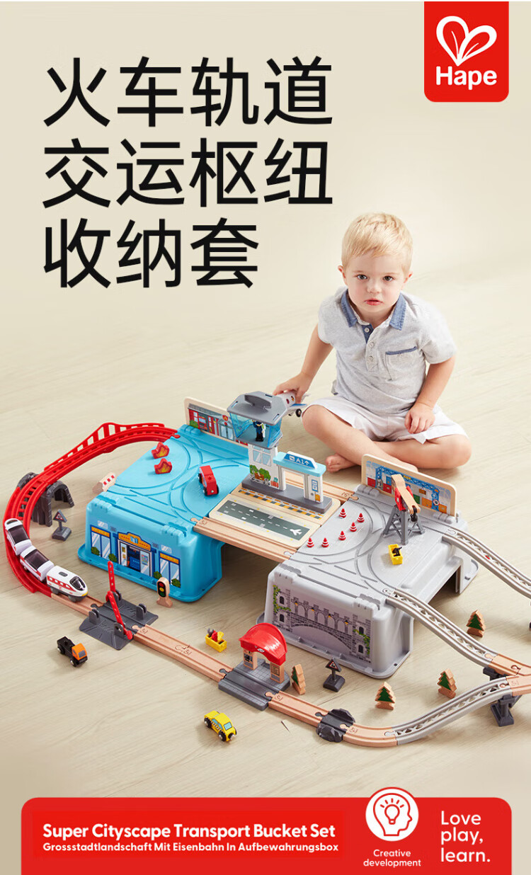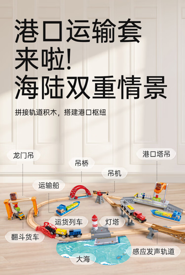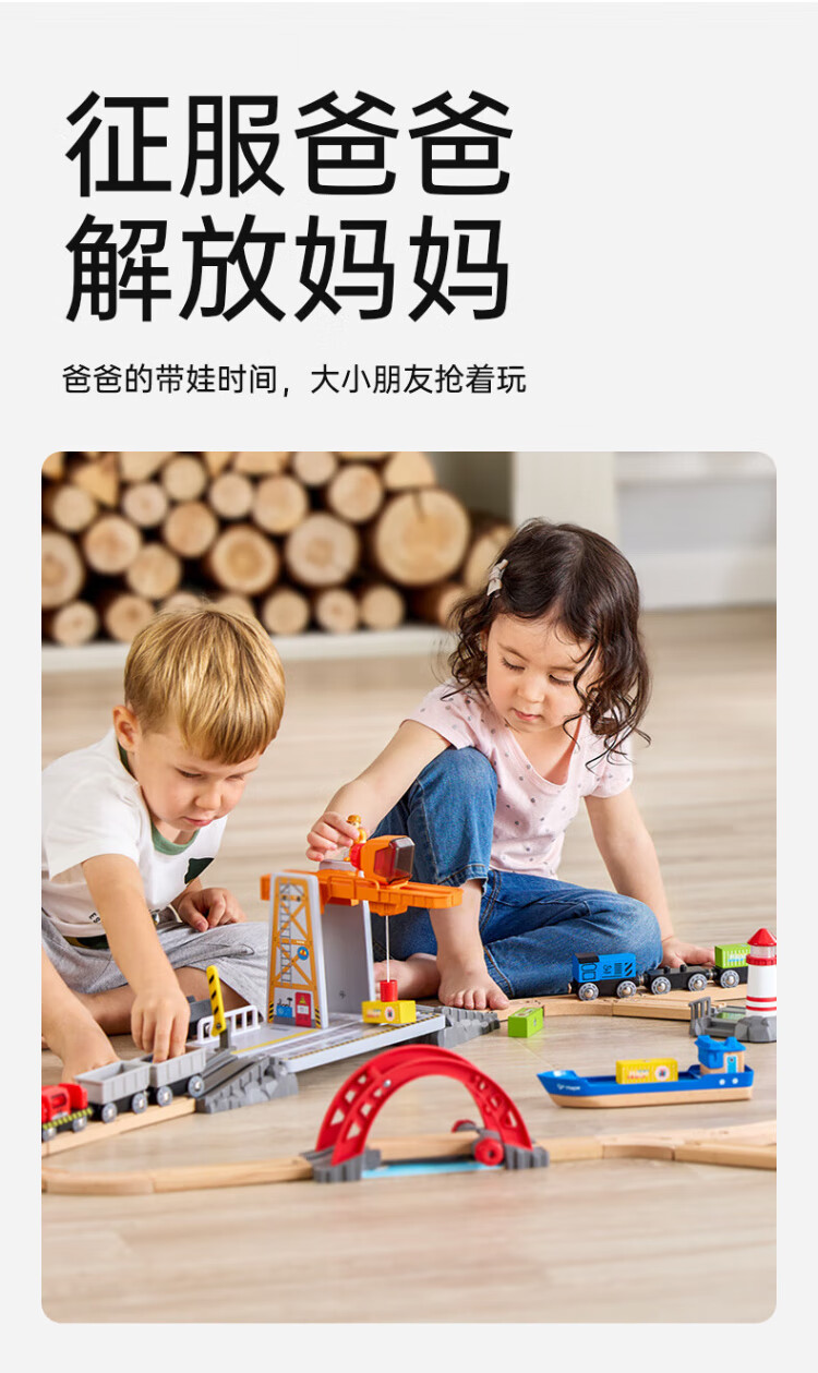 Hape木质火车轨道 火车拼装积木亲子互动DIY搭建 益智玩具儿童礼物 火车轨道港口运输套+赠电动火车头 3-8Y