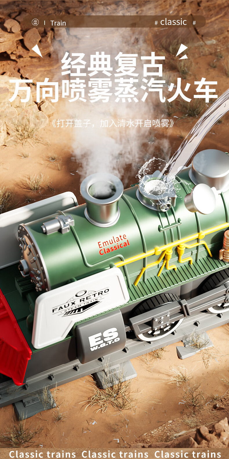 Bahngleis Spielzeugauto Modell Elektroauto Dampf Hochgeschwindigkeitszug Kinder pädagogische Simulation Spray Modell Dampfzug schwarz wiederaufladbare Version