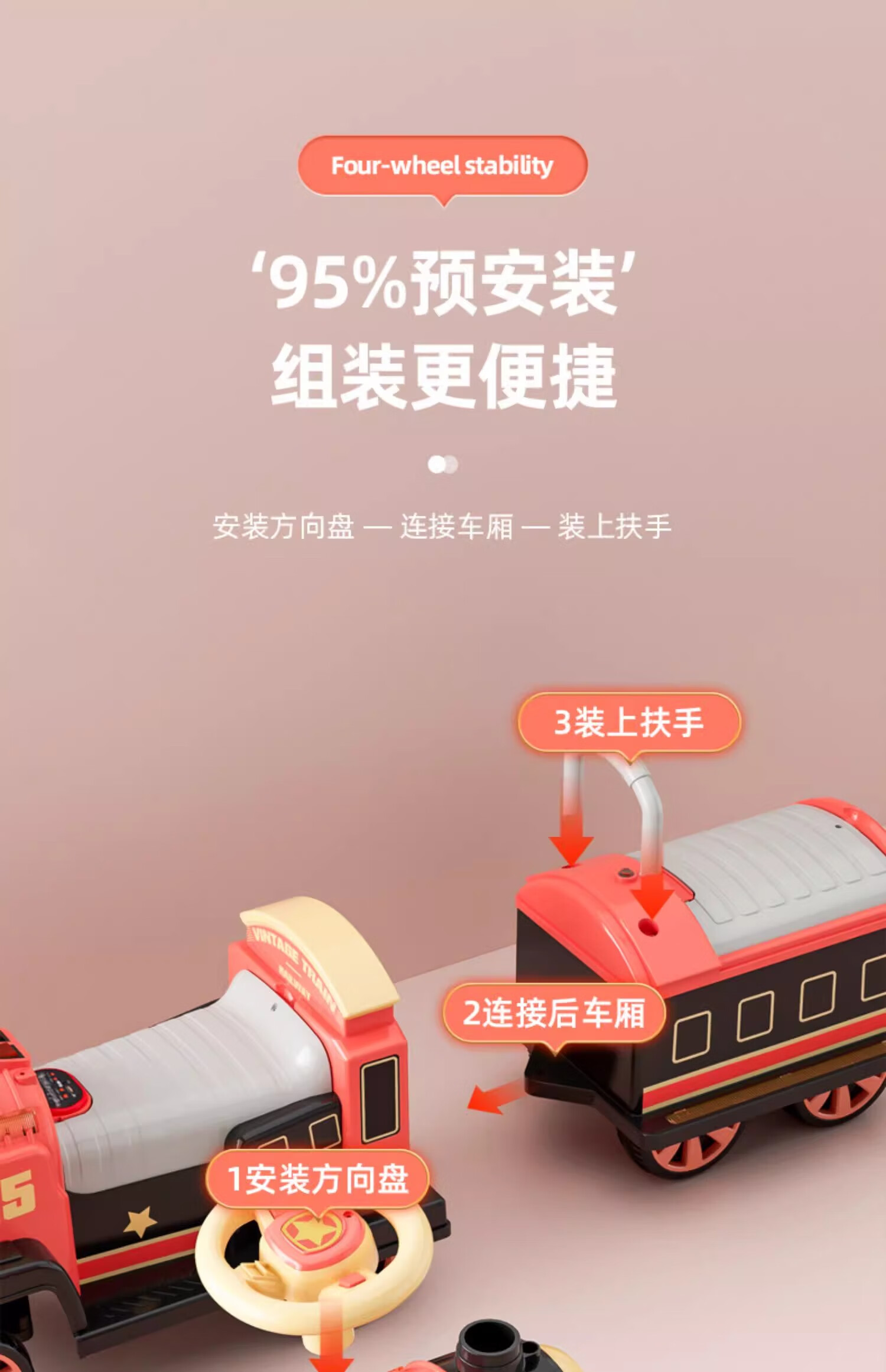 Kleiner Zug bietet Platz für Personen, ferngesteuertes Elektroauto für Kinder, Spielzeug für Männer und Frauen, Allradauto, zweisitziges Baby-Batterieauto, Retro-Grün, ferngesteuertes Spray, Dual-Elektrik, Kopf/Abteil mit Dual-Antrieb